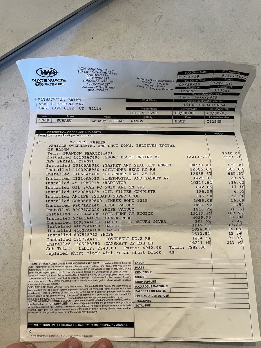 Very reliable, haven’t had any problems. Engine and a bunch more things replaced 49k miles ago by Nate wade subaru with a new remanufactured block (view invoice in pictures) over the past couple years I’ve replaced the stuff that has worn down such as the front cv axles, front and rear ball joints, front and rear breaks and rotors, front tie rod ends, front calipers, front steering knuckles, and the front control arms. spark plugs ngk iridium and coil packs Subaru oem with 10 year warranty were replaced by Clark’s auto.