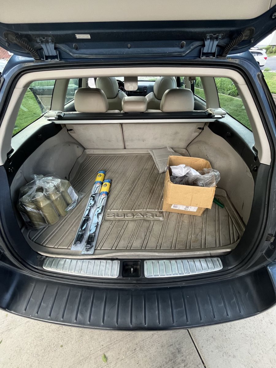 comes with extra parts such as extra tie rods and ends, extra ball joints, break hose sections, miscellaneous bushings, thermostat housing seal, 7 quarts of idemitsu transmission fluid, a wix transmission filter, and spare pins for castle nuts, it also has rubber floor mats from a 2018 Outback. It needs a new tire but other than that it’s in good condition,