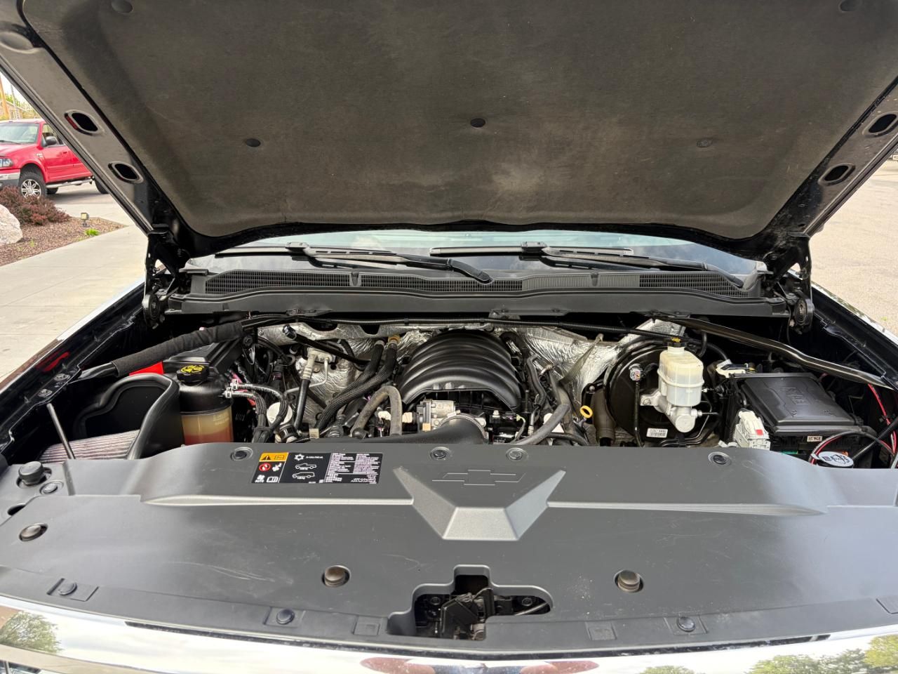 Trailering Package includes trailer hitch- 7-pin and 4-pin connectors,Engine- 5.3L FlexFuel EcoTec3 V8 with Active Fuel Management- Direct Injection and Variable Valve Timing includes aluminum block construction with Flex Fuel capability- capable of running on unleaded or up to 85% ethanol (355 hp [265 kW] @ 5600 rpm- 383 lb-ft of torque [518 Nm] @ 4100 rpm; more than 300 lb-ft of torque from 2000 to 5600 rpm),Rear axle- 3.08 ratio (Requires (L83) 5.3L EcoTec3 V8 engine. Not available with (RD2) chrome wheels or (RD4) 20"" polished-aluminum wheels.),GVWR- 7200 lbs. (3266 kg) (Requires 4WD models and (L83) 5.3L EcoTec3 V8 engine or (L86) 6.2L EcoTec3 V8 engine. Required with (NHT) Max Trailering Package on 2WD or 4WD models.),Transfer case- electronic Autotrac with rotary dial control (Included with 4WD models only.),Differential- heavy-duty locking rear,Four wheel drive,Cooling- external engine oil cooler,Cooling- auxiliary external transmission oil cooler,Battery- heavy-duty 720 cold-cranking amps/80 Amp-hr- maintenance-free with rundown protection and retained accessory power,Alternator- 150 amps,Frame- fully-boxed- hydroformed front section,Body- Pick Up Box,Steering- Electric Power Steering (EPS) assist- rack-and-pinion,Brakes- 4-wheel disc with DURALIFE rotors- 4-wheel antilock,Exhaust- aluminized stainless-steel muffler and tailpipe,StabiliTrak- stability control system with Proactive Roll Avoidance and traction control includes electronic trailer sway control and hill start assist,Tire carrier lock- keyed cylinder lock that utilizes same key as ignition and door,Bumper- front chrome,Bumper- rear chrome,Lamps- cargo area- cab mounted with switch on center switch bank,Tailgate and bed rail protection cap- top,Tailgate- locking utilizes same key as ignition and door,Tailgate- EZ-Lift and Lower,CornerStep- rear bumper,Moldings- bodyside- chrome,Wheelhouse liners- rear,Headlamps- halogen projector,Fog lamps- front- halogen,Glass- deep-tinted,Door handles- chrome,6-speaker audio system,Seat- rear 60/40 folding bench (folds up)- 3-passenger (includes child seat top tether anchor),Instrumentation- 6-gauge cluster featuring speedometer- fuel level- engine temperature- tachometer- voltage and oil pressure,Driver Information Center- 4.2-inch diagonal color display includes driver personalization- warning messages and vehicle information,Windows- power front and rear with driver express up and down and express down on all other windows,Remote vehicle starter system,Universal Home Remote,Theft-deterrent system- unauthorized entry,Air conditioning- dual-zone automatic climate control,Mirror- inside rearview auto-dimming,Visors- driver and front passenger illuminated vanity mirrors,Assist handle- front passenger on A-pillar,Power outlet- 110-volt AC,Daytime Running Lamps with automatic exterior lamp control,Airbags- Dual-stage frontal airbags for driver and front passenger- seat-mounted side-impact airbags for driver and front outboard passenger- and head-curtain side-impact airbags for front and rear outboard seating positions; includes Passenger Sensing System (Always use safety belts and child restraints. Children are safer when properly secured in a rear seat in the appropriate child restraint. See the Owner's Manual for more information.),Rear Vision Camera with dynamic guide lines,Tire Pressure Monitoring System (does not apply to spare tire)