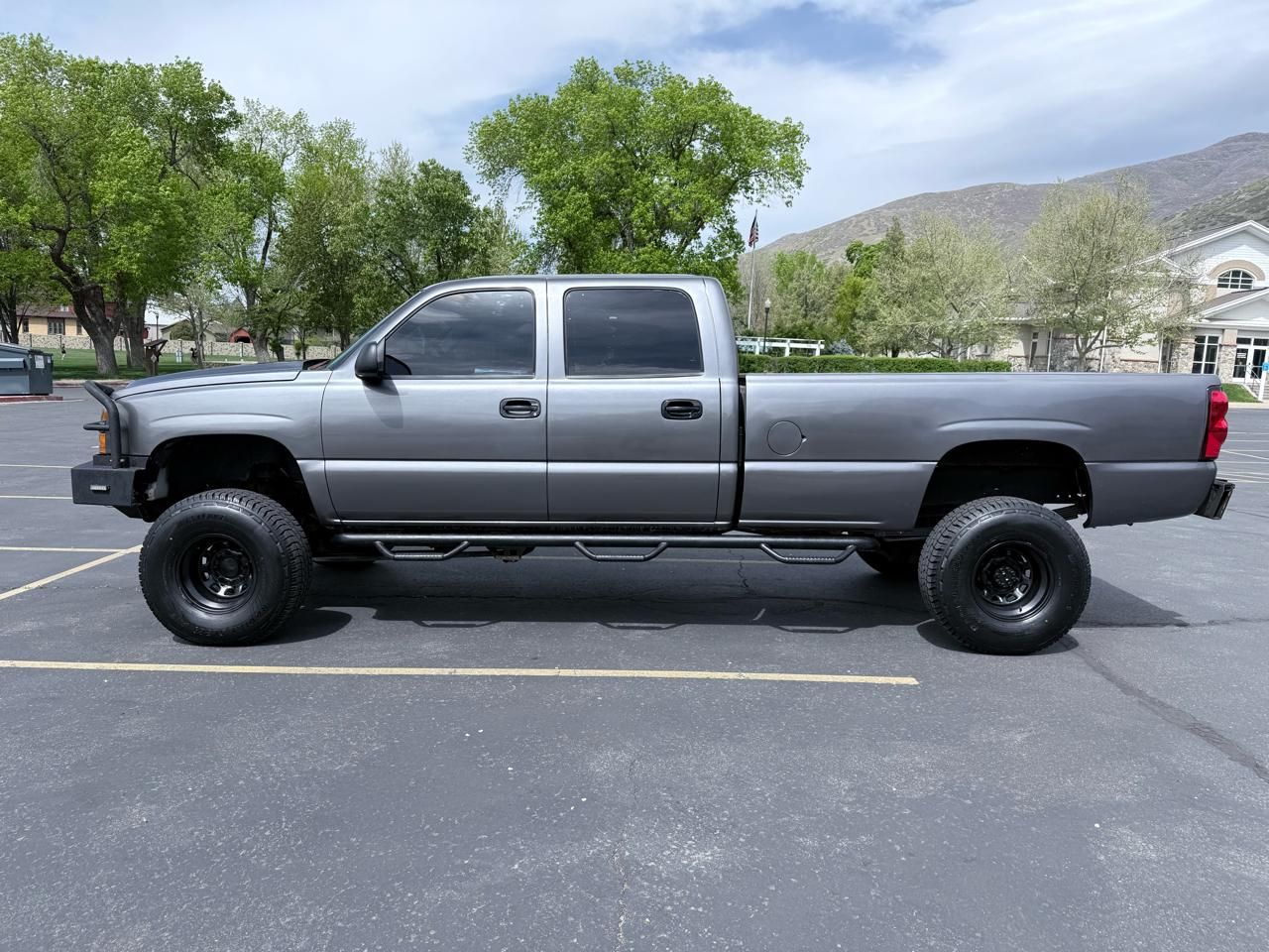 Cooling- external engine oil cooler- heavy-duty air-to-oil- integral to driver side of radiator tank,Transfer case- floor-mounted shifter (Requires 4WD Models and (AE7) Seats- front 40/20/40 split-bench.),Four wheel drive,Rear axle- 4.10 ratio (Refer to Engine/Axle Chart for availability.),Battery- heavy-duty- 600 cold-cranking amps- includes rundown protection and retained accessory power (Not standard with (LLY) Engine- Duramax 6600 Turbo Diesel V8.),Alternator- 105 amps (Not available with (VYU) Snow Plow Prep Package),Pickup bed- Fleetside box,Frame- ladder-type- hydroformed,Recovery hooks- front- frame-mounted (Standard on 4WD Models),GVWR- 9200 lbs. (4173 kg) (Must specify on CC25903- CK25753- and C*25743 Models.),Suspension Package- Handling/Trailering- heavy-duty- includes 36mm piston monotube shocks,Suspension- front- independent torsion bar- and stabilizer bar,Suspension- rear- semi-elliptic 2-stage multi-leaf springs,Wheels- 4 - 16"" x 6.5"" (40.6 cm x 16.5 cm) 8-lug steel- painted,Tire carrier- outside spare- winch-type mounted under frame at rear,Steering- power,Exhaust- aluminized stainless-steel muffler and tailpipe,Tools- mechanical jack and wheel wrench- spare tire assist hook- floor-mounted in back of cab,Paint- solid,Bumper- front- chrome- with Gray lower,Bumper- rear- painted step- includes pad (Not available with (ZW9) Pickup bed- delete),Air dam- Gray,Wheel flares (Refer to Color and Trim chart for compatibility. Front only when (ZW9) Pickup bed delete is ordered),Grille- color-keyed surround- with chrome accent bar,Lamps- dual cargo area lamps,Mirrors- outside rearview- foldaway- manual- Black- adjustable,Glass- Solar-Ray light tinted- all windows,Wipers- intermittent- front- wet-arm with pulse washers,Seats- rear bench- folding- 3-passenger (includes child seat top tether anchor) (Not available with Regular Cab Models.),Floor covering- rubberized vinyl- Black,Steering column- Tilt-Wheel- adjustable- includes brake/transmission shift interlock,Steering wheel- includes theft-deterrent locking feature,Theft-deterrent system- PASSlock II,Instrumentation- analog- includes speedometer- odometer with trip odometer- fuel level- voltmeter- engine temperature- oil pressure and tachometer,Driver Information Center- monitors numerous systems depending on vehicle equipment,Warning tones- headlamp on- key-in-ignition- driver and passenger buckle-up reminder- turn signal on,Air conditioning- dual-zone- manual- individual climate settings for driver and right front passenger,Sound system feature- 4 speakers,Cupholders- front (Also includes rear cupholders on Extended and Crew Cab Models.),Cigarette lighter- on instrument panel,Power outlets- auxiliary- covered- 2 dash-mounted- 12-volt,Mirror- inside rearview- manual day/night,Visors- padded- Shale-colored- driver and passenger side with cloth trim- extenders- pocket on driver side and vanity mirror on passenger side,Assist handle- front passenger (Also includes rear outboard passenger assist on Extended and Crew Cab Models.),Coat hook- driver side (Also includes passenger side coat hook on Extended and Crew Cab Models.),Air bags- frontal- driver and right front passenger (Regular and Extended Cab Models includes passenger side deactivation switch. - Always use safety belts and proper child restraints- even with air bags. Children are safer when properly secured in a rear seat. See the Owner's Manual for more safety information)