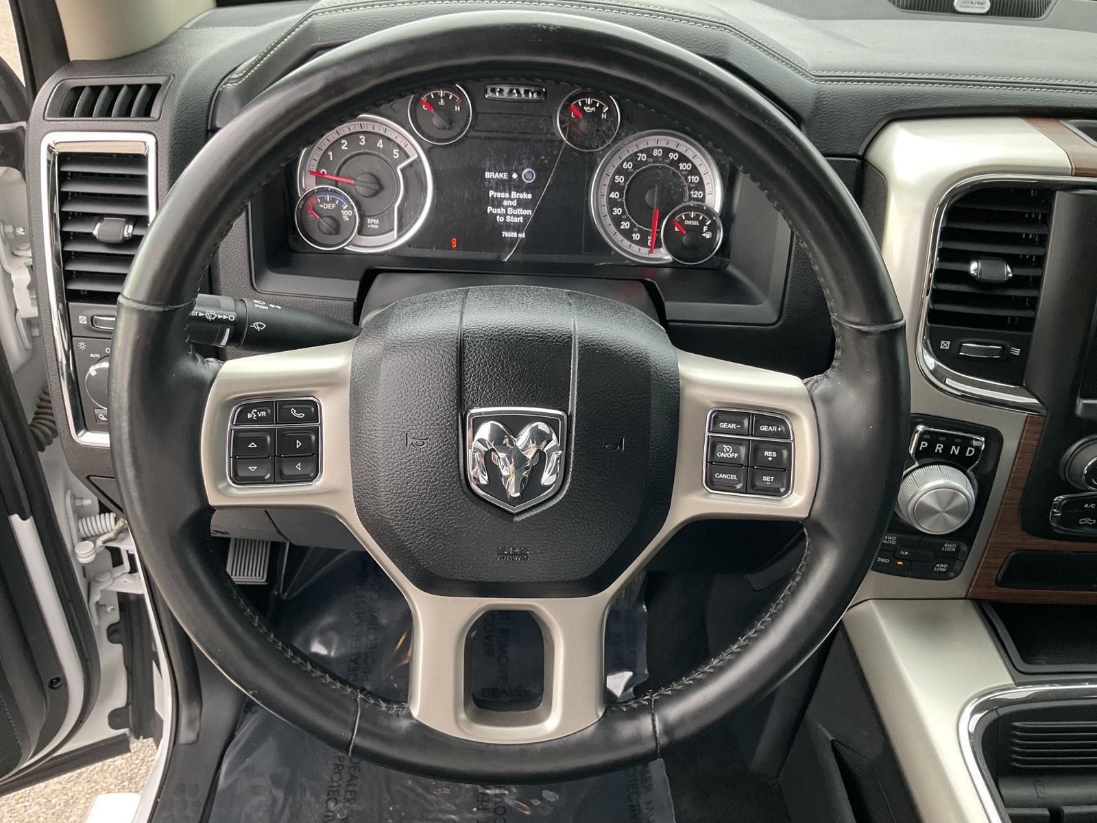 ENGINE: 3.0L V6 TURBO DIESEL, TRANSMISSION: 8-SPEED AUTO (8HP70), QUICK ORDER PACKAGE 28H LARAMIE, 3.92 REAR AXLE RATIO, WHEELS: 20" X 9" CHROME CLAD ALUMINUM, TIRES: P275/60R20 BSW AS, MONOTONE PAINT, BLACK, LEATHER TRIMMED BUCKET SEATS, GVWR: 6,950 LBS, CONVENIENCE GROUP, ANTI-SPIN DIFFERENTIAL REAR AXLE, REMOTE START SYSTEM, POWER SUNROOF, RADIO: UCONNECT 3C NAV W/8.4" DISPLAY, FRONT & REAR RUBBER FLOOR MATS, PARKSENSE FRONT/REAR PARK ASSIST SYSTEM