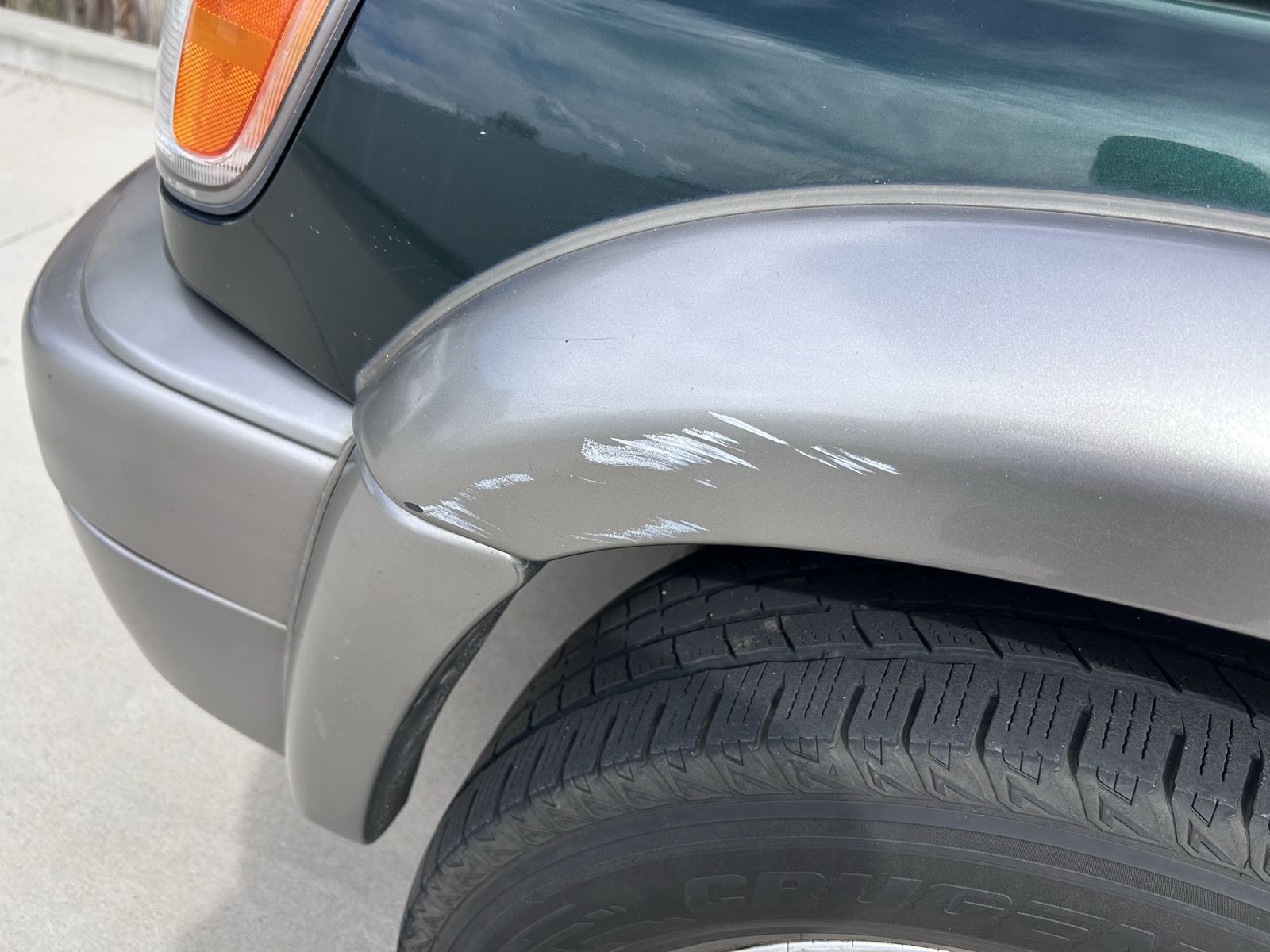 Rear hatch has a small ding, and there is typical wear for a 25-year-old vehicle.