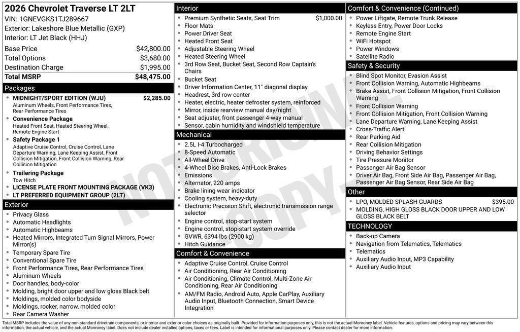 Experience the new Chevrolet Traverse, available now at Sky Chevrolet of Provo! With bold design, advanced technology, and dependable performance, Chevrolet makes every mile more exciting. From Utah Valley’s city streets to mountain canyon drives, the Traverse is built to handle it all with confidence. Call 801-356-4300 today to schedule your test drive and see what makes it stand out! Lakeshore Blue Metallic 2026 Chevrolet Traverse LT 2LT AWD 8-Speed Automatic 2.5L DOHC AWD.