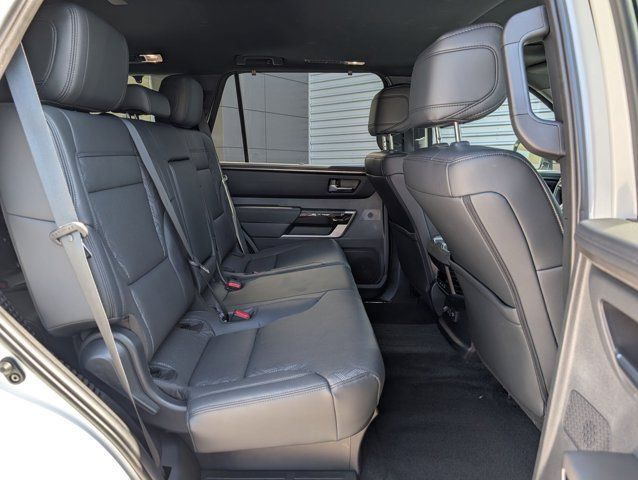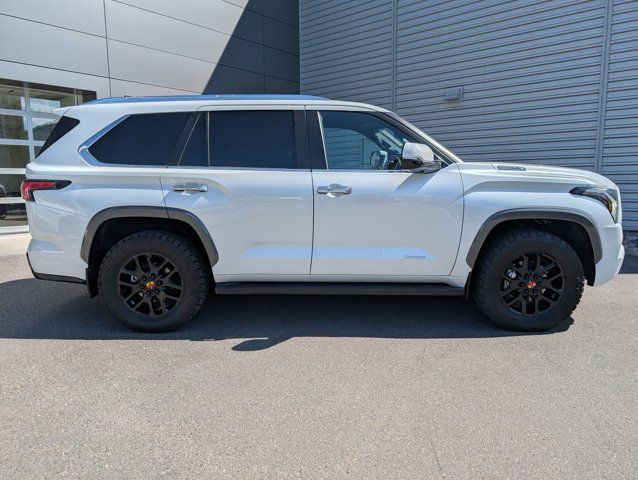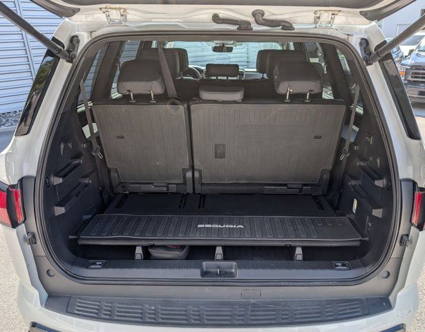 This 2025 Toyota Sequoia Limited Hybrid 4WD is the perfect blend of power, efficiency, and modern capability. Finished in Wind Chill Pearl with a Black interior, this full-size SUV is powered by Toyotas i-FORCE MAX twin-turbo V6 hybrid, delivering an impressive 437 horsepower and 583 lb-ft of torque, paired with a 10-speed automatic transmission and part-time 4WD system giving you confidence in any condition.Inside, the Sequoia is designed for comfort and versatility with heated and ventilated front seats, a heated steering wheel, and SofTex-trimmed power seating. The 14-inch Toyota Multimedia system with wireless Apple CarPlay and Android Auto, paired with the JBL 14-speaker premium audio system, creates an exceptional in-cabin experience. A 12.3-inch digital gauge cluster, 3-zone climate control, and power-folding third row ensure both driver and passengers are well taken care of.This example is a CARFAX 1-owner, personal lease vehicle with just 7,854 miles, locally owned in Utah and showing no accidents or damage reported. It has been well maintained, with regular oil changes, recently serviced, and even received four new tires making it truly turn-key for its next owner.Additional highlights include premium auto-leveling LED headlights, a panoramic moonroof, 20-inch alloy wheels, all-weather floor liners, and a power liftgate with flip-up glass, giving you both practicality and premium touches throughout.With its combination of hybrid efficiency, full-size capability, and Toyota reliability, this Sequoia Limited is a standout option for anyone needing space, performance, and everyday usability.
