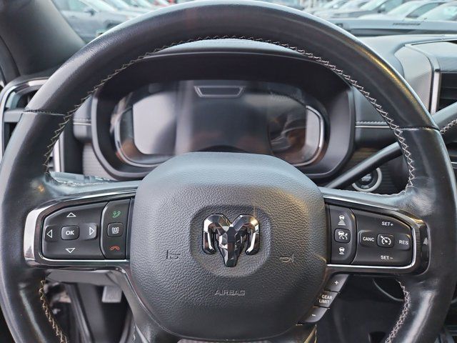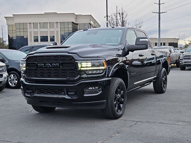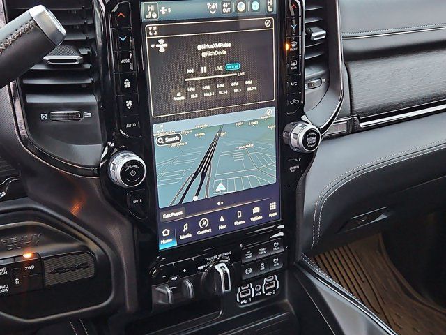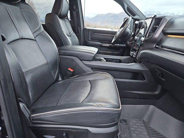 LIMITED LEVEL 1 EQUIPMENT GROUP -inc: CTR Stop Lamp w/Cargo View Camera Surround View Camera System LED Bed Lighting Power Deployable Running Boards 12 Touchscreen Display RamBox Cargo Management System Adaptive Steering System Trailer Reverse Guidance Selectable Tire Fill Alert Ramcharger Wireless Charging Pad Radio: Uconnect 5 Nav w/12.0 Display 4 Adjustable Cargo Tie-Down Hooks Full Speed Forward Collision Warning Plus MOPAR Spray In Bedliner 17 Speaker harman kardon Premium Sound Truck Bed Cargo Divider Adaptive Cruise Control w/Stop Digital Rearview Mirror Lane Keep Assist,BLACK LIMITED LEATHER BUCKET SEATS,DIAMOND BLACK CRYSTAL PEARLCOAT,NIGHT EDITION -inc: Black Exterior Truck Badging Black Ram Head Tailgate Badge Body Color Grille Surround Black Headlamp Bezels Sport Performance Hood Black Grille Limited Wheels: 20 x 8.0 Cast Aluminum Black Black Wheel Center Hub Black Tail Lamp Bezels,ADAPTIVE STEERING SYSTEM,POWER SUNROOF,TOW TECHNOLOGY PLUS GROUP -inc: Trailer Reverse Steering Control Digital 3.0 Rear View Auto Dim Mirror,AUTO LEVEL REAR AIR SUSPENSION,3.73 AXLE RATIO (STD),INSTRUMENT CLUSTER THEME 8,WHEELS: 20 X 8.0 CAST ALUMINUM BLACK,RAMBOX DELETE,TRAILER TIRE PRESSURE MONITORING SYSTEM,QUICK ORDER PACKAGE 21M LIMITED -inc: Engine: 6.7L I6 Cummins HO Turbo Diesel Transmission: 6-Speed Automatic Aisin AS69RC HD,RADIO: UCONNECT 5 NAV W/12.0 DISPLAY,AUXILIARY SWITCHES PREP,MOPAR FRONT & REAR RUBBER FLOOR MATS,5TH WHEEL/GOOSENECK TOWING PREP GROUP,220 AMP ALTERNATOR,CTR STOP LAMP W/CARGO VIEW CAMERA,GVWR: 11 800 LBS (STD),ENGINE: 6.7L I6 CUMMINS HO TURBO DIESEL -inc: Selective Catalytic Reduction (Urea) Dual 730 Amp Maintenance Free Batteries Cummins Turbo Diesel Badge Heavy Duty Engine Cooling Supplemental Heater 220 Amp Alternator Current Generation Engine Controller Diesel Exhaust Brake Capless Fuel Fill w/o Discriminator,LUXURY DOOR TRIM PANEL (CTH),FRONT LICENSE PLATE BRACKET,TRANSMISSION: 6-SPEED AUTOMATIC AISIN AS69RC HD -inc: 12.0 Single Rear Wheel Axle Transmission Oil Cooler Leather Wrapped Shift Control,MOPAR DEPLOYABLE BED STEP,Turbocharged,Four Wheel Drive,Tow Hitch,Power Steering,ABS,4-Wheel Disc Brakes,Brake Assist,Locking/Limited Slip Differential,Tires - Front All-Terrain,Tires - Rear All-Terrain,Aluminum Wheels,Conventional Spare Tire,Heated Mirrors,Power Mirror(s),Integrated Turn Signal Mirrors,Power Folding Mirrors,Rear Defrost,Privacy Glass,Intermittent Wipers,Variable Speed Intermittent Wipers,Rain Sensing Wipers,Power Door Locks,Daytime Running Lights,Automatic Headlights,LED Headlights,Fog Lamps,Automatic Highbeams,AM/FM Stereo,Navigation System,Satellite Radio,Bluetooth Connection,HD Radio,Requires Subscription,Premium Sound System,MP3 Capability,Steering Wheel Audio Controls,Auxiliary Audio Input,Premium Sound System,Satellite Radio,HD Radio,Requires Subscription,Satellite Radio,HD Radio,Requires Subscription,Power Driver Seat,Power Passenger Seat,Mirror Memory,Driver Adjustable Lumbar,Seat Memory,Heated Front Seat(s),Cooled Front Seat(s),Power Driver Seat,Driver Adjustable Lumbar,Power Passenger Seat,Passenger Adjustable Lumbar,Pass-Through Rear Seat,Heated Rear Seat(s),Rear Bench Seat,Adjustable Steering Wheel,Trip Computer,Power Windows,Leather Steering Wheel,Heated Steering Wheel,Keyless Entry,Power Door Locks,Keyless Entry,Power Door Locks,Keyless Start,Universal Garage Door Opener,Cruise Control,Climate Control,Multi-Zone A/C,A/C,Woodgrain Interior Trim,Leather Seats,Bucket Seats,Auto-Dimming Rearview Mirror,Driver Vanity Mirror,Passenger Vanity Mirror,Driver Illuminated Vanity Mirror,Passenger Illuminated Visor Mirror,Floor Mats,Remote Engine Start,Smart Device Integration,Requires Subscription,Navigation System,Mirror Memory,Seat Memory,Remote Engine Start,Keyless Start,Smart Device Integration,WiFi Hotspot,Smart Device Integration,Bluetooth Connection,Power Door Locks,Power Windows,Adjustable Pedals,Trip Computer,Immobilizer,Security System,Traction Control,Stability Control,Traction Control,Front Side Air Bag,Rear Parking Aid,Blind Spot Monitor,Cross-Traffic Alert,Tire Pressure Monitor,Driver Air Bag,Passenger Air Bag,Passenger Air Bag Sensor,Front Head Air Bag,Rear Head Air Bag,Child Safety Locks,Back-Up Camera