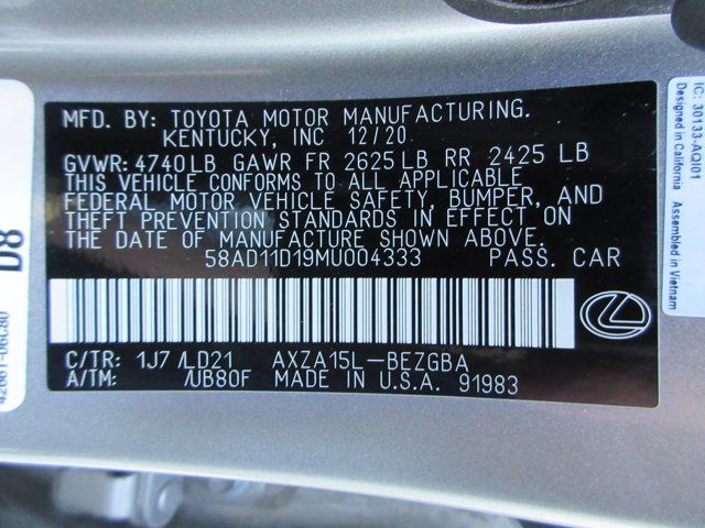 Recent Arrival!Atomic Silver 2021 Lexus ES 250 AWD 8-Speed Automatic I4 Black w/Linear Espresso Wood Trim w/Genuine Leather Seat Trim, 10 Speakers, 10-Way Power Adjustable Front Seats, 4-Wheel Disc Brakes, ABS brakes, Accessory Package (PPO), All-Weather Floor Liners (PPO), Alloy Wheel Locks, AM/FM radio: SiriusXM, Auto Braking Protection, Auto-dimming door mirrors, Automatic temperature control, Blind Spot Monitor w/Park Assist, Cargo Net (PPO), Carpet Trunk Mat (PPO), CD player, Electronic Stability Control, Exterior Parking Camera Rear, Front dual zone A/C, Fully automatic headlights, Garage door transmitter: HomeLink, Heated & Ventilated Seats, Heated Leather & Wood Steering Wheel, Illuminated entry, Intelligent Clearance Sonar, Key Gloves (PPO), Lane Change Assist & Rear Cross-Traffic Alert, Leather Shift Knob, Leather steering wheel, Outside temperature display, Perforated NuLuxe Seat Trim (LD), Power moonroof, Power passenger seat, Power Tilt/Telescoping Steering Wheel w/Memory, Premium Package, Radio: Multimedia System w/8 Color Display, Rain Sensing Wipers, Rear Pedestrian Detection, Rear Spoiler, Remote keyless entry, Security system, Steering wheel mounted audio controls, Traction control, Turn signal indicator mirrors, Wheels: 18 x 8J Split 10-Spoke High Gloss, Windshield De-Icer, Wireless Charger, Wood Trim (XG).25/34 City/Highway MPG
