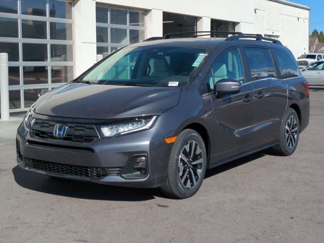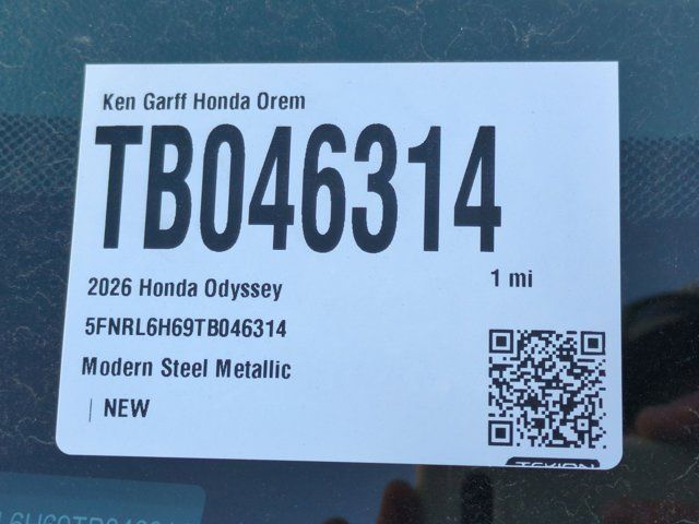 Ken Garff Honda is very proud to offer this great 2026 Honda Odyssey EX-L in Modern Steel Metallic. FWD EX-L 10-Speed Automatic18 Machine-Finished Alloy Wheels, 3rd row seats: split-bench, 4-Wheel Disc Brakes, 7 Speakers, ABS brakes, Adaptive Cruise Control: Adaptive Cruise Control (ACC) with Low-Speed Follow, Air Conditioning, Alloy wheels, AM/FM radio: SiriusXM, Anti-whiplash front head restraints, Apple CarPlay/Android Auto, Auto High-beam Headlights, Auto-dimming Rear-View mirror, Automatic temperature control, Blind Spot Information (BSI) System warning, Brake assist, Bumpers: body-color, Delay-off headlights, Driver door bin, Driver vanity mirror, Driver's Seat Mounted Armrest, Dual front impact airbags, Dual front side impact airbags, Electronic Stability Control, Exterior Parking Camera Rear, Four wheel independent suspension, Front anti-roll bar, Front Bucket Seats, Front dual zone A/C, Front fog lights, Front reading lights, Fully automatic headlights, Garage door transmitter: HomeLink, Heated door mirrors, Heated Front Bucket Seats, Heated front seats, Illuminated entry, Knee airbag, Lane departure: Lane Keeping Assist System (LKAS) active, Leather steering wheel, Leather-Trimmed Seats, Low tire pressure warning, Memory seat, Occupant sensing airbag, Outside temperature display, Overhead airbag, Overhead console, Panic alarm, Passenger door bin, Passenger seat mounted armrest, Passenger vanity mirror, Power door mirrors, Power driver seat, Power Liftgate, Power moonroof, Power passenger seat, Power steering, Power windows, Radio data system, Radio: 160-Watt AM/FM/HD/SiriusXM Audio System, Rear air conditioning, Rear anti-roll bar, Rear reading lights, Rear seat center armrest, Rear window defroster, Rear window wiper, Reclining 3rd row seat, Remote keyless entry, Security system, Speed control, Speed-sensing steering, Speed-Sensitive Wipers, Split folding rear seat, Spoiler, Steering wheel mounted audio controls, Tachometer, Telescoping steering wheel, Tilt steering wheel, Traction control, Trip computer, Turn signal indicator mirrors, Variably intermittent wipers.19/28 City/Highway MPG Fuel Economy estimates are based on EPA mileage ratings. Actual mileage will vary depending on driving conditions, habits, vehicle maintenance, and other factors. Advertised Prices do not include any dealer installed options and advertised prices exclude leases.