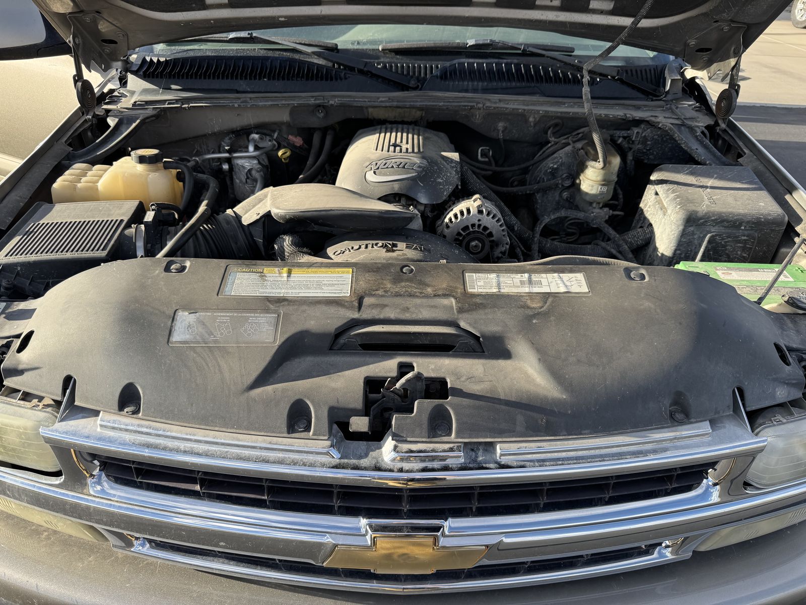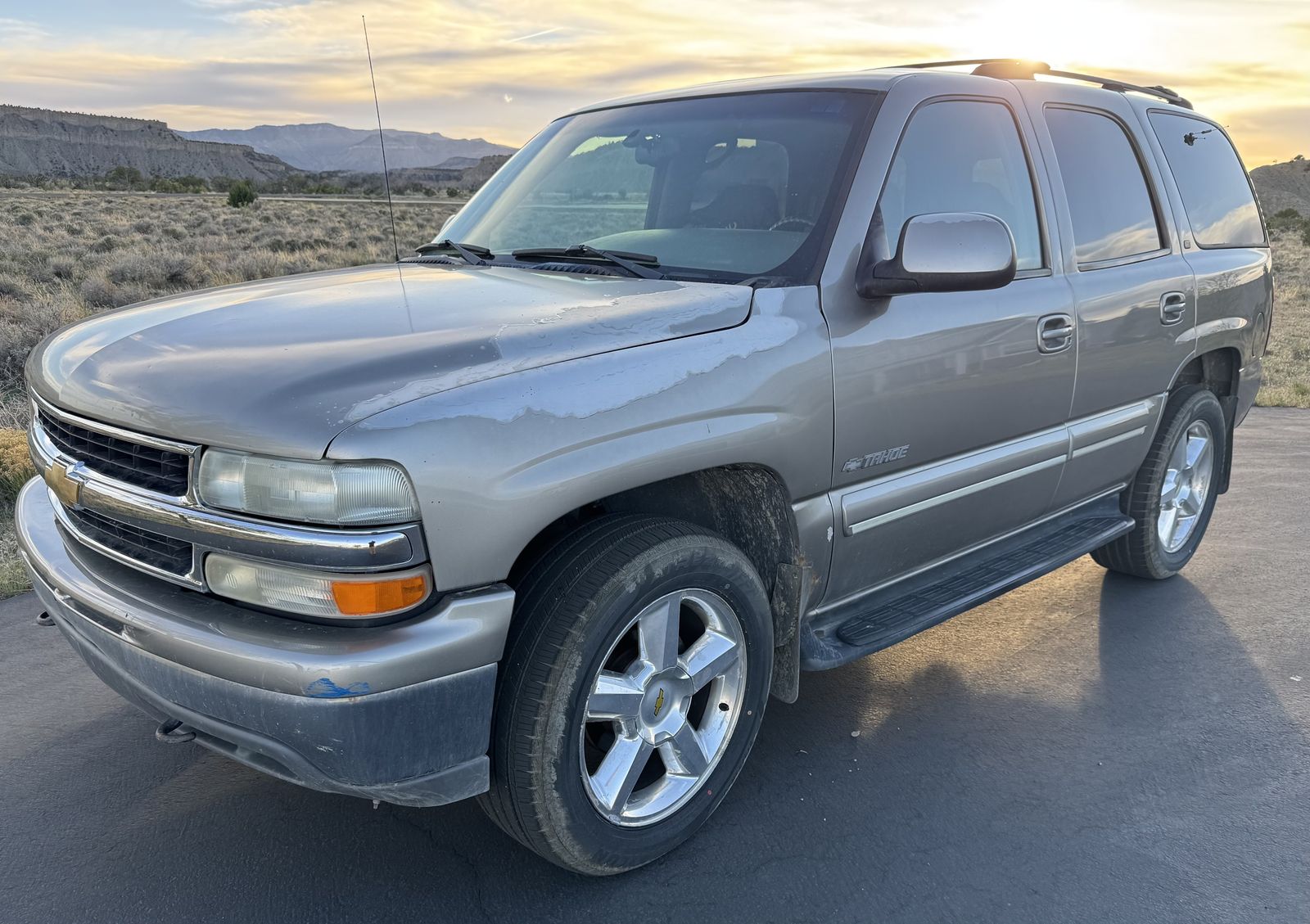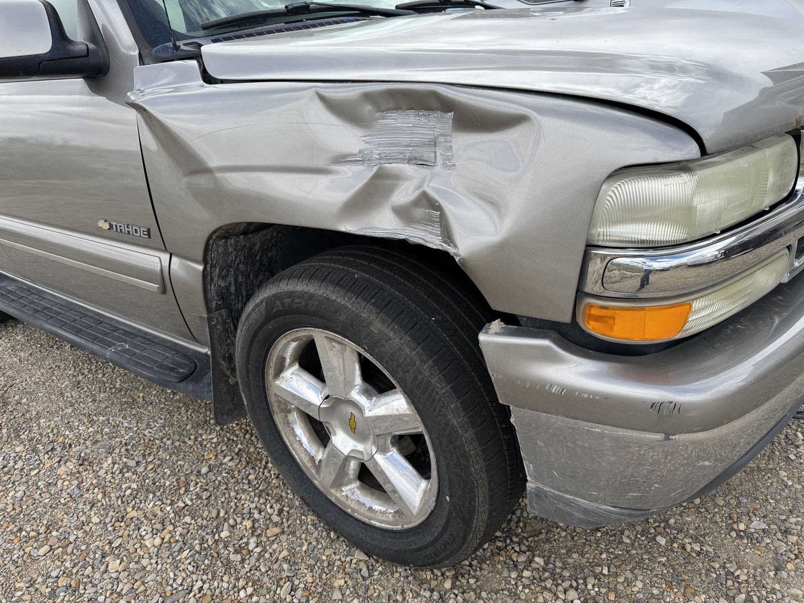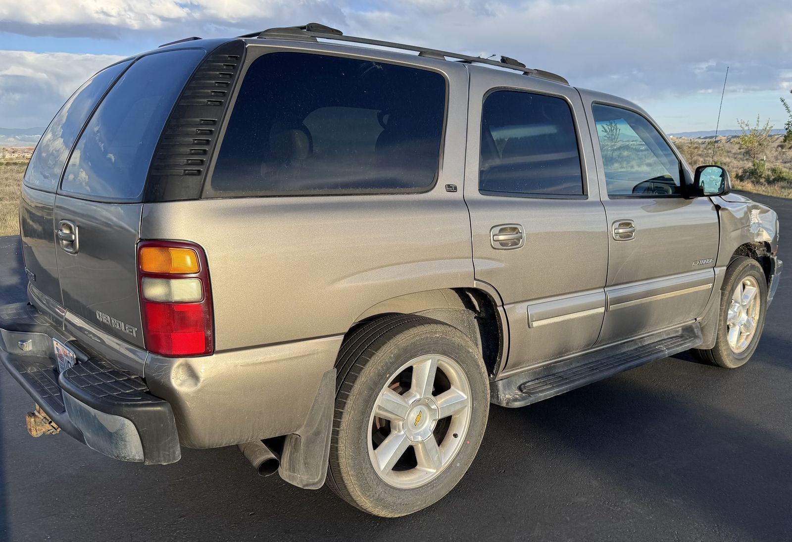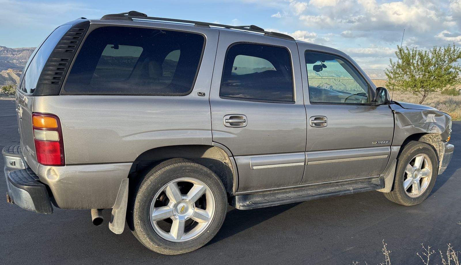 2001 Tahoe with long history of thorough care through known owners. Recent replacement of fuel pump and water pump. Brand new tires (over $1000 with less than 100 miles wear). Functioning AC and cruise. Damage to front right does not affect function.