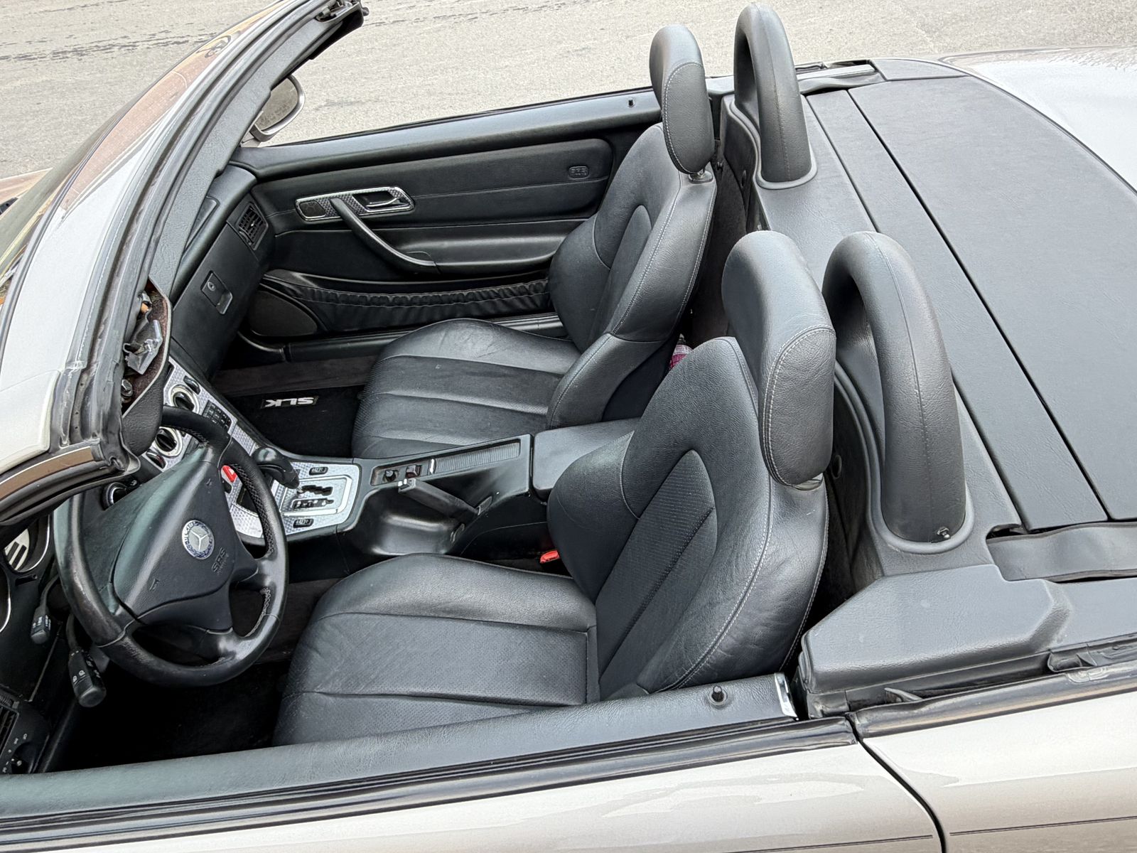 Super fun turbocharged Mercedes SLK convertible with auto-retractable hard-top. Good mechanical condition with a smooth operating automatic top.