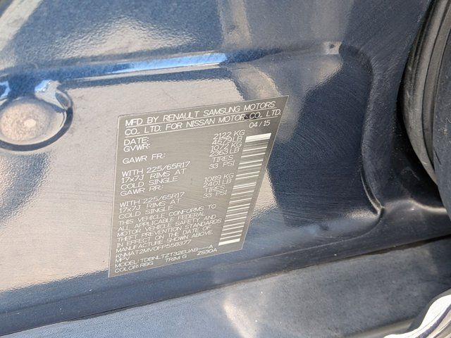 ARCTIC BLUE METALLIC,[L92] FLOOR MATS & 2-PC CARGO AREA PROTECTOR -inc: 2-pc front and 2-pc 2nd row floor mats,[B92] SPLASH GUARDS,[U01] SV PREMIUM PACKAGE -inc: Blind Spot Warning moving object detection Heated Seats Lane Departure Warning Power Liftgate Around View Monitor Radio: AM/FM/CD/RDS/AUX NissanConnect w/Navigation mobile apps 7 color touch-screen display USB connection port for iPod interface and other compatible devices Bluetooth hand-free phone system XM Satellite radio Nissan voice recognition for navigation and audio NavTraffic NavWeather SiriusXM TraveLink Google places and Google send-to-car Heated Outside Mirrors,CHARCOAL CLOTH SEAT TRIM,[Z66] ACTIVATION DISCLAIMER,All Wheel Drive,Power Steering,ABS,4-Wheel Disc Brakes,Brake Assist,Aluminum Wheels,Tires - Front All-Season,Tires - Rear All-Season,Temporary Spare Tire,Power Mirror(s),Integrated Turn Signal Mirrors,Rear Defrost,Intermittent Wipers,Variable Speed Intermittent Wipers,Privacy Glass,Rear Spoiler,Power Door Locks,Daytime Running Lights,Automatic Headlights,AM/FM Stereo,CD Player,Satellite Radio,MP3 Capability,Bluetooth Connection,Auxiliary Audio Input,Requires Subscription,MP3 Capability,Steering Wheel Audio Controls,Bluetooth Connection,Power Driver Seat,Bucket Seats,Driver Adjustable Lumbar,Pass-Through Rear Seat,Rear Bench Seat,Adjustable Steering Wheel,Trip Computer,Power Windows,Keyless Entry,Power Door Locks,Keyless Entry,Power Door Locks,Keyless Start,Cruise Control,Climate Control,Multi-Zone A/C,A/C,Cloth Seats,Driver Vanity Mirror,Passenger Vanity Mirror,Driver Illuminated Vanity Mirror,Passenger Illuminated Visor Mirror,Smart Device Integration,Power Windows,Power Door Locks,Trip Computer,Security System,Immobilizer,Traction Control,Stability Control,Traction Control,Front Side Air Bag,Tire Pressure Monitor,Driver Air Bag,Passenger Air Bag,Front Head Air Bag,Rear Head Air Bag,Passenger Air Bag Sensor,Child Safety Locks,Back-Up Camera