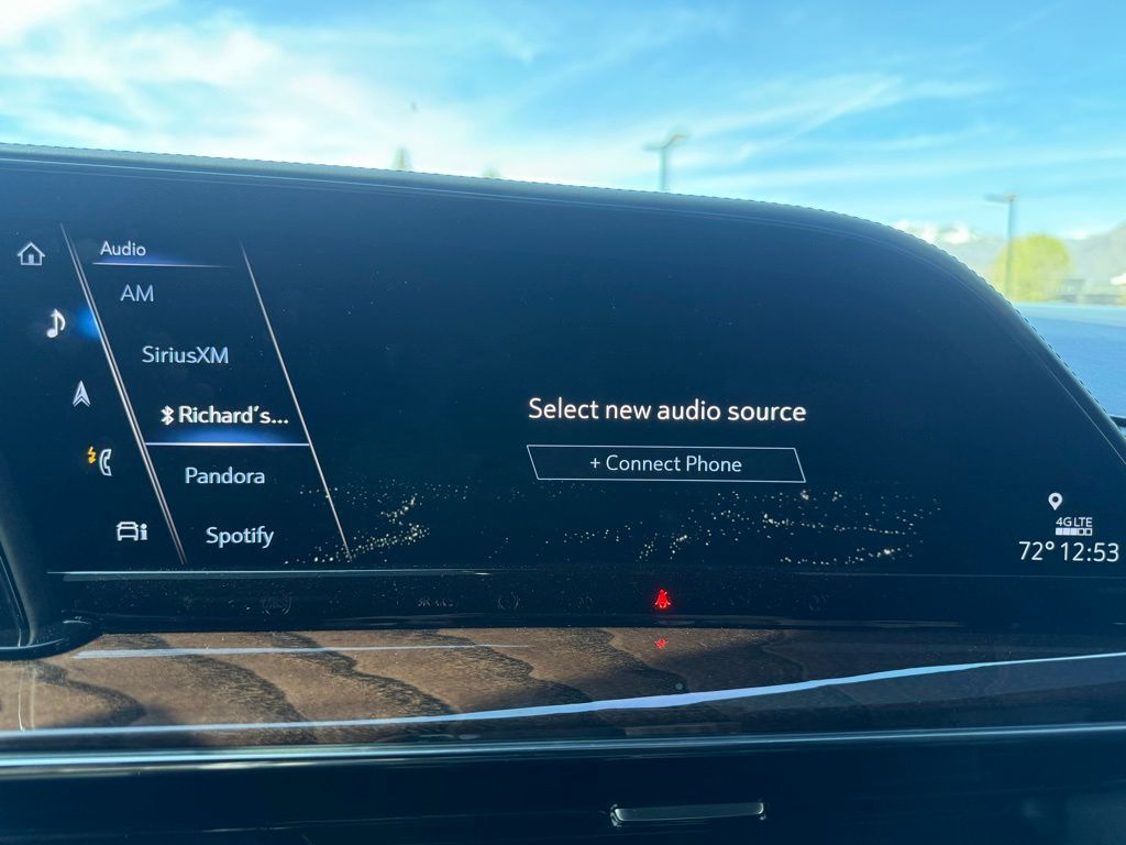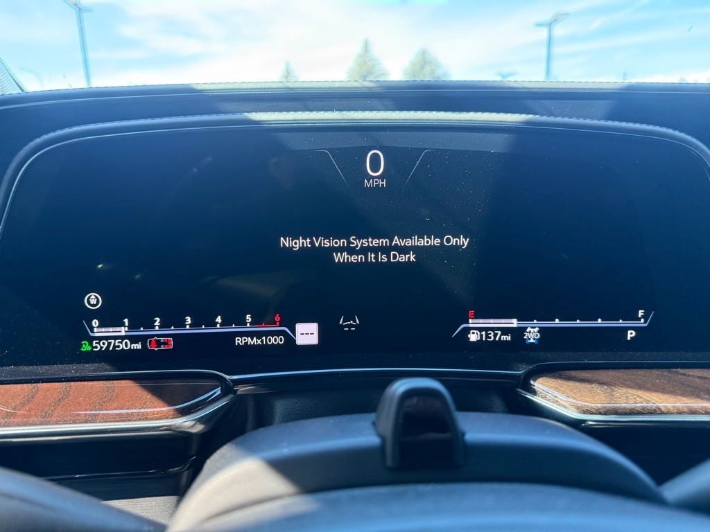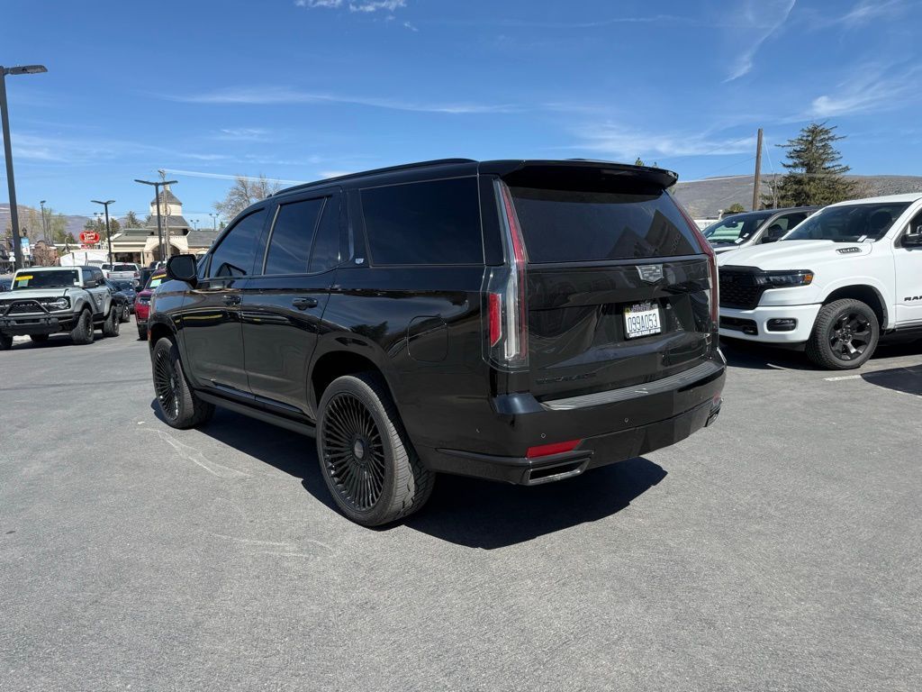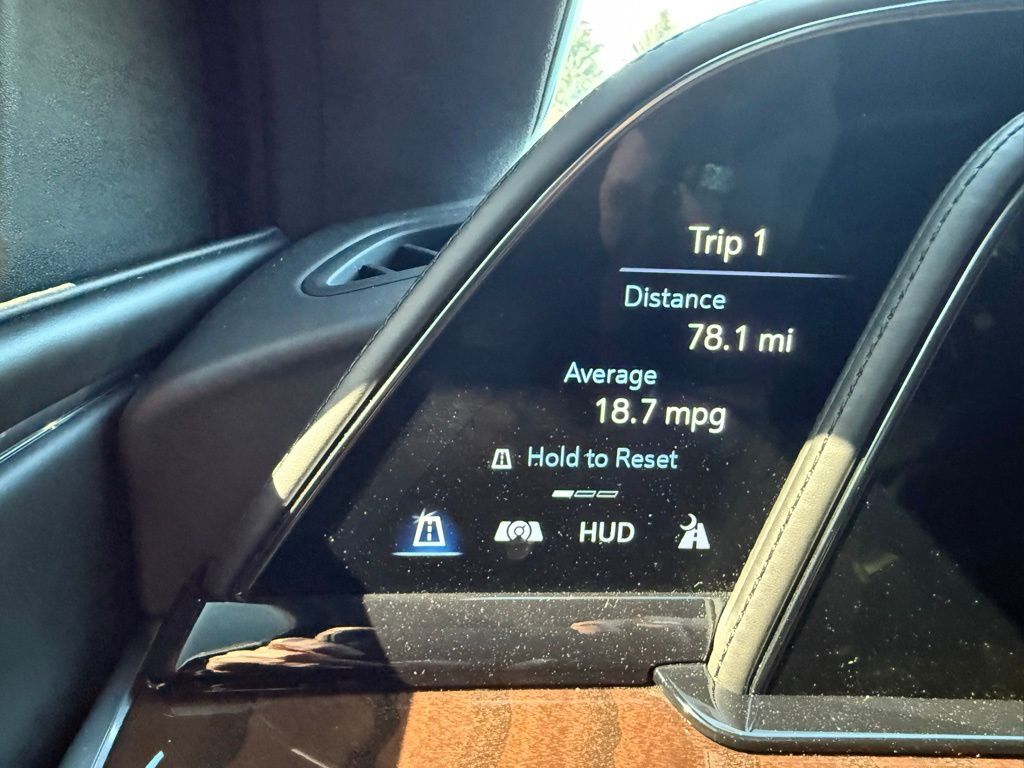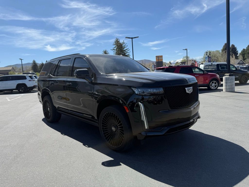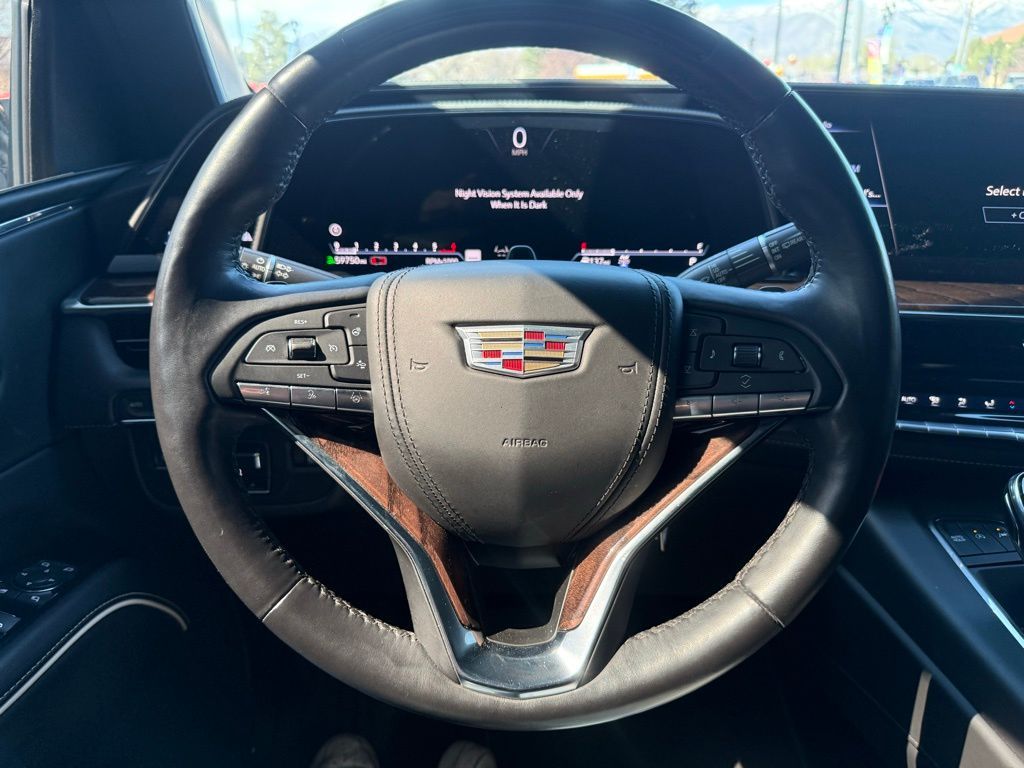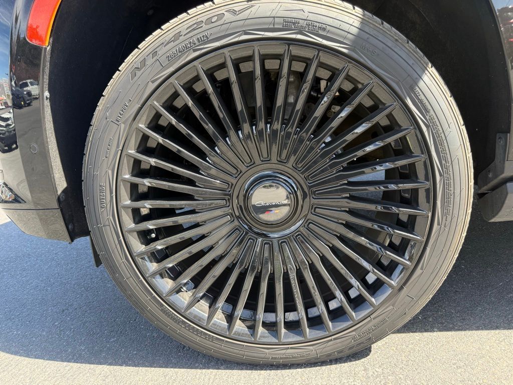 4WD, Black Leather, 16.9'' Diagonal OLED Infotainment Screen, 2-Presets Memory For Driver Seat Adjuster, 3.23 Axle Ratio, 3rd row seats: split-bench, 4-Way Power Driver Lumbar Seat Adjuster, 4-Way Power Front Passenger Lumbar Seat Adjuster, 4-Wheel Disc Brakes, 8-Way Power Driver Seat Adjuster, 8-Way Power Front Passenger Seat Adjuster, A/V remote, ABS brakes, Adaptive Cruise Control, Adaptive suspension, Air Conditioning, Air Ionizer, Air Ride Adaptive Suspension, AKG Studio Reference 36-Speaker Audio System, Alloy wheels, AM/FM radio: SiriusXM with 360L, Apple CarPlay/Android Auto, Audio memory, Auto High-beam Headlights, Auto tilt-away steering wheel, Auto-dimming door mirrors, Auto-dimming Rear-View mirror, Automatic Seat Belt Tightening, Automatic temperature control, Body-Color Door Handles, Brake assist, Bumpers: body-color, Compass, Delay-off headlights, Door auto-latch, Door Lock & Latch Shields, Driver Assist Tech Package, Driver door bin, Driver vanity mirror, Dual front impact airbags, Dual front side impact airbags, Electronic Limited-Slip Differential, Electronic Stability Control, Emergency communication system: OnStar and Cadillac connected services capable, Enhanced Automatic Emergency Braking, Enhanced Automatic Parking Assist, Floor Console w/Covered Storage, Four wheel independent suspension, Front anti-roll bar, Front Bucket Seats, Front Center Armrest w/Storage, Front dual zone A/C, Front reading lights, Full Semi-Aniline Leather Seats, Fully automatic headlights, Garage door transmitter, Genuine wood console insert, Genuine wood dashboard insert, Genuine wood door panel insert, Glass Breakage Sensor, HD Radio, Headphones, Heads-Up Display, Heated & Ventilated Driver & Front Passenger Seats, Heated door mirrors, Heated Driver & Front Passenger Seats, Heated front seats, Heated rear seats, Heated steering wheel, Hitch Guidance w/Hitch View, Illuminated entry, Illuminating Front & Rear Sill Plates, In-Vehicle Trailering System App, Integrated Trailer Brake Controller, Lane Keep Assist w/Lane Departure Warning, Leather steering wheel, Low tire pressure warning, Magnetic Ride Control Suspension, Memory seat, Navigation System, Occupant sensing airbag, Outside temperature display, Overhead airbag, Overhead console, Panic alarm, Passenger door bin, Passenger vanity mirror, Platinum Interior Trim, Power door mirrors, Power driver seat, Power Liftgate, Power Lumbar Massage Driver Seat, Power Lumbar Massage Front Passenger Seat, Power moonroof, Power Panoramic Tilt-Sliding Sunroof, Power passenger seat, Power steering, Power windows, Radio data system, Radio: AM/FM/SiriusXM w/Navigation, Rain sensing wipers, Rear air conditioning, Rear anti-roll bar, Rear audio controls, Rear Camera Mirror, Rear Camera Mirror Washer, Rear Cross Traffic Alert, Rear reading lights, Rear Seat Entertainment System, Rear window defroster, Rear window wiper, Reconfigurable Full-Color Head-Up Display, Remote keyless entry, Reverse Automatic Braking, Roof rack: rails only, Running Board Assist Steps, Security system, SiriusXM w/360L, Soft Closing Front & Rear Doors, Speed control, Split folding rear seat, Spoiler, Steering wheel memory, Steering wheel mounted audio controls, Tachometer, Teen Driver, Telescoping steering wheel, Theft-Deterrent Alarm System, Tilt steering wheel, Traction control, Trailer Side Blind Zone Alert, Trip computer, Turn signal indicator mirrors, Variably intermittent wipers, Vehicle Inclination Sensor, Vehicle Interior Movement Sensor, Ventilated front seats, Voltmeter, Wheels: 22'' 12-Spoke Polished Alloy, Wireless Apple CarPlay/Wireless Android Auto, 4WD, Black Leather.