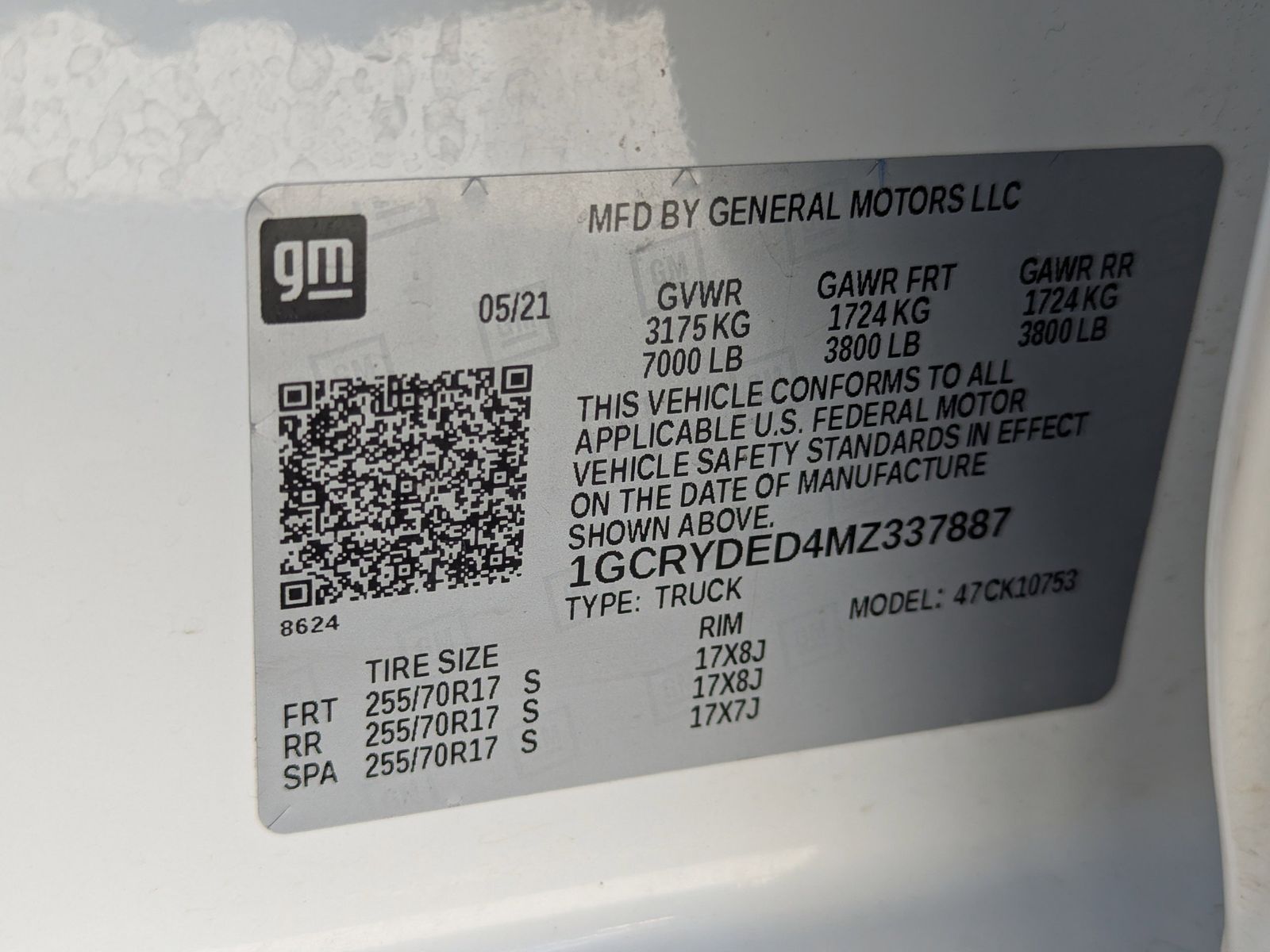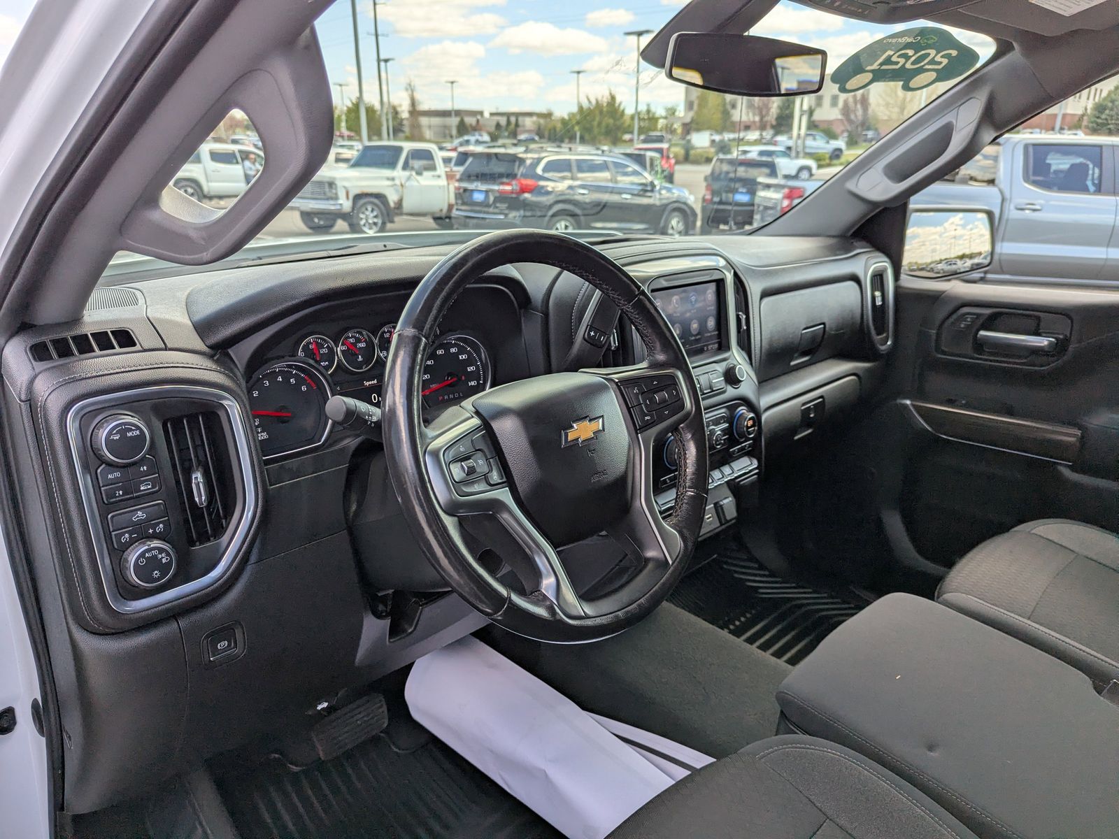 REMOTE VEHICLE STARTER SYSTEM,AUDIO SYSTEM CHEVROLET INFOTAINMENT 3 SYSTEM 8 diagonal color touchscreen AM/FM stereo. Additional features for compatible phones include: Bluetooth audio streaming for 2 active devices voice command pass-through to phone wired Apple CarPlay and Android Auto capable. (STD),SUMMIT WHITE,DEFOGGER REAR-WINDOW ELECTRIC,COOLING EXTERNAL ENGINE OIL COOLER,GVWR 7000 LBS. (3175 KG) (STD),SEATS FRONT 40/20/40 SPLIT-BENCH with covered armrest storage and under-seat storage (lockable) (STD),WHEELS 17 X 8 (43.2 CM X 20.3 CM) BRIGHT SILVER PAINTED ALUMINUM (STD),ALTERNATOR 170 AMPS,LICENSE PLATE KIT FRONT,TIRE SPARE 255/70R17 ALL-SEASON BLACKWALL (STD),REAR AXLE 3.23 RATIO,WHEELHOUSE LINERS REAR,TRANSMISSION 8-SPEED AUTOMATIC ELECTRONICALLY CONTROLLED with overdrive and tow/haul mode. Includes Cruise Grade Braking and Powertrain Grade Braking (STD),BED PROTECTION PACKAGE includes (B1J) wheel house liners and (CGN) Chevytec spray-on bedliner,LT PREFERRED EQUIPMENT GROUP includes standard equipment,TIRES 255/70R17 ALL-SEASON BLACKWALL (STD),COOLING AUXILIARY EXTERNAL TRANSMISSION OIL COOLER,JET BLACK CLOTH SEAT TRIM,CHEVYTEC SPRAY-ON BEDLINER BLACK WITH CHEVROLET LOGO (does not include spray-on liner on tailgate due to Black composite inner panel),ENGINE 5.3L ECOTEC3 V8 (355 hp [265 kW] @ 5600 rpm 383 lb-ft of torque [518 Nm] @ 4100 rpm); featuring available Dynamic Fuel Management that enables the engine to operate in 17 different patterns between 2 and 8 cylinders depending on demand to optimize power delivery and efficiency (NOTE: Certain 21MY vehicles will include (YK9) Not Equipped with Dynamic Fuel Management.),THEFT-DETERRENT SYSTEM UNAUTHORIZED ENTRY,SEATING HEATED DRIVER AND FRONT OUTBOARD PASSENGER,Tow Hitch,Climate Control,Multi-Zone A/C,A/C,Security System,Rear Defrost,Keyless Entry,Power Door Locks,Power Driver Seat,Split Bench Seat,Adjustable Steering Wheel,Heated Front Seat(s),Driver Adjustable Lumbar,Leather Steering Wheel,Remote Engine Start,Keyless Start,Heated Steering Wheel,Locking/Limited Slip Differential,Four Wheel Drive,Power Steering,ABS,4-Wheel Disc Brakes,Aluminum Wheels,Tires - Front All-Season,Tires - Rear All-Season,Tires - Front All-Season,Tires - Rear All-Season,Tow Hooks,Daytime Running Lights,Heated Mirrors,Power Mirror(s),Privacy Glass,AM/FM Stereo,MP3 Capability,Bluetooth Connection,Auxiliary Audio Input,Smart Device Integration,Satellite Radio,Requires Subscription,Bluetooth Connection,WiFi Hotspot,Split Bench Seat,Cloth Seats,Power Driver Seat,Driver Adjustable Lumbar,Heated Front Seat(s),Pass-Through Rear Seat,Rear Bench Seat,Floor Mats,Floor Mats,Leather Steering Wheel,Heated Steering Wheel,Steering Wheel Audio Controls,Adjustable Steering Wheel,Power Windows,Power Windows,Power Door Locks,Remote Engine Start,Keyless Entry,Power Door Locks,Keyless Start,Cruise Control,Security System,Power Outlet,MP3 Capability,Auxiliary Audio Input,Climate Control,Multi-Zone A/C,A/C,A/C,Rear A/C,Rear Defrost,Traction Control,Stability Control,Daytime Running Lights,Driver Air Bag,Passenger Air Bag,Front Side Air Bag,Front Head Air Bag,Rear Head Air Bag,Passenger Air Bag Sensor,Telematics,Requires Subscription,Back-Up Camera,Driver Restriction Features,Tire Pressure Monitor