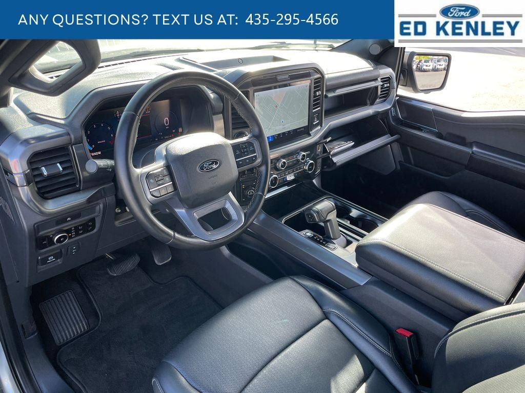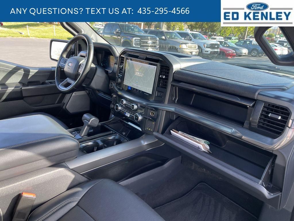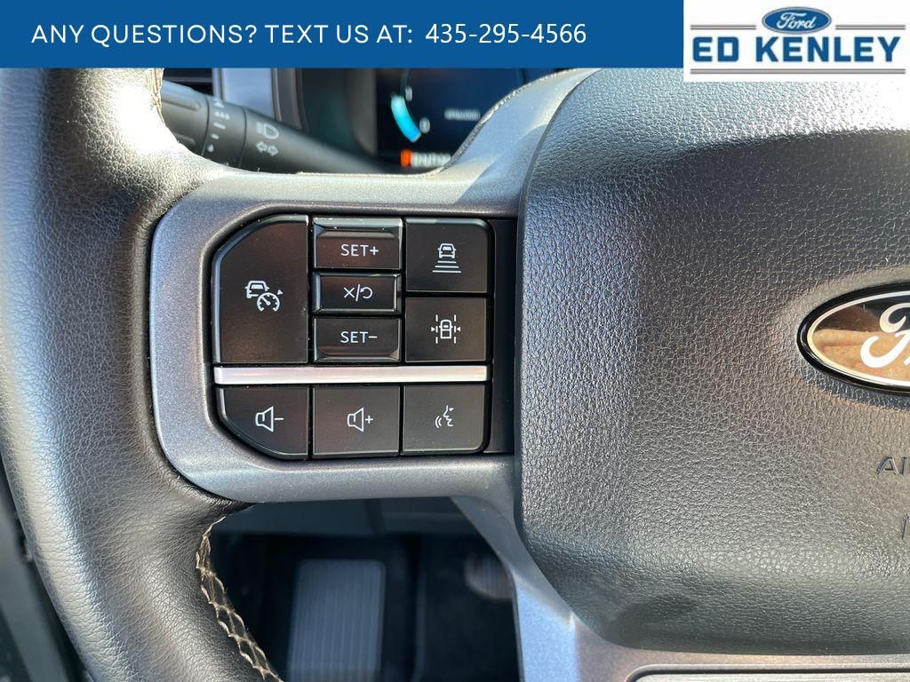 Lariat Black Appearance Package: Black Grille; ActiveX Trimmed Bucket Seats; Single Exhaust with No Tip; Black Exterior Badging; Grey Box Side Decal; 6" Black Running Boards; 20" Gloss Black Painted Aluminum Wheels; Body-Colour Front and Rear Bumpers; Body-Colour Door Handles and Skull Caps; Black Taillamp Bezels; Dark Interior Appliques,Equipment Group 501A Standard: Electronic 10-Speed Automatic Transmission; 3.5L V6 EcoBoost Engine; 275/60R20 BSW All-Terrain A/T Tires; 7,200 lbs (3,266 Kgs) GVWR; B&O Sound System by Bang and Olufsen,Tow/haul Package: Integrated Trailer Brake Controller; Electronic Locking with 3.55 Axle Ratio,Twin Panel Moonroof,Electronic Locking with 3.55 Axle Ratio,Skid Plates,SYNC 4 AppLink/Apple CarPlay/Android Auto smart device wireless mirroring,Pre-Collision Assist with Pedestrian Detection,Predictive Speed Assist Automatic curve slowdown cruise control,Unresponsive driver assist,FordPass Connect 5G mobile hotspot internet access,Ford Co-Pilot360 - Reverse Camera rear mounted camera,Lane Keeping Alert,Cross-Traffic Alert with Reverse Brake Assist collision mitigation,Adaptive Cruise Control with Stop-and-Go,Brake assist system,Cruise control with steering wheel mounted controls,Ventilated driver and front passenger seats,Connected Navigation integrated navigation system with voice activation,Keyfob remote start,Heated steering wheel,Heated driver and front passenger seats,Leatherette front seat upholstery,Primary monitor touchscreen,First and second-row sliding and tilting glass sunroof with express open/close activation sunshade,Driver seat power reclining, lumbar support, cushion tilt, fore/aft control and height adjustable control,Part and full-time 4WD,EcoBoost 3.5L V-6 port/direct injection, DOHC, variable valve control, twin turbo, regular unleaded, engine with 400HP,EcoBoost 3.5L V-6 DOHC,SYNC 4 with Enhanced Voice Recognition (Alexa-Built-In) built-in virtual assistant,PCA with AEB and Intersection Assist forward collision mitigation with left turn assist,Evasive Steering Assist evasion assist system,Intelligent Access with hands-free access and push button start,360 Degree Camera aerial view camera,Smart device remote start,Push-button,Automatic brake hold,Active aerodynamics,Bluetooth wireless audio streaming,Pro Trailer Backup Assist vehicle and trailer reverse assist,Pro Trailer Hitch Assist automated vehicle to trailer hitching assist,Gauge cluster display size: 12.00,Front mounted camera with washer,Right side camera,Pickup box camera,Left side camera,BLIS (Blind Spot Information System),Dual-zone front climate control,SYNC 4 with Enhanced Voice Recognition voice-activated climate control,Full gauge cluster screen,Directionally adaptive headlights,Auto High Beam auto high-beam headlights,SecuriLock immobilizer,B&O Sound System by Bang & Olufsen speakers,SYNC 4 handsfree wireless device connectivity,Trailer brake controller