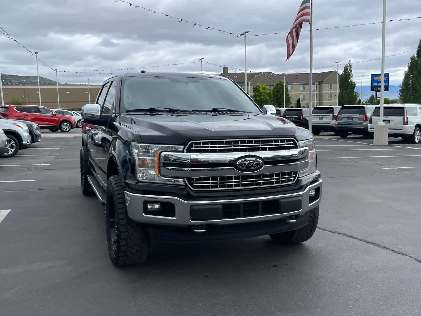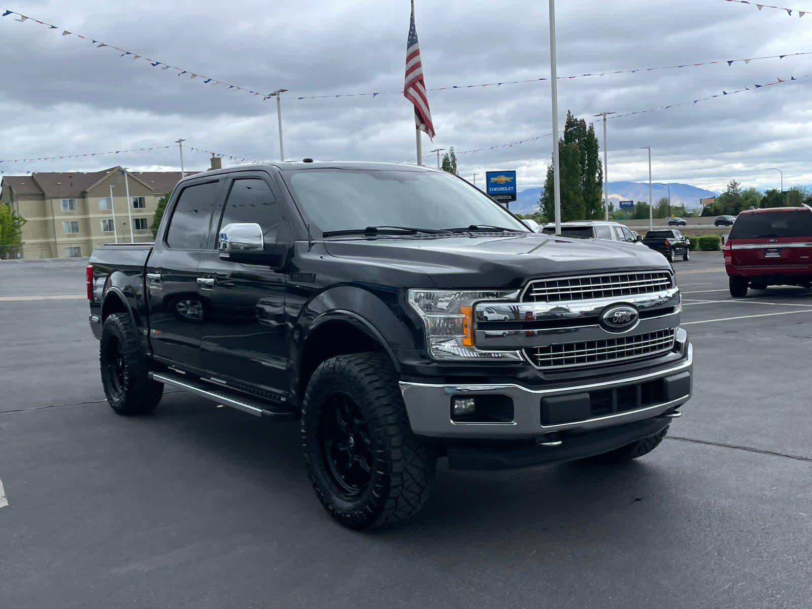 LARIAT CHROME APPEARANCE PACKAGE 2 chrome front tow hooks, Single-Tip Chrome Exhaust, Chrome Angular Step Bars, Chrome Door & Tailgate Handles w/Body-Color Bezel, Wheels: 18" Chrome-Like PVD, Chrome 2-Bar Grille w/4 Minor Bars, painted silver surround and background mesh, Chrome Skull Caps on Exterior Mirrors, EQUIPMENT GROUP 501A MID Remote Start System w/Remote Tailgate Release, LED Sideview Mirror Spotlights, high-intensity LED security approach lamps, Reverse Sensing System, Power Glass Sideview Mirr w/Body-Color Skull Caps, power-folding, heat, turn signal, memory and auto-dimming feature (driver's side), Universal Garage Door Opener, Blind Spot Information System (BLIS), cross-traffic alert and trailer tow monitoring (BLIS sensor in LED taillamp), 110V/400W Outlet, ELECTRONIC LOCKING W/3.55 AXLE RATIO, DROP-IN BEDLINER (PRE-INSTALLED) Custom Accessory, TIRES: LT275/65R18C OWL Automatic Transmission, ALL-WEATHER RUBBER FLOOR MATS, TRANSMISSION: ELECTRONIC 10-SPEED AUTOMATIC selectable drive modes: normal/tow-haul/snow-wet/EcoSelect/sport (STD).