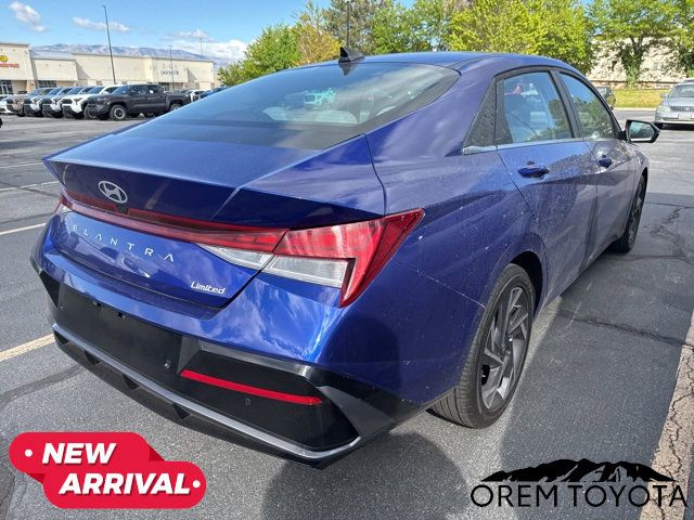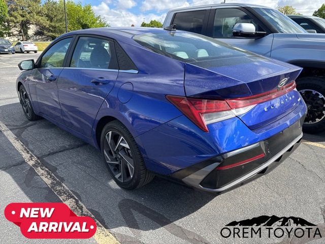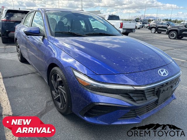2024 Hyundai Elantra LimitedIntense Blue I4Odometer is 6014 miles below market average!31/40 City/Highway MPGCARFAX One-Owner.To see more quality vehicles like this one right here just click on www.oremtoyota.com or dial (801) 823-6020. At Orem Toyota, we pledge to consistently provide a caring, value driven, and exceptional experience for all of our guests. We love being a family owned business and hope to welcome you to be part of our family. This Hyundai Elantra is equipped with the following features: Option Group 01, Navigation System, 17 x 7.0J Alloy Wheels, 4-Wheel Disc Brakes, 8 Speakers, ABS brakes, Air Conditioning, Alloy wheels, AM/FM radio: SiriusXM, Apple CarPlay & Android Auto, Auto High-beam Headlights, Auto-dimming Rear-View mirror, Automatic temperature control, Brake assist, Bumpers: body-color, Delay-off headlights, Driver door bin, Driver vanity mirror, Dual front impact airbags, Dual front side impact airbags, Electronic Stability Control, Emergency communication system: Bluelink , Front anti-roll bar, Front Bucket Seats, Front Center Armrest, Front dual zone A/C, Front reading lights, Front wheel independent suspension, Fully automatic headlights, Heated door mirrors, Heated Front Bucket Seats, Heated front seats, Illuminated entry, Leatherette Seats, Low tire pressure warning, Occupant sensing airbag, Outside temperature display, Overhead airbag, Overhead console, Panic alarm, Passenger door bin, Passenger vanity mirror, Power door mirrors, Power driver seat, Power moonroof, Power steering, Power windows, Radio: AM/FM/HD/SiriusXM Display Audio, Rear seat center armrest, Rear side impact airbag, Rear window defroster, Remote keyless entry, Security system, Speed control, Speed-sensing steering, Split folding rear seat, Steering wheel mounted audio controls, Tachometer, Telescoping steering wheel, Tilt steering wheel, Traction control, Trip computer, Turn signal indicator mirrors, and Variably intermittent wiperS.Navigation System, Option Group 01.