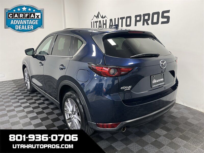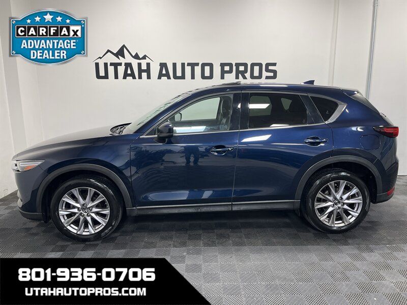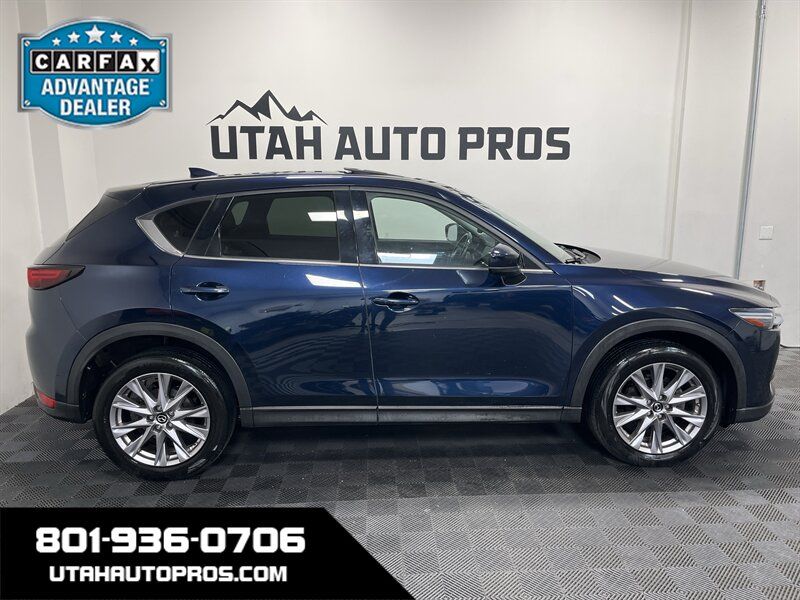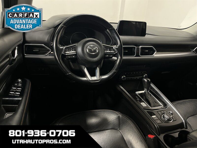 ALL WHEEL DRIVE, LOADED!!! This is nicely equipped Mazda CX-5 Grand Touring in a dark midnight blue with tinted windows and a black leather interior. It is equipped with a sunroof, backup camera, push button start, heated seats, power lift gate, bluetooth phone and audio, navigation system, lane departure alert, Bose sound system, blind spot monitor, lane keep assist, on wheel audio controls, cruise control, sporty wheels, clean title, runs and drives great. We tend to sell our vehicles quickly so please call and verify availability before heading in. You can check out the rest of our great inventory online at www.utahautopros.com