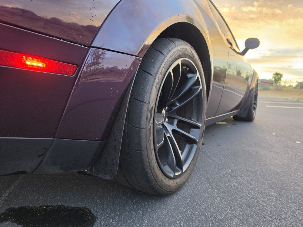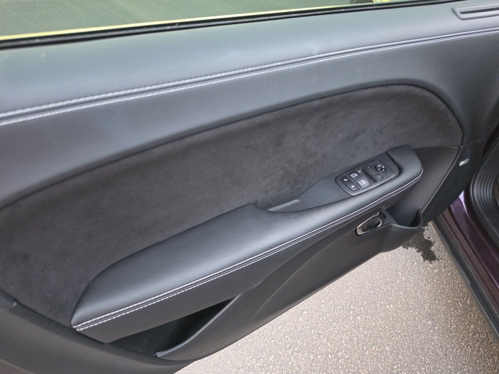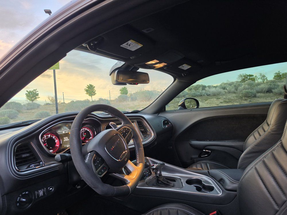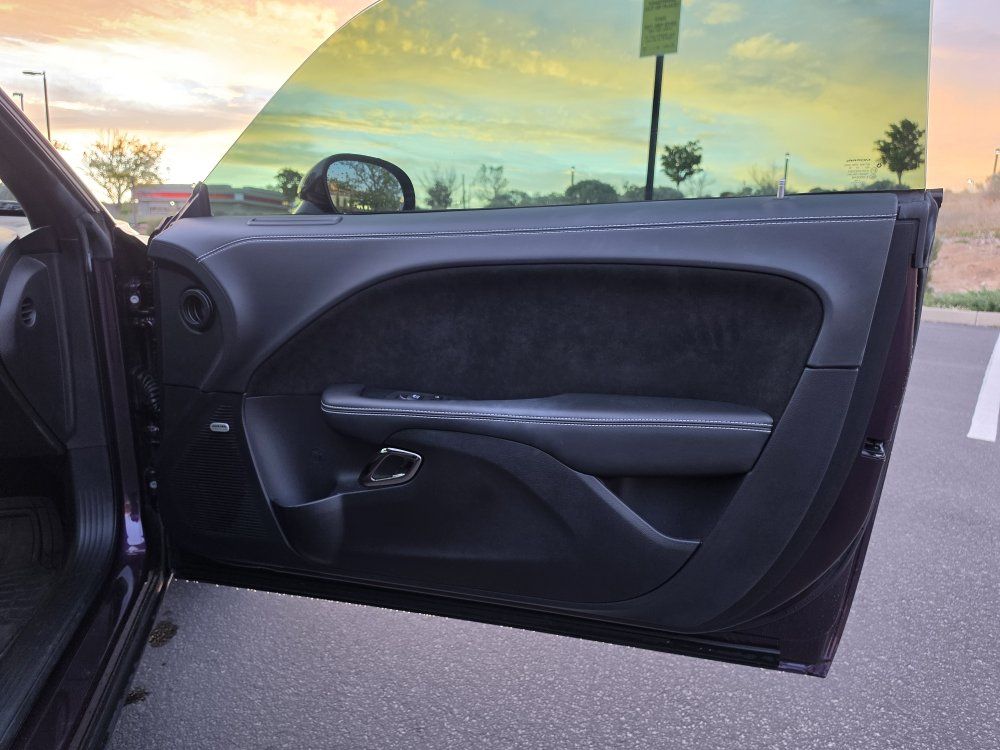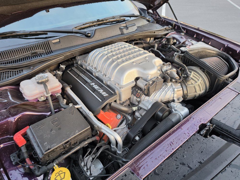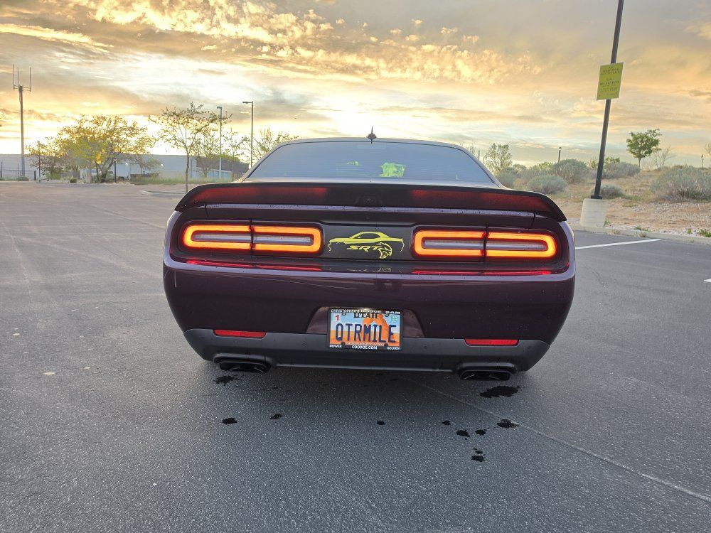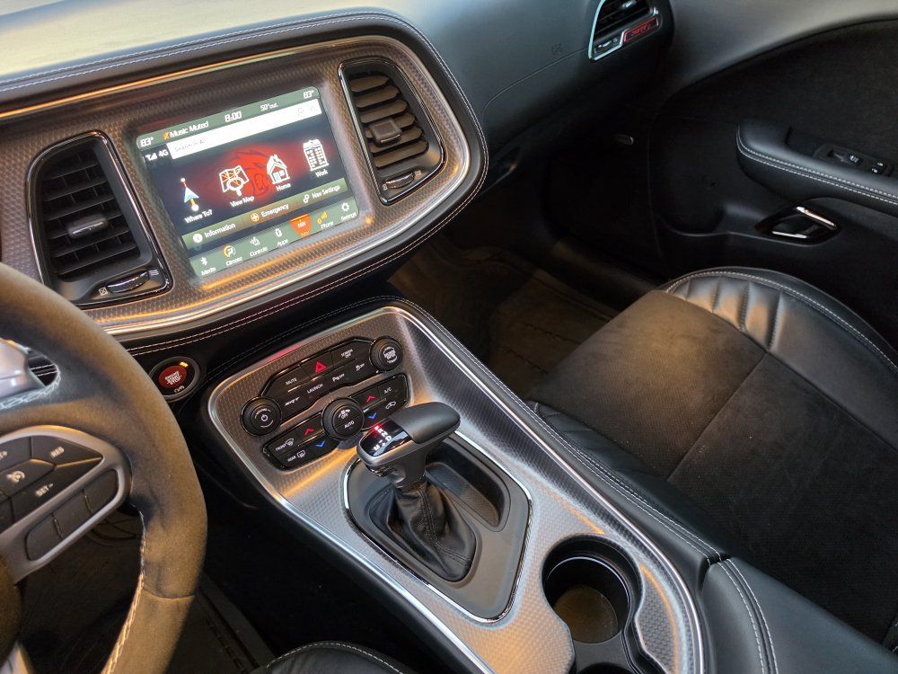 Powered by a 6.2L supercharged HEMI V8 (717 hp) paired to an 8-speed automatic transmission. Original MSRP was $78,560. Performance & Features: 717 HP / 656 lb-ft supercharged V8; 8-speed automatic transmission; Widebody competition suspension Adaptive damping suspension; Brembo 6-piston front brakes; Launch control line lock; Active exhaust system; SRT Performance Pages; Factory Widebody Package: Widebody fender flares; 20x11” Carbon Black wheels; 305-width tires: Upgraded suspension tuning; Interior & Comfort (Loaded): Alcantara / Laguna leather seats; Heated & ventilated front seats; Heated steering wheel; Premium stitched dash & door panels; Power tilt/telescope steering wheel; Uconnect 8.4” touchscreen with Navigation; Apple CarPlay & Android Auto; SiriusXM WiFi hotspot; Driver Convenience: Blind-spot monitoring; Rear cross-path detection; HID headlamps; Backup camera parking sensors;