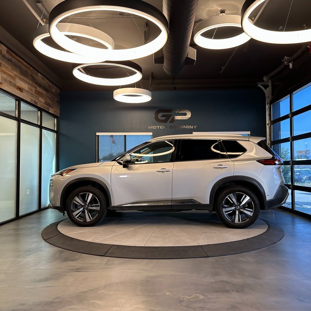 One owner, no accident history, AWD! Platinum series with heated front seats, power moonroof, power liftgate, backup camera, 10 speakers, and much more! 2021 Nissan Rogue Platinum AWD with branded title from hail. CVT with Xtronic 2.5L I4 DOHC 16V 25/32 City/Highway MPG