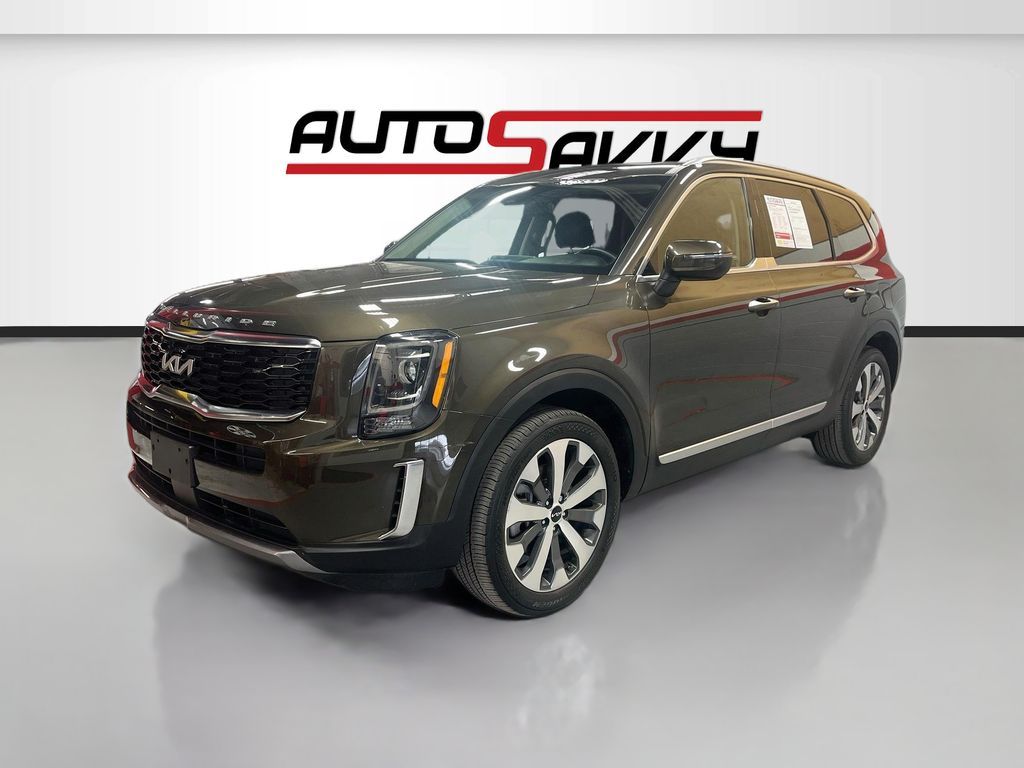 Discover the 2022 Kia Telluride S AWD, now available at AutoSavvy Woods Cross. This pre-owned sport utility vehicle showcases a striking Dark Moss exterior paired with a sleek Black interior, offering both style and versatility. Under the hood, the powerful LAMBDA II 3.8L V-6 engine delivers an impressive 291 horsepower, ensuring a robust performance for all your journeys. With 64,012 miles, this Telluride is equipped with premium features such as SynTex leatherette front seat upholstery, a spacious third-row split-bench, and a power sunroof. Stay connected and entertained with Apple CarPlay, Android Auto, and a 10.2-inch touchscreen display. The all-wheel-drive system guarantees superior handling, while safety features like Blind Spot Monitor, Lane Departure Warning, and Automatic Emergency Braking provide peace of mind. The current status of the title is branded, reflecting AutoSavvy's commitment to transparency and quality. As a Savvy Certified vehicle, this Kia Telluride has undergone a meticulous inspection to meet high standards of performance and safety. Enjoy added peace of mind with our 4-month/4,500 Mile Warranty, safeguarding your investment and ensuring reliability. Visit AutoSavvy Woods Cross today to experience the exceptional combination of luxury, technology, and dependability that the 2022 Kia Telluride S AWD offers. Discover the AutoSavvy difference, where every vehicle is crafted to exceed your expectations.