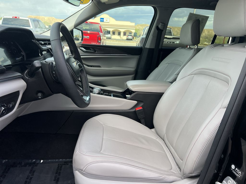 Quick Order Package 23N,19 Speakers High Performance Audio,Front Passenger Interactive Display,Diamond Black Crystal PC,Keyfob window control,Power liftgate rear cargo door,Ventilated driver and front passenger seats,Integrated navigation system with voice activation,Blind Spot Detection,Keyfob remote start,Heated steering wheel,Uconnect w/Bluetooth handsfree wireless device connectivity,Wireless Apple CarPlay/Android Auto smart device wireless mirroring,Heated driver and front passenger seats,10 USB ports,First and second-row sliding and tilting glass sunroof with express open/close activation sunshade,Nappa leather front seat upholstery,Driver seat with 8-way directional controls,Front passenger seat with 8-way directional controls,Keyfob trunk control,10.1 inch primary display,Full Speed Forward Collision Warning Plus,Pedestrian/Cyclist Emergency Braking,4G LTE Wi-Fi Hot Spot mobile hotspot internet access,ParkView w/Trailer Hitch Zoom rear mounted camera,Active Lane Management,Cross Path Detection collision mitigation,Adaptive Cruise Control w/Stop & Go,Predictive brake assist system,Cruise control with steering wheel mounted controls,Heated rear seats,Primary monitor touchscreen,Driver seat power reclining, lumbar support, cushion tilt, fore/aft control and height adjustable control,Quadra-Trac II automatic full-time 4WD,Pentastar 3.6L V-6 DOHC, variable valve control, regular unleaded, engine with 293HP,Pentastar 3.6L V-6 DOHC,Traffic Sign Recognition,Smart key with hands-free access and push button start,Smart device remote start,Push-button,Front passenger touchscreen,Bluetooth wireless audio streaming,Gauge cluster display size: 10.25,Proximity cargo area access release,Following distance alert,Dual-zone front climate control,Voice-activated climate control,Full gauge cluster screen,Auto high-beam headlights,Sentry Key immobilizer,Selectable Terrain Modes,McIntosh speakers,Active noise cancellation,Connected Travel & Traffic Services real-time traffic,Alpine Stereo System,Cooled Front Seats,Luggage Rack,Panoramic Power Sunroof,Rear Air Conditioning,V6; VVT; 3.6 Liter,Automatic; 8-Spd,4WD,Blind-Spot Alert,Hill Descent Control,Hill Start Assist Control,Traction Control,Electronic Stability Control,ABS (4-Wheel),Alarm System,Keyless Entry,Push Button Start,Air Conditioning,Power Windows,Power Door Locks,Adaptive Cruise Control,Power Liftgate Release,Power Steering,Tilt & Telescoping Wheel,AM/FM/HD Radio,SiriusXM Satellite,Navigation System,Bluetooth Wireless,Uconnect,F&R ParkSense Park Assist,ParkView Back-Up Camera,Dual Air Bags,Side Air Bags,F&R Head Curtain Air Bags,Knee Air Bags,Active Lane Management System,Heated Seats,Ventilated Seats,Dual Power Seats,Leather,Dual-Pane Panoramic Sun Roof,Daytime Running Lights,LED Headlamps,Fog Lights,Rear Spoiler,Roof Rack,Towing Pkg,Oversized Premium Wheels 20"