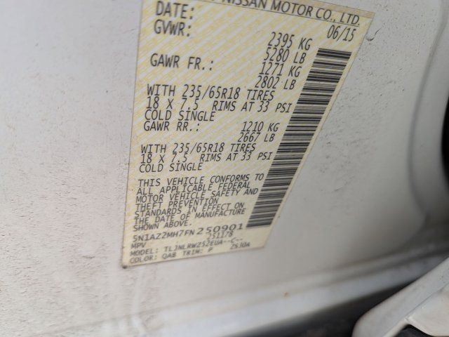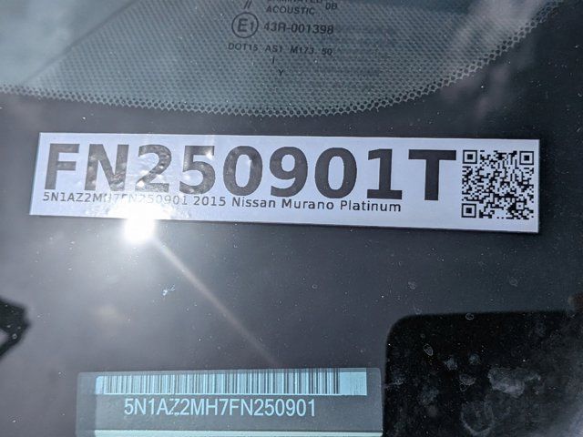As/Is Cash Only, CVT with Xtronic, AWD, 11 Speakers, 4-Wheel Disc Brakes, 4.677 Axle Ratio, ABS brakes, Activation Disclaimer, Air Conditioning, Alloy wheels, AM/FM radio, Anti-whiplash front head restraints, Auto-dimming Rear-View mirror, Automatic temperature control, Brake assist, Bumpers: body-color, Cargo Package w/Cover, CD player, Compass, Delay-off headlights, Driver door bin, Driver vanity mirror, Dual front impact airbags, Dual front side impact airbags, Electronic Stability Control, Floor Mats & Cargo Area Protector, Four wheel independent suspension, Front anti-roll bar, Front Bucket Seats, Front Center Armrest w/Storage, Front dual zone A/C, Front fog lights, Front reading lights, Fully automatic headlights, Garage door transmitter: HomeLink, Heated door mirrors, Heated Front Bucket Seats, Heated front seats, Illuminated entry, Intelligent Cruise Control, Interior Accent Lighting, Knee airbag, Leather Appointed Seat Trim, Leather Shift Knob, Low tire pressure warning, Memory seat, Navigation System, Occupant sensing airbag, Outside temperature display, Overhead airbag, Overhead console, Panic alarm, Passenger door bin, Passenger vanity mirror, Power door mirrors, Power driver seat, Power Liftgate, Power passenger seat, Power steering, Power windows, Predictive Forward Collision Warning (PFCW), Premium Paint, Radio data system, Radio: AM/FM/CD Audio System w/Navigation, Rear anti-roll bar, Rear reading lights, Rear seat center armrest, Rear window defroster, Rear window wiper, Remote keyless entry, Roof rack: rails only, Security system, SL Technology Package, Speed control, Speed-sensing steering, Speed-Sensitive Wipers, Splash Guards, Split folding rear seat, Spoiler, Steering wheel mounted audio controls, Tachometer, Telescoping steering wheel, Tilt steering wheel, Traction control, Trip computer, Turn signal indicator mirrors, Variably intermittent wipers, Wheels: 18 Machined Aluminum-Alloy, CVT with Xtronic, AWD.Ken Garff Nissan of Salt Lake City is honored to offer this superb-looking 2015 Nissan Murano. SL AWDKen Garff Nissan Downtown continues to change in order to serve you better! We have brought together over 100 years of managment experience to provide you with an incredible Sales and Service experience! Car buying should be fun and exciting, and at Ken Garff Nissan Downtown we strive to do just that! Check us out and see we mean it when we say Ken Garff Nissan Backs U Up!Recent Arrival! 2015 Nissan Murano SL 21/28 City/Highway MPG