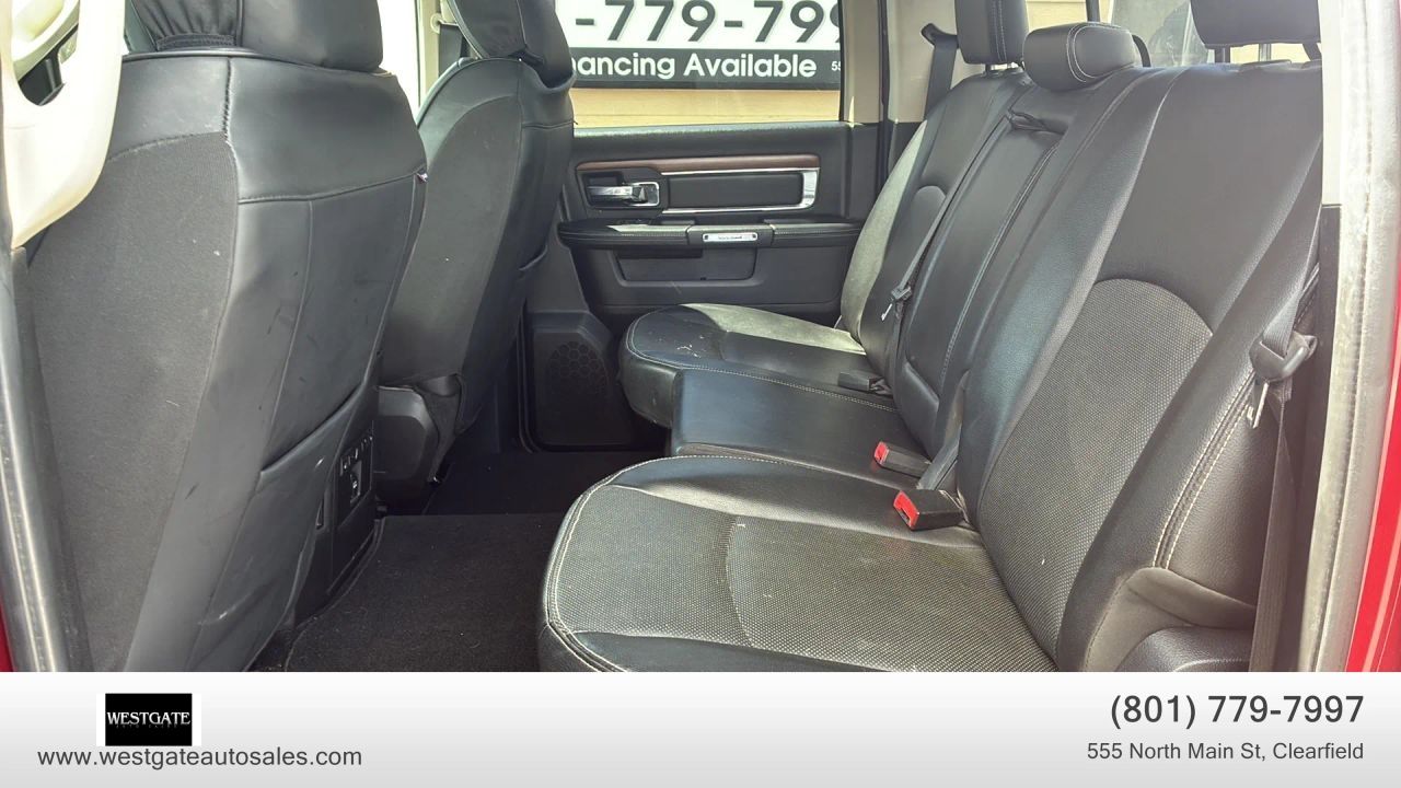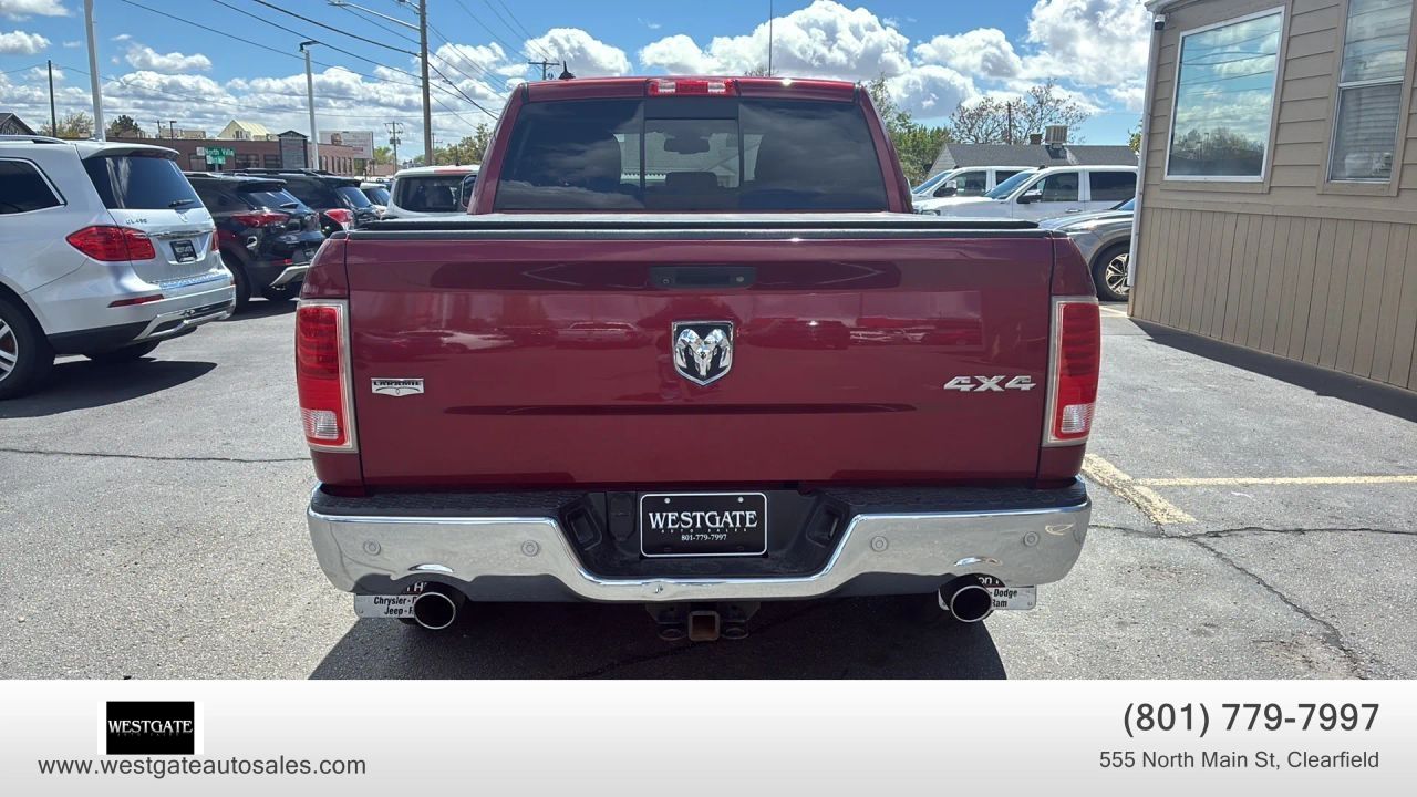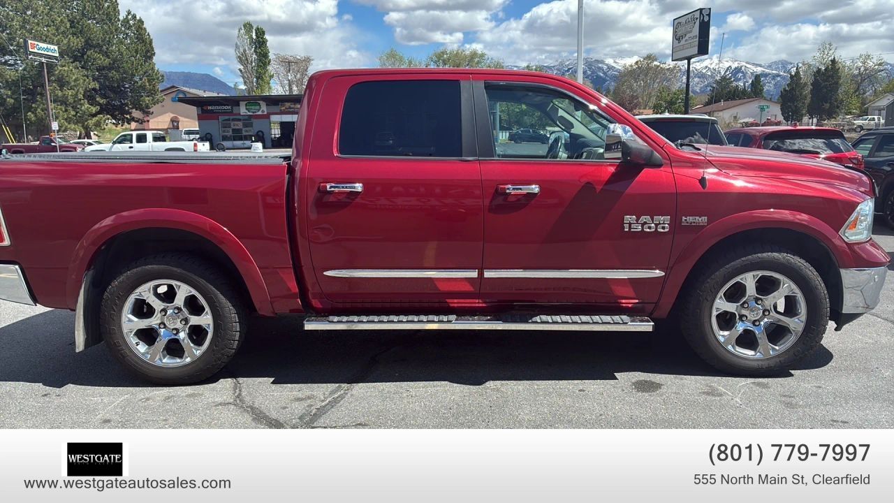 This�2015 Ram 1500 4WD Crew Cab 140.5 Laramie�features a�clean title�and reflects the pride of ownership associated with a�1 owner Carfax�vehicle boasting�26 service history records. Driven�190k miles, this Deep Cherry Red Crystal Pearlcoat truck is powered by the legendary�5.7 L V8 Hemi�MDS VVT engine paired with a smooth shifting�8 speed automatic 8HP70 transmission. This specific build includes the highly sought after�Anti Spin Differential Rear Axle�and a�3.92 Rear Axle Ratio, providing superior traction and towing performance compared to standard setups. The mechanical package is further enhanced by the�Protection Group�and an upgraded�32 gallon fuel tank, ensuring long distance capability and peace of mind on or off the road.