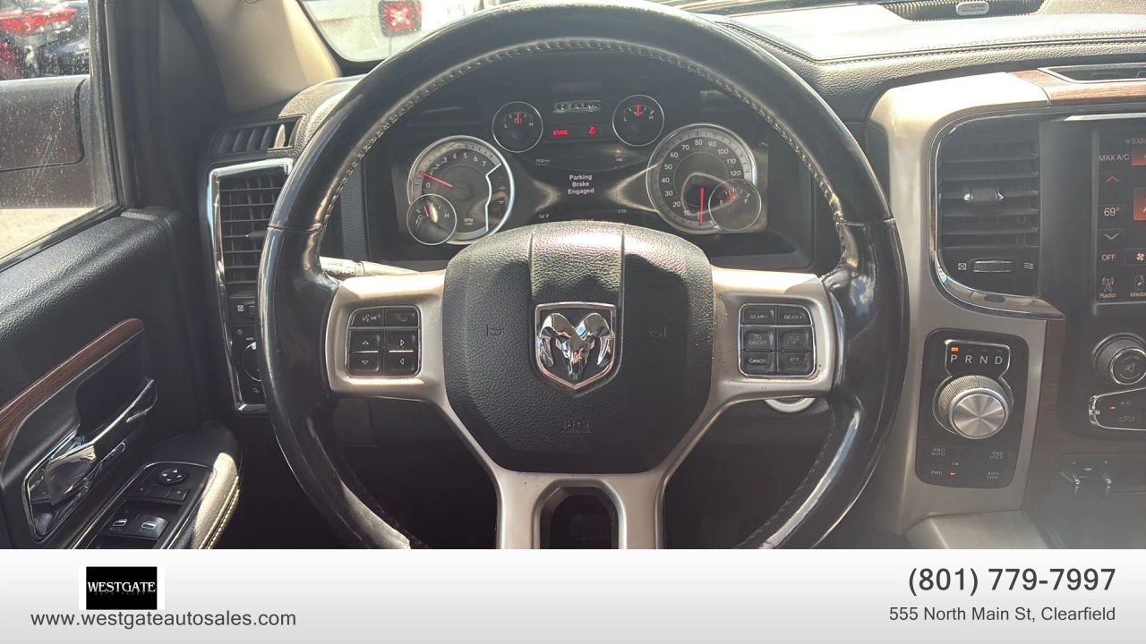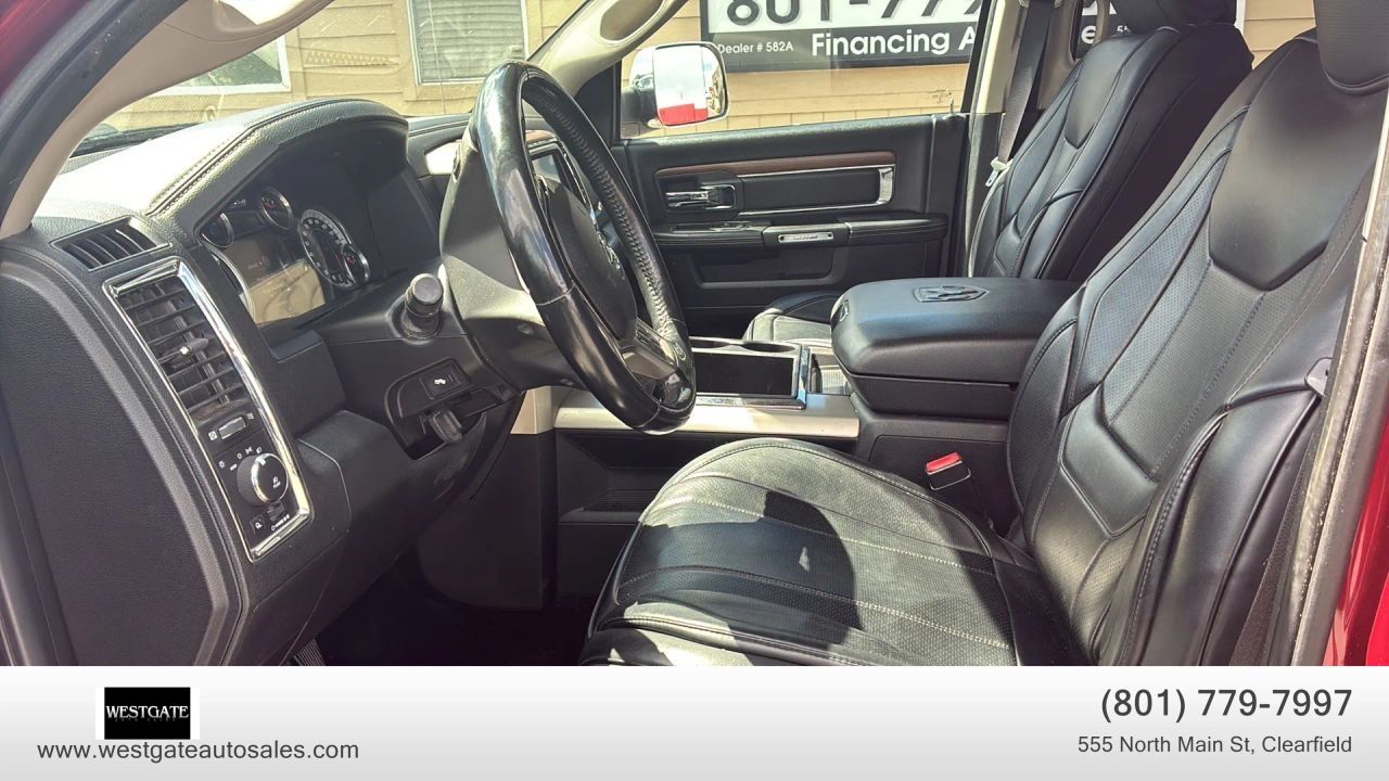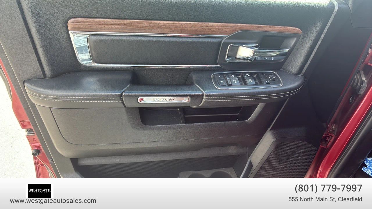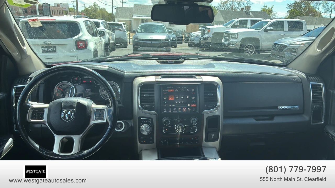 The interior of this Laramie is finished in premium�Black leather trimmed bucket seats�that are both�heated and ventilated�for year round comfort. Drivers will appreciate the�power 10 way memory seat�and�power adjustable pedals, while the�dual zone front automatic air conditioning�keeps all passengers comfortable. Technology is at the forefront with the�Uconnect 8.4 AN system�featuring�navigation, SiriusXM satellite radio, and integrated voice command with Bluetooth. The cabin experience is elevated by a�high performance 10 speaker audio system�and the convenience of a�heated leather steering wheel. Practicality meets luxury with features like the�remote start system, universal garage door transmitter, and the�ParkView back up camera.