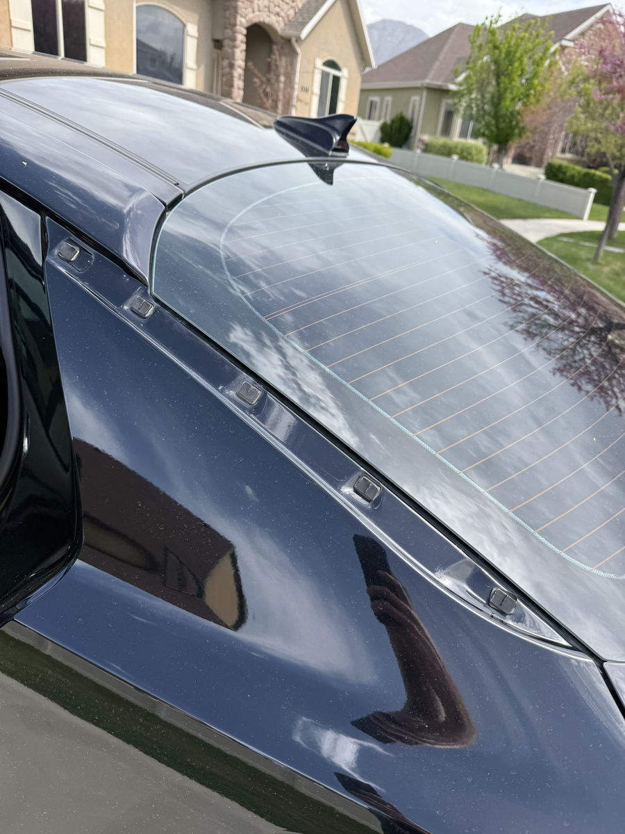 The exterior is finished in a sleek Black. There is a dent in the front passenger fender above the wheel well and some other blemishes around the car. While there are a few minor dings and scratches consistent with its age, the overall body remains in great shape and retains its "curb appeal."