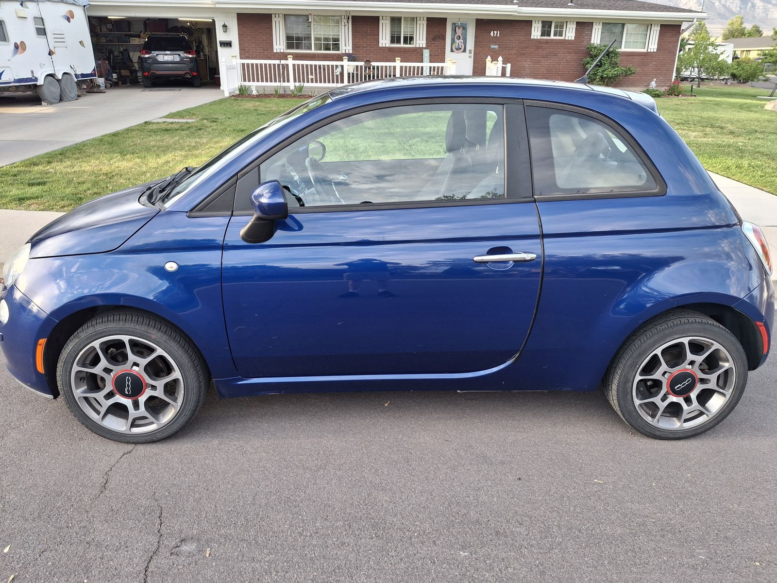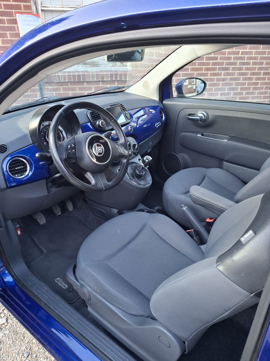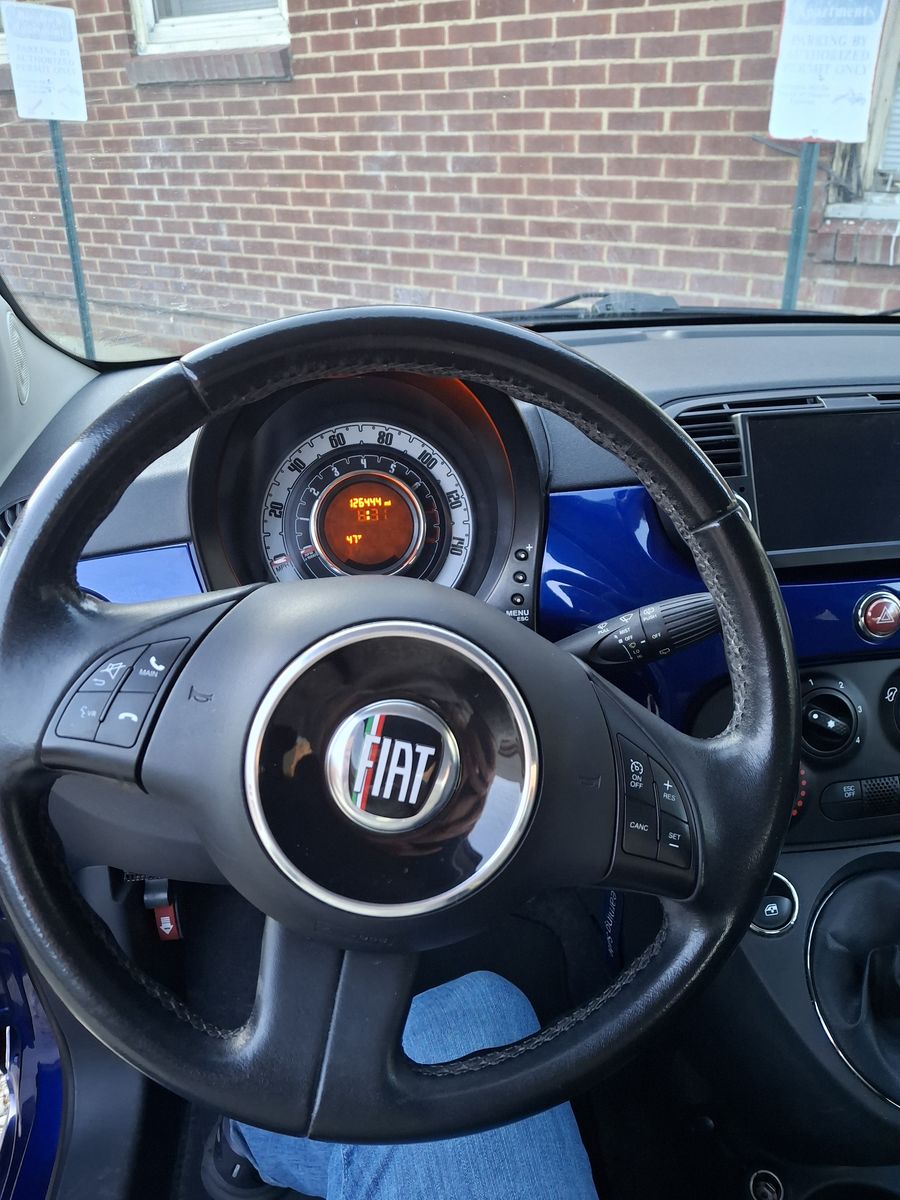 Manual transmission 2012 Fiat 500. Clean title, asking price of $2850. Selling because we need a bigger vehicle. Very fun car to drive and sad to be selling it. Clutch was replaced in Fall 2024 and has had limited use since. Custom touch screen media player installed, connected via bluetooth. Paint job on the hood makes it slightly more dull.