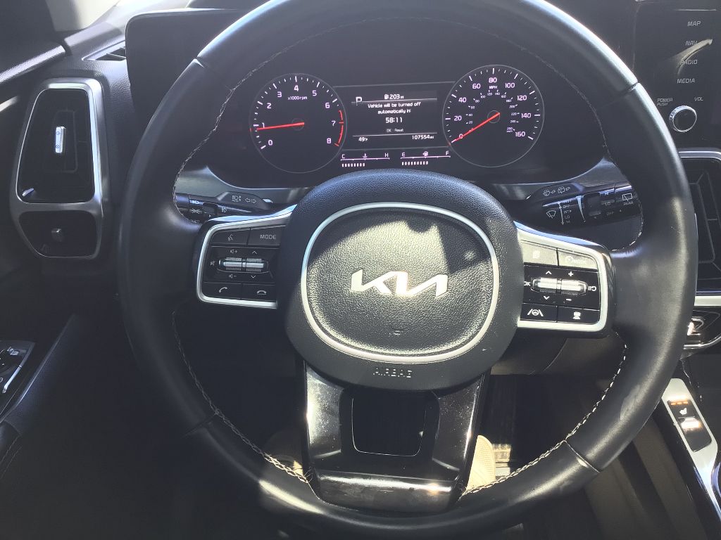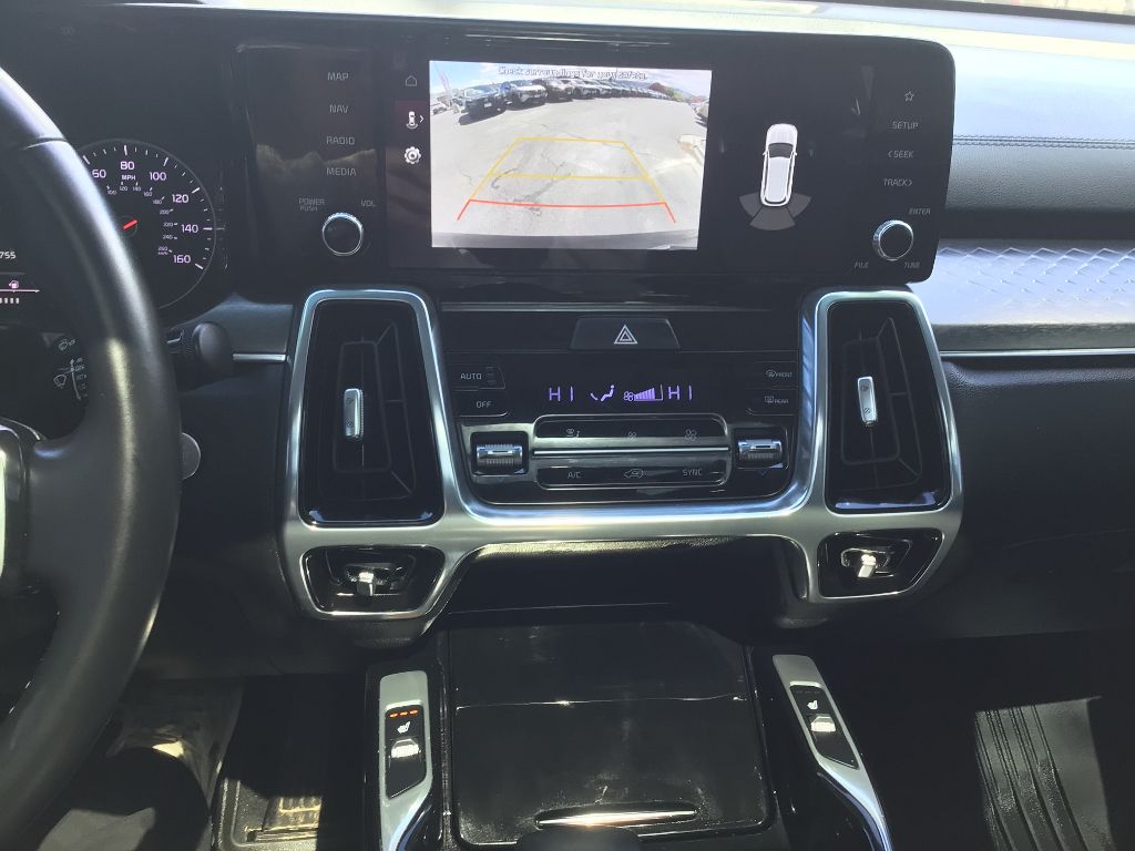 This unit is equipped with the latest generation of XM/Sirius Radio. This unit offers Android Auto for seamless smartphone integration. This mid-size suv offers Apple CarPlay for seamless connectivity. This mid-size suv features a hands-free Bluetooth phone system. This vehicle stays safely in its lane with Lane Keep Assist. Start this unit from inside with remote start. The installed navigation system will keep you on the right path. This model employs advanced tech for collision avoidance, enhancing safety on the road. Good News! This certified CARFAX 1-owner vehicle has only had one owner before you. The leather seats in this unit are a must for buyers looking for comfort, durability, and style. See what's behind you with the back up camera on this vehicle. Set the temperature exactly where you are most comfortable in the Kia Sorento. The fan speed and temperature will automatically adjust to maintain your preferred zone climate.