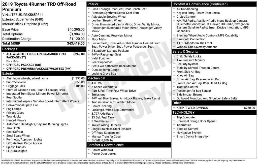 2019 Toyota 4Runner TRD Off-Road Premium