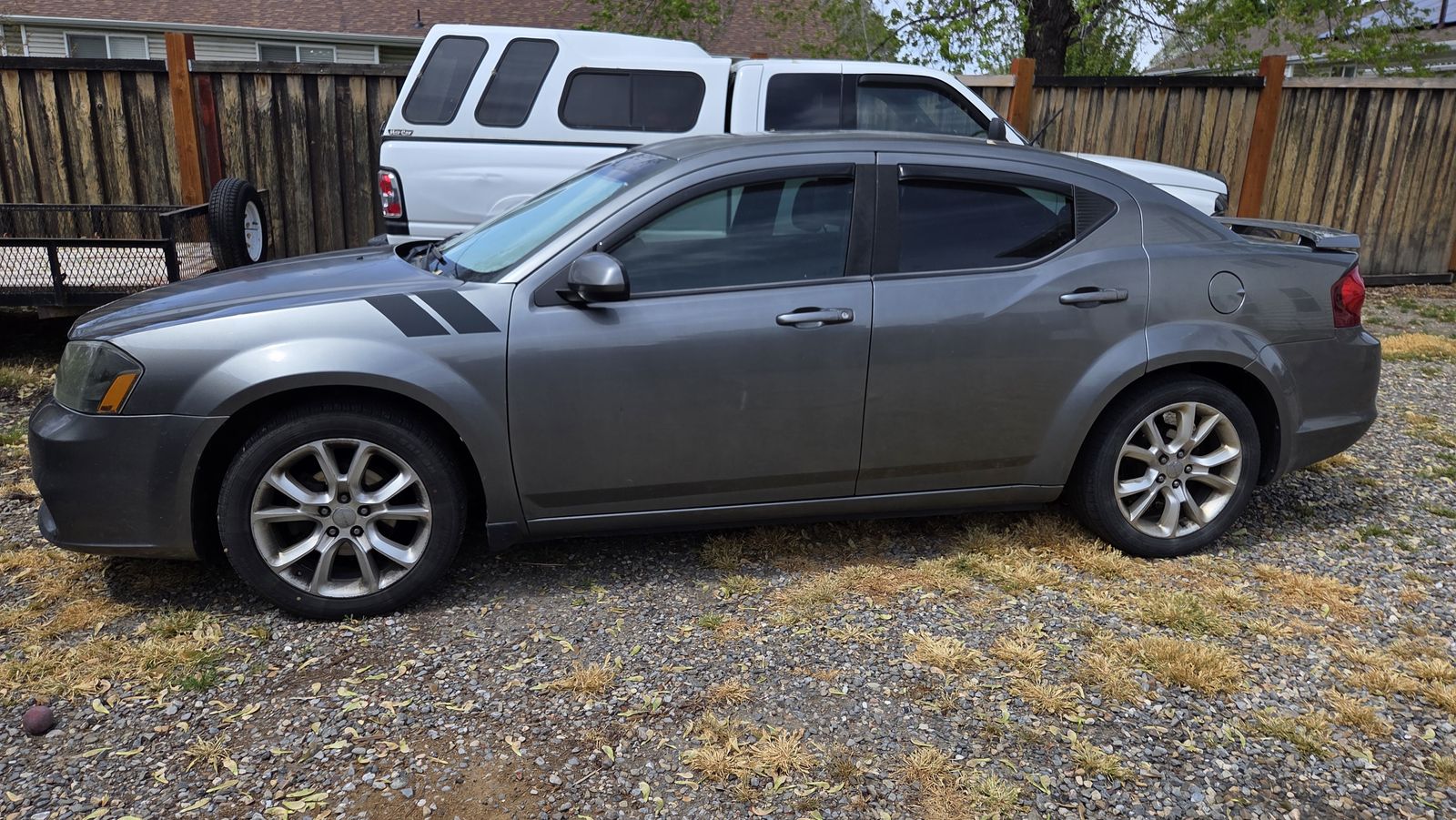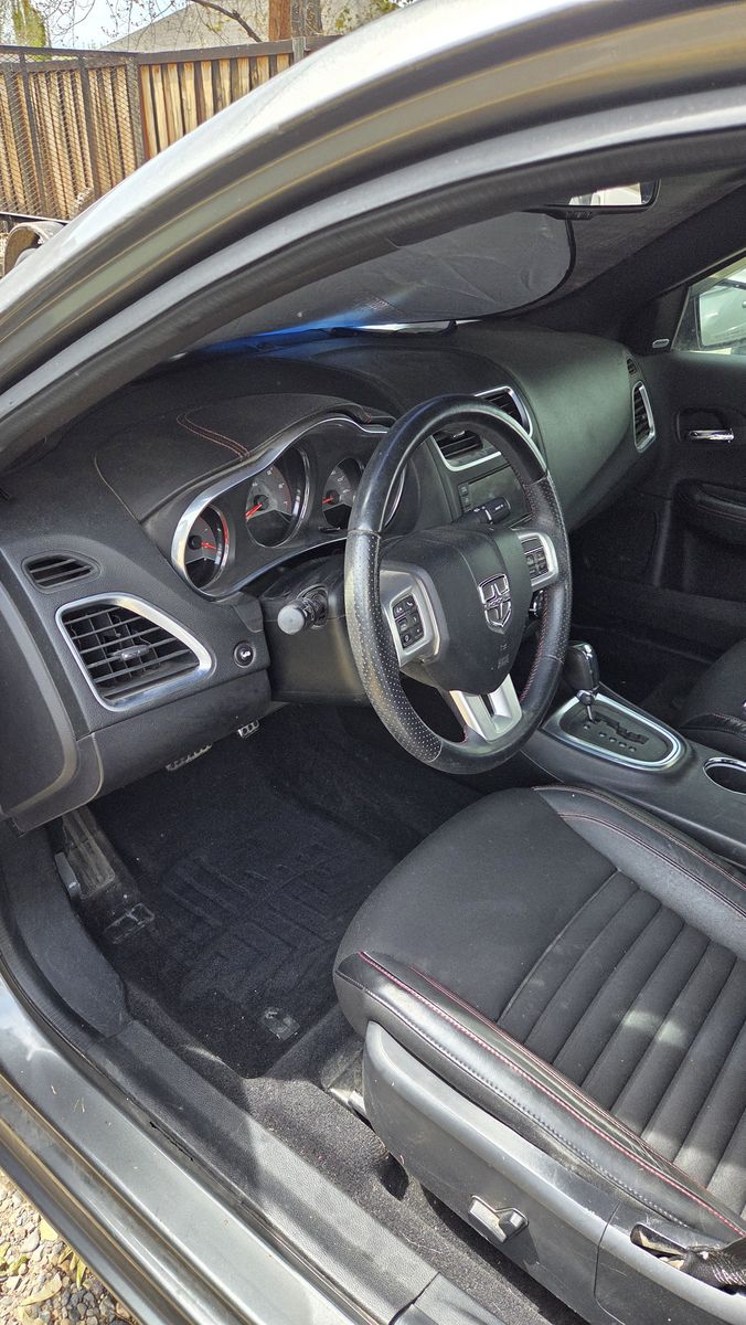 2013 Dodge Avenger R/T. Good to Very good condition for its age. Original Owner, non smoker, and well taken care of. Everything works. 282 HP high performance engine, 6 Speed Auto with Manual shift mode. Tires are in good condition, no engine mods other than a K&N air filter installed right after I purchased the car new. Auto climate control - A/C works perfect. Entertainment system with 8" LCD, 20 gb of internal music storage, Sirius -XM capable with Harmon - Kardon speakers throughout. Remote Start, with Door lock/ unlock, Trunk unlock, both remote fobs included. Also has factory alarm system. Electric adjustable driver seat, with seat warmers on both front seats. Split rear fold down seats with trunk access and armrest. Electric sunroof with shade. Side tinted windows with rain vents so you can crack the windows for circulation when its hot out. Black with Red trim interior and R/T badged headrests. Weather Tech floor mats front and back. Titanium colored paint with R/T badging exterior - Note that it has oxidation on the roof only. Alternator replaced at 85K miles, Tune-Up at 75K miles. as well as normal brake and tire replacements when needed. Spare oil filters and original air filter with my oil change records and original floor mats included in the Trunk, with original owners manual included. Just detail it to your liking. As you can see, this is equipped well above any trim in the Avenger line-up. Look up the VIN # on KBB. This isn't a show room condition car - it was my daily driver and very reliable travel car and I would see upwards of 32 MPG on road trips. All reasonable offers considered - once you look at it in person - as this is a lower than average mileage, well maintained vehicle and not abused. Look over the photos, text me your questions.