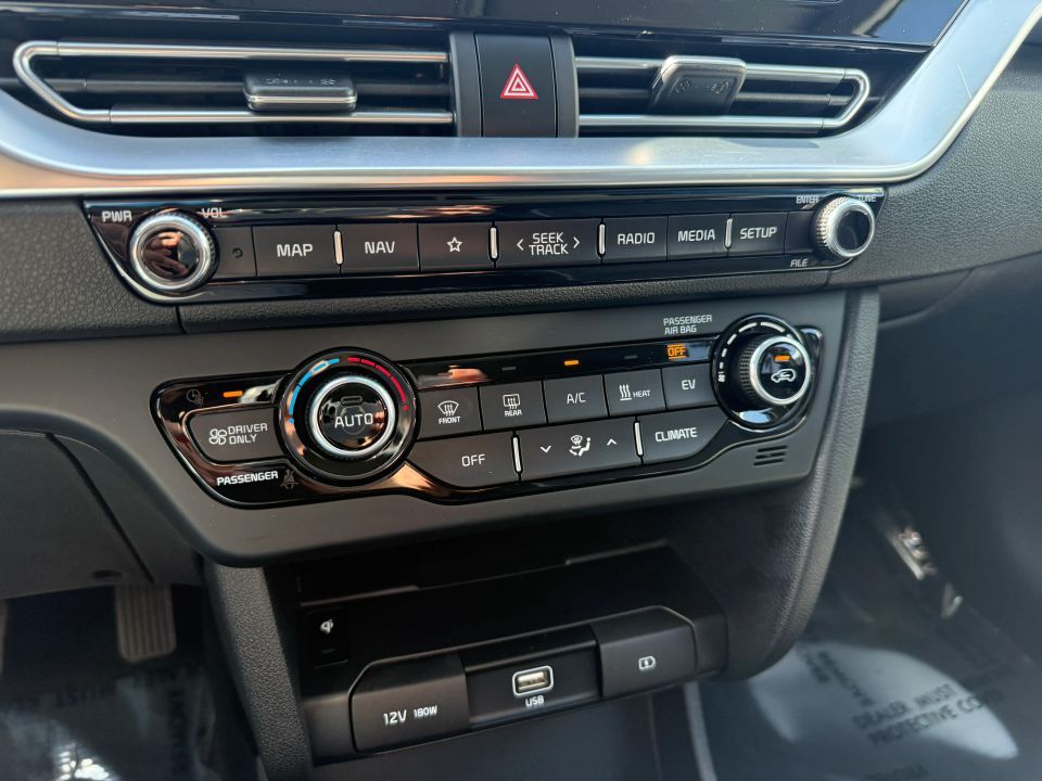 Convenience &; Technology FeaturesAll-Electric Powertrain201 Horsepower Electric MotorFront-Wheel DriveSingle-Speed Automatic Transmission10.25-inch Touchscreen Infotainment SystemApple CarPlay &; Android AutoNavigation SystemBluetooth Hands-Free &; Audio Streaming8-Speaker Audio SystemWireless Phone ChargingHeated Front Seats &; Heated Steering WheelPower Adjustable Driver Seat with Lumbar SupportDual-Zone Automatic Climate ControlRemote Start &; Kia Connect� ServicesDigital Driver DisplayUSB Charging PortsLED Headlights &; Daytime Running Lights17-inch Alloy WheelsRegenerative Braking System