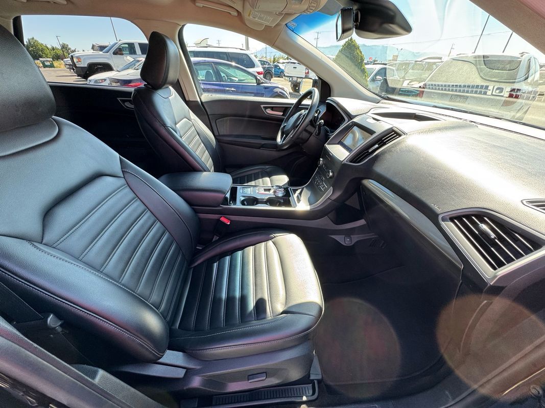 Leather Seats,Heated Seats,Bluetooth,Backup Camera,Roof rails: silver,Driver seat: heated,Driver seat power adjustments: height lumbar, reclining, 10,Front headrests: adjustable 2,Front seat type: bucket,Passenger seat: heated,Passenger seat manual adjustments: reclining,Passenger seat power adjustments: height 6,Rear headrests: adjustable 3,Rear seat folding: flat one-touch fold flat, split,Rear seat manual adjustments: reclining,Rear seat type: 60-40 split bench,Upholstery: leatherette,ABS: 4-wheel,Braking assist: ,Cornering brake control: ,Electronic brakeforce distribution: ,Electronic parking brake: auto off,Emergency braking preparation: ,Front brake diameter: 12.4,Front brake type: ventilated disc,Power brakes: ,Rear brake diameter: 12.4,Rear brake type: disc,Auto start/stop: ,Battery: maintenance-free,Battery saver: ,Daytime running lights: LED,Exterior entry lights: approach lamps puddle lamps,Front fog lights: LED,Headlights: LED auto delay off, auto high beam dimmer, auto on/off, wiper activated,Taillights: LED,Automatic emergency braking: front front pedestrian,Automatic hazard warning lights: ,Blind spot safety: sensor/alert,Camera system: rearview,Camera system washer: rear,Child safety door locks: ,Child seat anchors: LATCH system,Cross traffic alert: rear,Impact sensor: alert system door unlock, post-collision safety system,Lane deviation sensors: ,Lane keeping assist: ,Parking sensors: rear,Pre-collision warning system: audible warning pedestrian detection, visual warning,Programmable safety key: ,Rearview monitor: in dash,Airbag deactivation: occupant sensing passenger,Front airbags: dual,Knee airbags: dual front,Side airbags: front,Side curtain airbags: front rear,Side mirror adjustments: manual folding power,Side mirrors: heated integrated turn signals,Front wipers: rain sensing variable intermittent,Liftgate window: fixed,Power windows: remotely operated safety reverse,Rear privacy glass: ,Rear wiper: intermittent with washer,Window defogger: rear,Anti-theft system: alarm vehicle immobilizer,Power door locks: anti-lockout auto-locking,Steering ratio: 17.7,Emergency locking retractors: front rear,Front seatbelts: 3-point,Rear seatbelts: 3-point,Seatbelt force limiters: front,Seatbelt pretensioners: front,Seatbelt warning sensor: front,4WD type: on demand,Axle ratio: 3.81,Front shock type: gas,Front spring type: coil,Front stabilizer bar: diameter 25 mm,Front struts: MacPherson,Front suspension classification: independent,Front suspension type: lower control arms,Rear shock type: gas,Rear spring type: coil,Rear stabilizer bar: diameter 23 mm,Rear suspension classification: independent,Rear suspension type: multi-link,Electronic messaging assistance: voice operated with read function,Hands-free phone call integration: voice operated,Smart device app compatibility: FordPass Connect,Smart device app function: engine start lock operation, maintenance status, vehicle location,Wi-Fi: hotspot,Wireless data link: Bluetooth,Antenna type: diversity mast,Auxiliary audio input: Bluetooth USB, iPod/iPhone,Radio: AM/FM touch screen display, voice operated,Satellite radio: SiriusXM,Speed sensitive volume control: ,Total speakers: 9,Watts: 190,Spare tire mount location: inside,Spare tire size: temporary,Spare wheel type: steel,Tire Pressure Monitoring System: ,Tire type: all season,Wheels: painted aluminum alloy,Clock: ,Compass: ,Digital odometer: ,External temperature display: ,Fuel economy display: MPG range,Gauge: tachometer,Instrument cluster screen size: 4.2 in. (dual),Multi-function display: ,Trip odometer: ,Warnings and reminders: low fuel level low oil level, maintenance due,Air filtration: ,Front air conditioning: automatic climate control,Front air conditioning zones: dual,Rear vents: second row,Armrests: rear center with cupholders rear folding,Dash trim: alloy,Door sill trim: scuff plate,Floor mat material: carpet,Floor material: carpet,Floor mats: front rear,Steering wheel trim: leather,Active grille shutters: ,Door handle color: body-color,Exhaust: dual tip,Exhaust tip color: stainless steel,Front bumper color: body-color,Grille color: chrome chrome surround,Mirror color: body-color,Rear bumper color: body-color,Rear spoiler: roofline,Rear spoiler color: body-color,Rear trunk/liftgate: liftgate,Rocker panel color: black,Window trim: chrome,Assist handle: front rear,Capless fuel filler system: ,Cargo area light: ,Center console: front console with armrest and storage,Cruise control: ,Cupholders: front rear, 8,Keypad entry: ,Multi-function remote: panic alarm proximity entry system, trunk release,One-touch windows: 2,Overhead console: front,Power outlet(s): 12V front 12V rear,Power steering: ,Power windows: lockout button,Push-button start: ,Reading lights: front rear,Rearview mirror: auto-dimming,Steering wheel: tilt and telescopic,Steering wheel mounted controls: audio cruise control, multi-function, paddle shifter, phone, voice control,Storage: accessory hook cargo tie-down anchors and hooks, door pockets, front seatback, organizer, sunglasses holder,Vanity mirrors: dual illuminating,Connected in-car apps: Google POIs Google search, app marketplace integration,Infotainment: SYNC,Infotainment screen size: 8 in.,Smartphone integration: Android Auto Apple CarPlay,Hill holder control: ,Roll stability control: ,Stability control: ,Traction control: