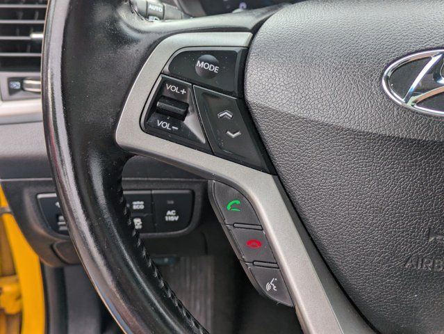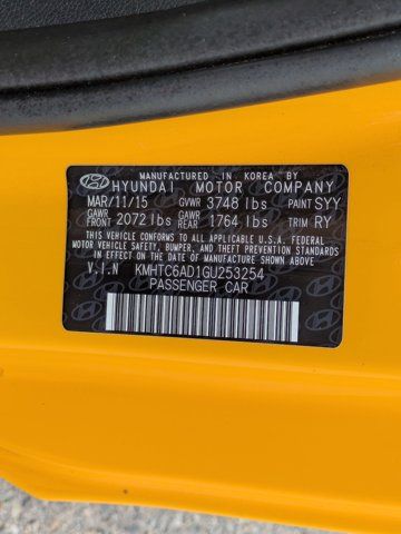 26.2 YELLOW,CARPETED FLOOR MATS,WHEEL LOCKS,BLACK/YELLOW CLOTH SEAT TRIM W/LEATHERETTE BOLSTERS,BLACK/YELLOW PREMIUM CLOTH SEAT TRIM,CARGO NET,OPTION GROUP 03 -inc: Technology Package 03 Automatic Temperature Control w/Auto Defog auto-defogger Rear Parking Sensors bodycolor sensors w/specific exterior colors Navigation System Deletes CD player 7 high resolution touchscreen AVN 4.0 and SiriusXM Travel Link (subscription required) 2. 115V Power Outlet Hyundai Blue Link Telematics System (subscription required) (GEN 2) Blue Link Connected Care complimentary trial (enrollment required) Automatic Headlamps Proximity Key Entry w/Push Button Start,OPTION GROUP 02 -inc: Style Package 02 Leather-Wrapped Steering Wheel Leather Shift Knob Chrome Grille Surround w/Piano Black Highlights Radio: AM/FM/SiriusXM/CD/MP3 Dimension Premium LG high resolution 7 touchscreen LG 450-Watt (45 x 10 channels) audio system external amplifier and subwoofer 8 speakers iPod/USB and MP3 auxiliary input jacks RCA cable and Gracenote Technologies (iPod album cover art and advanced voice recognition) Piano Black Interior Accents Wheels: 18 x 7.5J Alloy w/Painted Inserts Panoramic Sunroof 2-pieces safety 1-touch Leatherette Door Trim Inserts Tires: P225/40VR18 85 Kumho Power Windows w/Driver's Auto-Up Alloy Pedals Front Fog Lights,Front Wheel Drive,Power Steering,ABS,4-Wheel Disc Brakes,Brake Assist,Aluminum Wheels,Tires - Front Performance,Tires - Rear Performance,Heated Mirrors,Power Mirror(s),Rear Defrost,Intermittent Wipers,Variable Speed Intermittent Wipers,Rear Spoiler,Daytime Running Lights,Automatic Headlights,MP3 Capability,Auxiliary Audio Input,Satellite Radio,Steering Wheel Audio Controls,Requires Subscription,Bluetooth Connection,Bucket Seats,Pass-Through Rear Seat,Rear Bench Seat,Adjustable Steering Wheel,Trip Computer,Power Windows,Keyless Entry,Power Door Locks,Cruise Control,A/C,Cloth Seats,Driver Vanity Mirror,Passenger Vanity Mirror,Driver Illuminated Vanity Mirror,Passenger Illuminated Visor Mirror,Cargo Shade,Power Windows,Power Door Locks,Trip Computer,Security System,Immobilizer,Traction Control,Stability Control,Traction Control,Front Side Air Bag,Tire Pressure Monitor,Driver Air Bag,Passenger Air Bag,Front Head Air Bag,Rear Head Air Bag,Passenger Air Bag Sensor,Child Safety Locks,Back-Up Camera