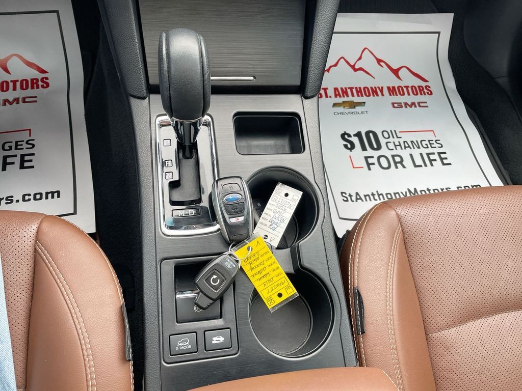Standard Model,Remote Engine Starter - Push Start,Crystal White Pearl Body Side Molding,Auto-Dimming Exterior Mirror with Approach Light,Splash Guards,Rear Seatback Protector,Apple CarPlay/Android Auto smart device mirroring,EyeSight Pre-Collision Braking forward collision mitigation,Rear mounted camera,EyeSight Lane Keep Assist,Rear collision mitigation,Adaptive cruise control,Brake assist system,Aha selective service internet access,Cruise control with steering wheel mounted controls,Power liftgate rear cargo door,Integrated navigation system with voice activation,Keyfob remote start,Heated steering wheel,Heated driver and front passenger seats,Heated rear seats,Leather front seat upholstery,Primary monitor touchscreen,First-row sliding and tilting glass sunroof with express open/close activation sunshade,Driver seat power reclining, lumbar support, cushion tilt, fore/aft control and height adjustable control,Full-time AWD,3.6L H-6 DOHC, variable valve control, regular unleaded, engine with 256HP,3.6L H-6 DOHC,Smart key with hands-free access and push button start,Push-button,Bluetooth wireless audio streaming,Blind Spot Detection,Traffic sign recognition,Dual-zone front climate control,Voice-activated climate control,Directionally adaptive headlights,Auto high-beam headlights,Immobilizer,Harman/kardon speakers,SiriusXM Traffic real-time traffic,STARLINK vehicle integrated emergency SOS system,Bluetooth handsfree wireless device connectivity,External memory control,Pandora internet radio capability,Electronic stability control system,Hill descent control,Hill start assist,Leather rear seat upholstery,Heated rear wiper park,Automatic climate control,LED daytime running lights,Auto-leveling headlights,LED brake lights,3 12V power outlets,Front fog lights,Leather and chrome steering wheel