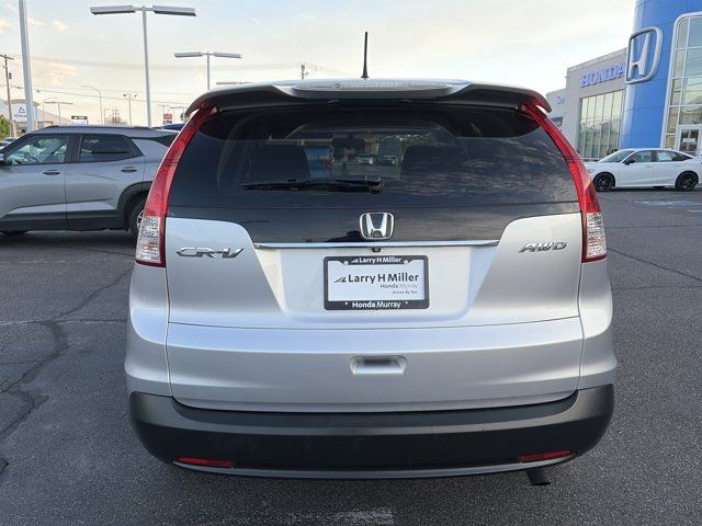 AWD. Recent Arrival!Clean CARFAX.Odometer is 20502 miles below market average!Larry H. Miller Honda Murray offers this 2014 Alabaster Silver Metallic Honda CR-V EX AWD It is loaded with many standard and optional features including: AWD, 17 10-Spoke Alloy Wheels, 4-Wheel Disc Brakes, 4.44 Axle Ratio, 6 Speakers, ABS brakes, Air Conditioning, Alloy wheels, AM/FM radio, AM/FM/CD Audio System w/6 Speakers, Brake assist, Bumpers: body-color, CD player, Cloth Seat Trim, Compass, Delay-off headlights, Driver door bin, Driver vanity mirror, Driver's Seat Mounted Armrest, Dual front impact airbags, Dual front side impact airbags, Electronic Stability Control, Exterior Parking Camera Rear, Four wheel independent suspension, Front anti-roll bar, Front Bucket Seats, Front fog lights, Front reading lights, Illuminated entry, Low tire pressure warning, Occupant sensing airbag, Outside temperature display, Overhead airbag, Overhead console, Panic alarm, Passenger door bin, Passenger seat mounted armrest, Passenger vanity mirror, Power door mirrors, Power moonroof, Power steering, Power windows, Radio data system, Rear anti-roll bar, Rear seat center armrest, Rear window defroster, Rear window wiper, Remote keyless entry, Security system, Speed control, Speed-sensing steering, Speed-Sensitive Wipers, Split folding rear seat, Steering wheel mounted audio controls, Tachometer, Telescoping steering wheel, Tilt steering wheel, Traction control, Trip computer, and Variably intermittent wipers.Awards:* 2014 KBB.com Brand Image AwardsKelley Blue Book Brand Image Awards are based on the Brand Watch(tm) study from Kelley Blue Book Market Intelligence. Award calculated among non-luxury shoppers. For more information, visit www.kbb.com. Kelley Blue Book is a registered trademark of Kelley Blue Book Co., Inc.