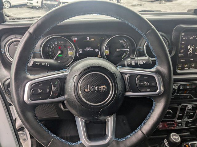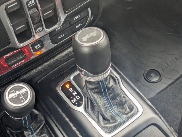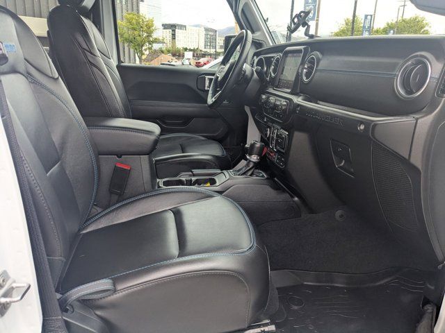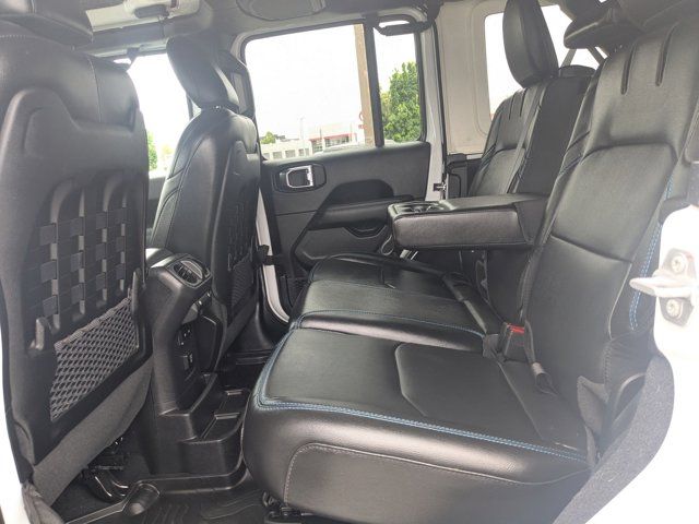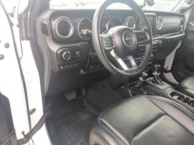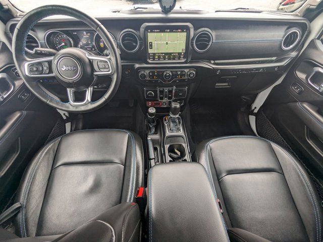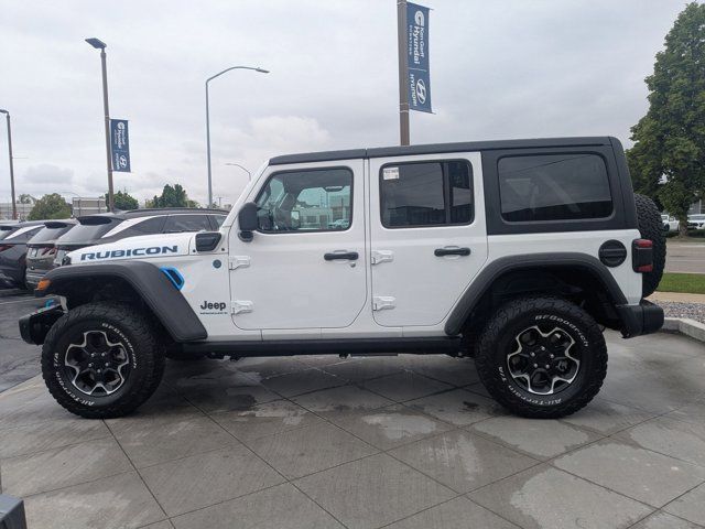 TRANSMISSION: 8-SPEED AUTO 8P75PH PHEV (STD),TRAILER TOW & AUX SWITCH GROUP -inc: Class II Receiver Hitch 700 Amp Maintenance Free Battery 7 & 4 Pin Wiring Harness Auxiliary Switches,BRIGHT WHITE CLEARCOAT,BLACK LEATHER TRIMMED BUCKET SEATS -inc: Premium Wrapped I/P Bezels Leather Wrapped Park Brake Handle Leather Wrapped Shift Knob Premium Door Trim Panel,QUICK ORDER PACKAGE 29V RUBICON -inc: Engine: 2.0L I4 DOHC DI Turbo PHEV Transmission: 8-Speed Auto 8P75PH PHEV,ENGINE: 2.0L I4 DOHC DI TURBO PHEV (STD),JEEP TRAIL RATED KIT,COLD WEATHER GROUP -inc: Heated Steering Wheel Remote Start System Heated Front Seats,MOPAR GRAB HANDLE KIT -inc: Rear MOPAR Grab Handles Front MOPAR Grab Handles,MOPAR ALL-WEATHER FLOOR MATS,BLACK 3-PIECE HARD TOP -inc: Freedom Panel Storage Bag Rear Window Defroster Rear Window Wiper/Washer,STEEL BUMPER GROUP -inc: Steel Front Bumper Steel Rear Bumper,FRONT LICENSE PLATE BRACKET,TIRES: LT285/70R17C OWL OFF-ROAD,Turbocharged,Four Wheel Drive,Locking/Limited Slip Differential,Locking/Limited Slip Differential,Power Steering,ABS,4-Wheel Disc Brakes,Brake Assist,Locking/Limited Slip Differential,Brake Actuated Limited Slip Differential,Lithium Ion Traction Battery,Aluminum Wheels,Tires - Front All-Terrain,Tires - Rear All-Terrain,Conventional Spare Tire,Tow Hooks,Tow Hooks,Heated Mirrors,Power Mirror(s),Privacy Glass,Intermittent Wipers,Variable Speed Intermittent Wipers,Rollover Protection Bars,Convertible Soft Top,Power Door Locks,Daytime Running Lights,Automatic Headlights,LED Headlights,Fog Lamps,AM/FM Stereo,Navigation System,Satellite Radio,Bluetooth Connection,HD Radio,Requires Subscription,Premium Sound System,MP3 Capability,Steering Wheel Audio Controls,Auxiliary Audio Input,Premium Sound System,Bluetooth Connection,Driver Adjustable Lumbar,Driver Adjustable Lumbar,Pass-Through Rear Seat,Rear Bench Seat,Adjustable Steering Wheel,Trip Computer,Power Windows,WiFi Hotspot,Keyless Entry,Power Door Locks,Keyless Start,Keyless Entry,Power Door Locks,Universal Garage Door Opener,Cruise Control,Climate Control,Multi-Zone A/C,A/C,Bucket Seats,Auto-Dimming Rearview Mirror,Driver Vanity Mirror,Passenger Vanity Mirror,Driver Illuminated Vanity Mirror,Passenger Illuminated Visor Mirror,Floor Mats,Navigation System,Smart Device Integration,Power Windows,Power Door Locks,Trip Computer,Security System,Immobilizer,Traction Control,Stability Control,Traction Control,Front Side Air Bag,Telematics,Requires Subscription,Tire Pressure Monitor,Driver Air Bag,Passenger Air Bag,Passenger Air Bag Sensor,Child Safety Locks,Back-Up Camera