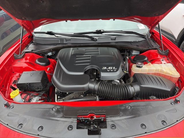 Inside, the Charger SXT provides a spacious cabin with seating for five and 104.7-cubic feet of passenger volume, ensuring comfort on long drives. The trunk offers 16.5-cubic feet of cargo space, making it practical for daily use or weekend travel. Standard tech includes the intuitive Uconnect infotainment system with Apple CarPlay and Android Auto, giving drivers seamless smartphone integration.