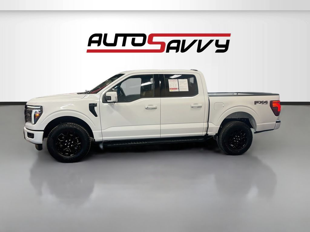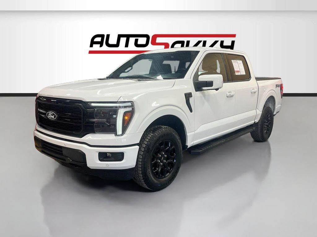 Experience the power and luxury of the 2025 Ford F-150 LARIAT 4WD SuperCrew, now available at AutoSavvy Woods Cross. This stunning Oxford White pickup boasts a low mileage of just 6,336 miles, making it a rare find for those seeking a nearly new vehicle. Under the hood, the robust 5.0L V-8 engine delivers an impressive 400 horsepower, paired with a 10-speed automatic transmission for seamless performance. The F-150 LARIAT is loaded with premium features, including leatherette-trimmed ActiveX bucket seats, dual-zone climate control, and a state-of-the-art B&O Sound System by Bang & Olufsen. Stay connected with SYNC 4 technology, featuring Apple CarPlay and Android Auto, while enjoying the convenience of keyless entry, adaptive cruise control, and a 360-degree camera system for enhanced safety. The current status of the title is branded, reflecting AutoSavvy's dedication to transparency and quality. As a Savvy Certified vehicle, this Ford F-150 has undergone a meticulous inspection to ensure it meets the highest standards of performance and safety. Benefit from the peace of mind offered by our 4-month/4,500 Mile Warranty, safeguarding your investment and ensuring reliability. Visit AutoSavvy Woods Cross today to experience the perfect blend of innovation, comfort, and dependability that the 2025 Ford F-150 LARIAT offers. Discover the AutoSavvy difference, where every vehicle is crafted to exceed your expectations.
