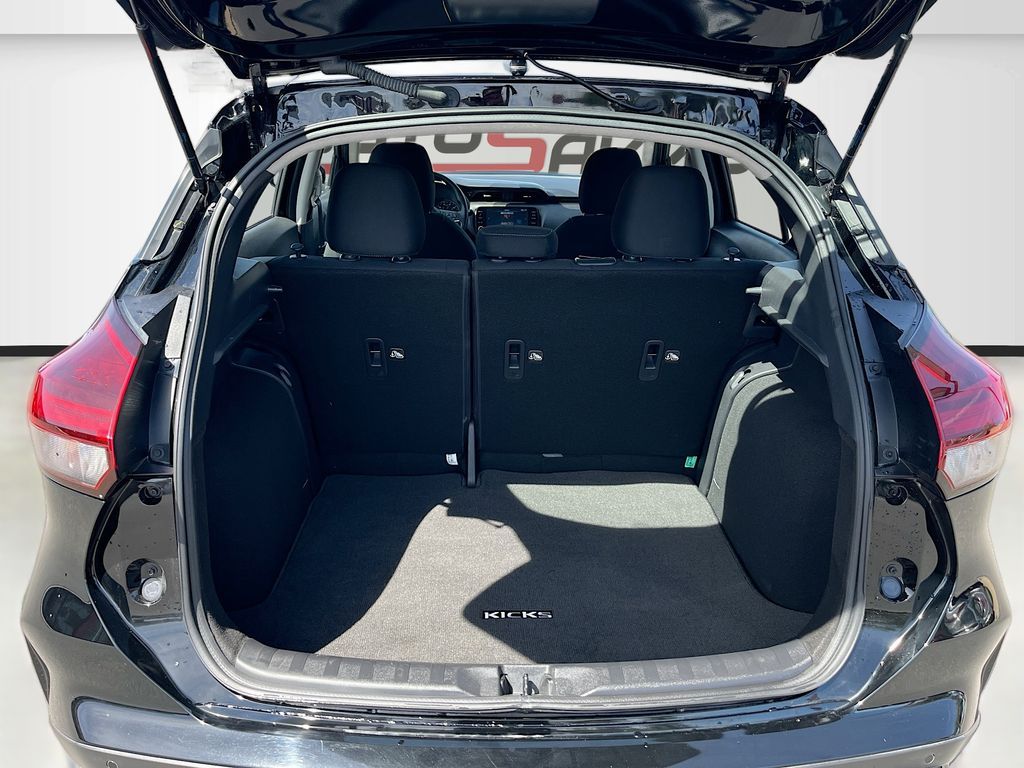 Discover the 2023 Nissan Kicks SV Xtronic CVT at AutoSavvy Las Vegas, a sleek and efficient sport utility vehicle with only 12,556 miles. This Super Black beauty is powered by a 1.6L I-4 engine with 122 horsepower, delivering an impressive 36 MPG on the highway and 31 MPG in the city. The Kicks SV is packed with modern features, including Apple CarPlay, Android Auto, and a user-friendly 8-inch touchscreen for seamless connectivity. Enjoy the convenience of keyless entry and start, adaptive cruise control, and a rearview camera for added safety. The interior boasts comfortable charcoal cloth upholstery, while the exterior is enhanced with 17-inch alloy wheels and a stylish black grille with chrome accents. The current status of the title is branded, reflecting AutoSavvy's commitment to transparency and quality assurance. This vehicle is Savvy Certified, offering peace of mind with a 4-month/4,500-mile warranty. With its low mileage and comprehensive array of features, the 2023 Nissan Kicks SV Xtronic CVT is an exceptional choice for those seeking style, efficiency, and modern technology. Visit AutoSavvy Las Vegas today to explore this outstanding vehicle and experience the perfect fusion of practicality and innovation.