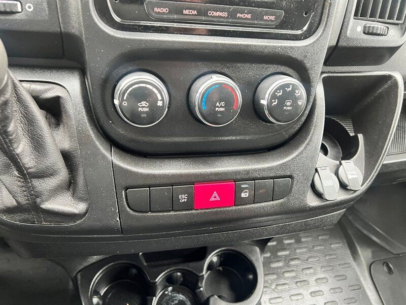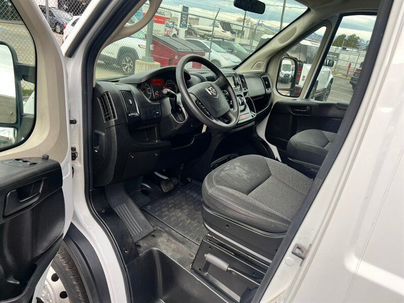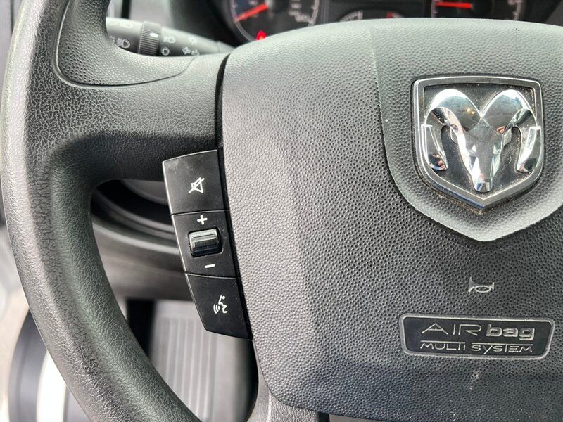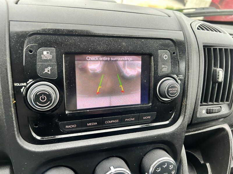 INSTALLED FEATURES: Air filtration, Front air conditioning, Front air conditioning zones: single, Airbag deactivation: occupant sensing passenger, Front airbags: dual, Side airbags: front, Side curtain airbags: front, Antenna type: mast, Auxiliary audio input: Bluetooth / jack / USB, Radio: AM/FM / touch screen display / voice operated, Total speakers: 4, ABS: 4-wheel, Braking assist, Electronic brakeforce distribution, Front brake type: ventilated disc, Power brakes, Rear brake type: ventilated disc, Armrests: drivers seat, Floor material: rubber/vinyl, Shift knob trim: urethane, Steering wheel trim: urethane, Assist handle: front, Cargo area light, Cupholders: front, Multi-function remote: keyless entry / trunk release, One-touch windows: 2, Power outlet(s): 12V front, Power steering, Reading lights: front, Rearview mirror: manual day/night, Steering wheel: telescopic, Steering wheel mounted controls: audio / phone, Storage: cargo tie-down anchors and hooks / door pockets / in dash, Sun visors, Body side moldings: black, Door handle color: black, Front bumper color: black, Grille color: black / chrome surround, Mirror color: black, Rear bumper color: black, Rear trunk/liftgate: barn, Side door type: passenger-side manual sliding, Window trim: black, Infotainment: Uconnect, Infotainment screen size: 5 in., Clock, Digital odometer, External temperature display, Fuel economy display: MPG / range, Gauge: tachometer, Trip odometer, Warnings and reminders: low battery / low fuel level / low oil level / maintenance due, Clearance lights, Headlights: auto delay off / halogen, Side mirror adjustments: manual / manual folding, Side mirrors: integrated turn signals, Alternator: 180 amps, Auxiliary oil cooler, Auxiliary transmission fluid cooler, Battery rating: 800 CCA, Battery saver, Emissions: 50 state, OEM roof height: high, Camera system: rearview, Crumple zones: front, Rearview monitor: in dash, Emergency locking retractors: front, Front seatbelts: 3-point, Seatbelt force limiters: front, Seatbelt pretensioners: front, Seatbelt warning sensor: front, Driver seat manual adjustments: 4 / reclining, Front headrests: 2 / adjustable, Front seat type: bucket, Passenger seat manual adjustments: 4 / reclining, Upholstery: cloth, Anti-theft system: vehicle immobilizer, Power door locks: auto-locking, Hill holder control, Roll stability control, Stability control, Traction control, Trailer stability control, Front shock type: gas, Front spring type: coil, Front stabilizer bar, Front struts: MacPherson, Front suspension classification: independent, Front suspension type: lower control arms, Rear shock type: gas, Rear spring type: leaf, Rear suspension classification: solid axle, Rear suspension type: multi-leaf, Driver assistance app: roadside assistance, Hands-free phone call integration: voice operated, Wireless data link: Bluetooth, Spare tire mount location: underbody, Spare tire size: full-size, Spare wheel type: steel, Tire Pressure Monitoring System, Wheel covers: partial, Wheels: steel, Front wipers: variable intermittent, Power windows, Solar-tinted glass