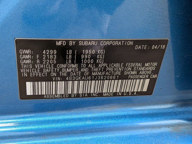Recent Arrival! 17 Alloy Wheels, 4-Wheel Disc Brakes, 6 Speakers, ABS brakes, Air Conditioning, All-Weather Floor Liners, Alloy wheels, AM/FM radio: SiriusXM, Apple CarPlay/Android Auto, Auto High-beam Headlights, Auto-Dimming Mirror w/Compass & HomeLink, Automatic temperature control, Blind Spot Detection, Brake assist, Bumpers: body-color, Cargo Tray, CD player, Delay-off headlights, Driver door bin, Driver vanity mirror, Dual front impact airbags, Dual front side impact airbags, Electronic Stability Control, Emergency communication system: STARLINK, Exterior Auto Dimming Mirror w/Approach Light, Exterior Parking Camera Rear, EyeSight & Moonroof & BSD & RCTA & Navigation Sys, EyeSight System, Four wheel independent suspension, Front anti-roll bar, Front Bucket Seats, Front Center Armrest, Front fog lights, Front reading lights, Fully automatic headlights, harman/kardon Amplifier & Speakers, Heated door mirrors, Heated Front Bucket Seats, Heated front seats, Illuminated entry, Knee airbag, Leather-Trimmed Upholstery, Low tire pressure warning, Navigation System, Occupant sensing airbag, Outside temperature display, Overhead airbag, Panic alarm, Passenger door bin, Passenger vanity mirror, Popular Package #1, Power door mirrors, Power driver seat, Power Moonroof, Power steering, Power windows, Radio data system, Radio: Subaru Starlink 8.0 Multimedia Nav System, Radio: Subaru Starlink 8.0 Multimedia Plus System, Rear anti-roll bar, Rear Bumper Applique, Rear Cross Traffic Alert, Rear seat center armrest, Rear window defroster, Remote keyless entry, Security system, Speed control, Speed-sensing steering, Split folding rear seat, Steering wheel mounted audio controls, Tachometer, Telescoping steering wheel, Tilt steering wheel, Traction control, Trip computer, Turn signal indicator mirrors, Variably intermittent wipers.Island Blue Pearl AWD 28/38 City/Highway MPG Awards: * ALG Residual Value Awards, Residual Value Awards * 2018 KBB.com 10 Most Awarded Cars * 2018 KBB.com 10 Coolest New Cars Under $20,000 * 2018 KBB.com 10 Best All-Wheel-Drive Vehicles Under $25,000 * 2018 KBB.com Best Resale Value Awards * 2018 KBB.com Brand Image Awards * 2018 KBB.com 10 Most Awarded Brands