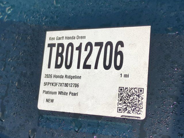 Ken Garff Honda is pleased to offer this great 2026 Honda Ridgeline TrailSport in Platinum White Pearl. AWD TrailSport 9-Speed AutomaticLeather, 4-Wheel Disc Brakes, 4.33 Axle Ratio, 7 Speakers, ABS brakes, Air Conditioning, Alloy wheels, AM/FM radio: SiriusXM, Auto-dimming Rear-View mirror, Automatic temperature control, Blind Spot Information (BSI) System warning, Bluetooth® Hands-Free Link, Brake assist, Bumpers: body-color, Compass, Delay-off headlights, Driver door bin, Driver vanity mirror, Driver's Seat Mounted Armrest, Dual front impact airbags, Dual front side impact airbags, Electronic Stability Control, Emergency communication system: HondaLink Assist, Exterior Parking Camera Rear, Four wheel independent suspension, Front anti-roll bar, Front Bucket Seats, Front dual zone A/C, Front fog lights, Front reading lights, Fully automatic headlights, Garage door transmitter: HomeLink, Heated door mirrors, Heated Front Bucket Seats, Heated front seats, Heated steering wheel, Honda Satellite-Linked Navigation System, Illuminated entry, Leather Seat Trim, Leather steering wheel, Low tire pressure warning, Memory seat, Navigation system: Honda Satellite-Linked Navigation System, Occupant sensing airbag, Outside temperature display, Overhead airbag, Overhead console, Panic alarm, Passenger door bin, Passenger seat mounted armrest, Passenger vanity mirror, Power door mirrors, Power driver seat, Power moonroof, Power passenger seat, Power steering, Power windows, Radio data system, Radio: 215-Watt Audio System with 7 Speakers, Rear air conditioning, Rear anti-roll bar, Rear reading lights, Rear seat center armrest, Rear step bumper, Rear window defroster, Remote keyless entry, Security system, SiriusXM, Speed control, Speed-sensing steering, Split folding rear seat, Steering wheel mounted audio controls, Tachometer, Telescoping steering wheel, Tilt steering wheel, Traction control, Trip computer, Turn signal indicator mirrors, Variably intermittent wipers, Wheels: 18 HPD Black Alloy, Leather. Fuel Economy estimates are based on EPA mileage ratings. Actual mileage will vary depending on driving conditions, habits, vehicle maintenance, and other factors. Advertised Prices do not include any dealer installed options and advertised prices exclude leases.