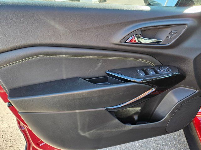 MIRRORS OUTSIDE HEATED POWER-ADJUSTABLE MANUAL-FOLDING,AUDIO SYSTEM 11 DIAGONAL HD COLOR TOUCHSCREEN AM/FM stereo. Additional features for compatible phones include: Bluetooth audio streaming for 2 active devices voice command pass-through to phone wireless Apple CarPlay and wireless Android Auto capable (STD),STEERING WHEEL HEATED,SEATS HEATED DRIVER AND FRONT PASSENGER,LPO BLACK WHEEL CENTER CAPS with Black bowtie,DRIVER CONFIDENCE PACKAGE includes (UD7) Rear Park Assist (UFG) Rear Cross Traffic Alert and (UKC) Lane Change Alert with Side Blind Zone Alert (Also includes (KSG) Adaptive Cruise Control.,TRANSMISSION 6-SPEED AUTOMATIC (STD),WHEELS 17 (43.2 CM) GRAY-PAINTED MACHINED ALUMINUM (STD),LPO BLACK NAMEPLATE,KEYLESS OPEN FRONT DOORS includes extended range Remote Keyless Entry; passive entry system can still be programmed to unlock all doors at once with one press or with two presses of the front door buttons,REAR CROSS TRAFFIC ALERT,LANE CHANGE ALERT WITH SIDE BLIND ZONE ALERT,REAR PARK ASSIST,ADAPTIVE CRUISE CONTROL,LT PREFERRED EQUIPMENT GROUP Includes Standard Equipment,LT CONVENIENCE PACKAGE includes (AVJ) Keyless Open (KA1) heated driver and front passenger seats (UVD) heated steering wheel) (N5F) wrapped steering wheel and (DLF) outside heated power-adjustable mirrors,STEERING WHEEL WRAPPED,APEX RED,LPO BLACKOUT PACKAGE includes (SFZ) front and rear Black bowtie emblems LPO (RIN) Black nameplate LPO and (VWD/VW9) wheel center caps with Black bowtie LPO (Includes (VW9) Black wheel center caps with Black bowtie LPO.),ENGINE ECOTEC 1.2L TURBO DOHC DI WITH VARIABLE VALVE TIMING (VVT) E85-compatible (137 hp [102 kW] @ 5000 rpm 162 lb-ft torque [219 N-m] @ 2500 rpm) (STD),JET BLACK WITH YELLOW ACCENTS CLOTH/EVOTEX SEAT TRIM,LPO BLACK BOWTIE EMBLEMS FRONT AND REAR,AXLE 3.50 FINAL DRIVE RATIO,SEATS FRONT BUCKET (STD),Lane Departure Warning,Lane Keeping Assist,Front Collision Mitigation,Front Collision Warning,Automatic Highbeams,Turbocharged,Keyless Start,Front Wheel Drive,Power Steering,ABS,4-Wheel Disc Brakes,Aluminum Wheels,Tires - Front All-Season,Tires - Rear All-Season,Temporary Spare Tire,Rear Spoiler,Automatic Headlights,Automatic Highbeams,Power Mirror(s),Privacy Glass,Intermittent Wipers,Variable Speed Intermittent Wipers,Tow Hooks,AM/FM Stereo,Bluetooth Connection,Smart Device Integration,Satellite Radio,Requires Subscription,WiFi Hotspot,Bluetooth Connection,Smart Device Integration,Bucket Seats,Cloth Seats,Premium Synthetic Seats,Pass-Through Rear Seat,Rear Bench Seat,Floor Mats,Floor Mats,Adjustable Steering Wheel,Cruise Control,Steering Wheel Audio Controls,Front Collision Warning,Power Windows,Power Windows,Power Windows,Power Door Locks,Remote Engine Start,Cruise Control,Security System,Immobilizer,Security System,Climate Control,A/C,Rear Defrost,Driver Vanity Mirror,Passenger Vanity Mirror,Cargo Shade,Front Collision Mitigation,Front Collision Warning,Front Collision Mitigation,Traction Control,Stability Control,Daytime Running Lights,Driver Air Bag,Passenger Air Bag,Front Side Air Bag,Rear Side Air Bag,Front Head Air Bag,Rear Head Air Bag,Passenger Air Bag Sensor,Telematics,Requires Subscription,Back-Up Camera,Front Collision Warning,Lane Departure Warning,Lane Keeping Assist,Driver Restriction Features,Tire Pressure Monitor,Tire Pressure Monitor,Telematics,Requires Subscription