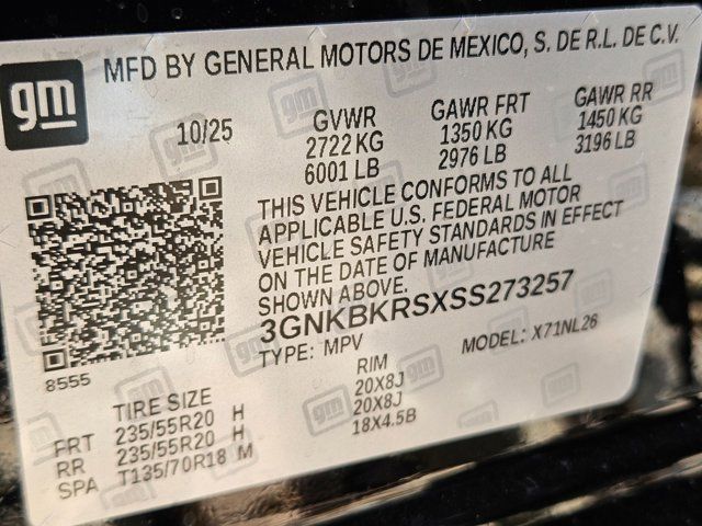 ADAPTIVE CRUISE CONTROL,SUNROOF POWER PANORAMIC TILT-SLIDING WITH POWER SUNSHADE,AXLE 3.49 FINAL DRIVE RATIO,RS PREFERRED EQUIPMENT GROUP Includes Standard Equipment,DRIVER CONFIDENCE II PACKAGE includes (UV2) HD Surround Vision (DRZ) Rear Camera Mirror (KSG) Adaptive Cruise Control (UGN) Enhanced Automatic Emergency Braking [replaces (UHY) Automatic Emergency Braking] and (HS1) Safety Alert Seat,SEATS HEATED REAR OUTBOARD SEATING POSITIONS,REAR CAMERA MIRROR includes (CWA) Rear Camera Mirror Washer,TRANSMISSION 9-SPEED AUTOMATIC ELECTRONICALLY-CONTROLLED with overdrive includes Driver Shift Control (STD),SAFETY ALERT SEAT,ENHANCED AUTOMATIC EMERGENCY BRAKING,REAR CAMERA MIRROR WASHER,WHEELS 20 (50.8 CM) GLOSS BLACK ALUMINUM,JET BLACK WITH RED ACCENTS PERFORATED LEATHER-APPOINTED SEAT TRIM,STEERING COLUMN POWER TILT AND TELESCOPING,BLACK,AUDIO SYSTEM CHEVROLET INFOTAINMENT 3 PREMIUM SYSTEM with connected Navigation 10.2 diagonal HD color touchscreen AM/FM stereo Bluetooth audio streaming for 2 active devices Apple CarPlay and Android Auto capable enhanced voice recognition additional memory for in-vehicle apps cloud connected personalization for select infotainment and vehicle settings. Subscription required for enhanced and connected services after trial period. (STD),ENHANCED CONVENIENCE PACKAGE includes (AAB) memory settings (KA6) rear outboard heated seats (KU9) driver and front passenger ventilated seats and (N38) power tilt and telescoping steering column,SEATS FRONT BUCKET (STD),HD SURROUND VISION,ENGINE 3.6L V6 SIDI DOHC WITH VARIABLE VALVE TIMING (VVT) and Active Fuel Management with Stop/Start (308 hp [229 kW] @ 6700 rpm 270 lb-ft of torque [366 N-m] @ 5000 rpm) (STD),MEMORY SETTINGS recalls 2 driver presets for 8-way power seat outside mirrors and power tilt and telescopic steering column,SEATS VENTILATED DRIVER AND FRONT PASSENGER,ALTERNATOR 170 AMPS,TIRES P235/55R20 ALL-SEASON BLACKWALL (STD),Lane Departure Warning,Lane Keeping Assist,Front Collision Mitigation,Front Collision Warning,Automatic Highbeams,All Wheel Drive,All Wheel Drive,ABS,4-Wheel Disc Brakes,Aluminum Wheels,Tires - Front Performance,Tires - Rear Performance,Conventional Spare Tire,Temporary Spare Tire,Automatic Highbeams,Automatic Headlights,Heated Mirrors,Power Mirror(s),Integrated Turn Signal Mirrors,Privacy Glass,Intermittent Wipers,Variable Speed Intermittent Wipers,Intermittent Wipers,Remote Trunk Release,Power Liftgate,Hands-Free Liftgate,AM/FM Stereo,Navigation System,Bluetooth Connection,Smart Device Integration,Premium Sound System,Requires Subscription,Bluetooth Connection,WiFi Hotspot,Bluetooth Connection,Smart Device Integration,Bucket Seats,Leather Seats,Heated Front Seat(s),Power Driver Seat,Power Passenger Seat,Driver Adjustable Lumbar,MP3 Capability,Auxiliary Audio Input,MP3 Capability,Auxiliary Audio Input,Floor Mats,Heated Steering Wheel,Adjustable Steering Wheel,Power Windows,Power Door Locks,Keyless Entry,Power Door Locks,Keyless Start,Remote Engine Start,Universal Garage Door Opener,Cruise Control,Security System,Climate Control,Multi-Zone A/C,A/C,Rear Defrost,Auto-Dimming Rearview Mirror,Driver Vanity Mirror,Passenger Vanity Mirror,Driver Illuminated Vanity Mirror,Passenger Illuminated Visor Mirror,Front Collision Mitigation,Front Collision Warning,Traction Control,Stability Control,Daytime Running Lights,Driver Air Bag,Passenger Air Bag,Front Head Air Bag,Rear Head Air Bag,Knee Air Bag,Passenger Air Bag Sensor,Telematics,Requires Subscription,Navigation System,Telematics,Requires Subscription,Back-Up Camera,Rear Parking Aid,Cross-Traffic Alert,Blind Spot Monitor,Lane Departure Warning,Lane Keeping Assist,Front Collision Mitigation,Front Collision Warning,Front Collision Warning,Child Safety Locks,Driver Restriction Features,Tire Pressure Monitor,Tire Pressure Monitor