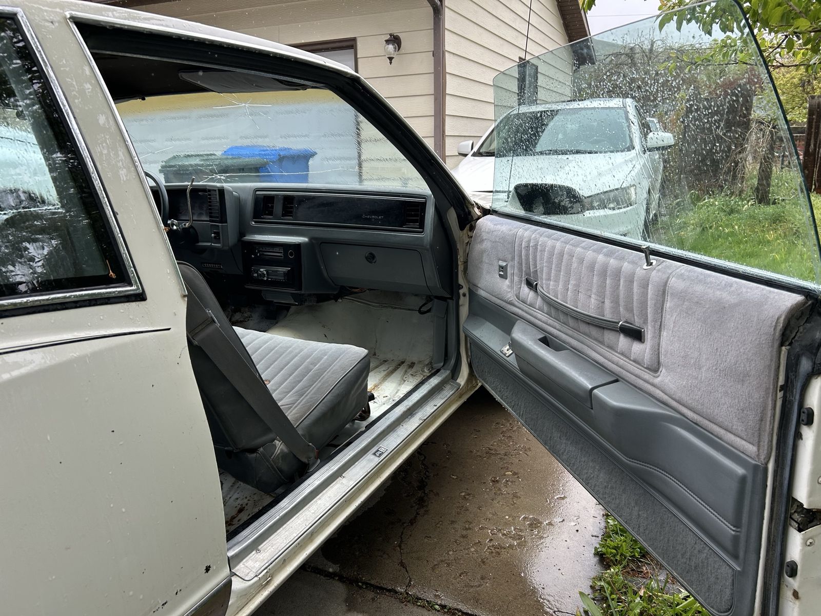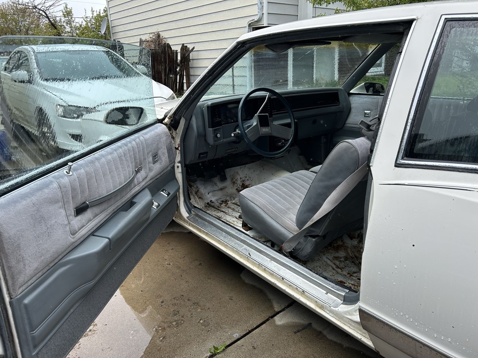Here’s a great Luxury Sport project, it hasn’t been on the road for 20 years so it’s going to need a little work to make it safe to drive. 5.0 v8 engine , over drive 4 speed transmission. Runs and drives ( when the carburetor wants to cooperate). I included a video of the engine running. There was no carpet in the car when I bought it. Has a