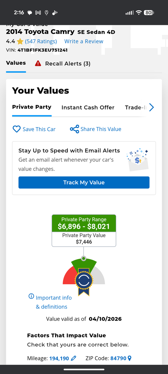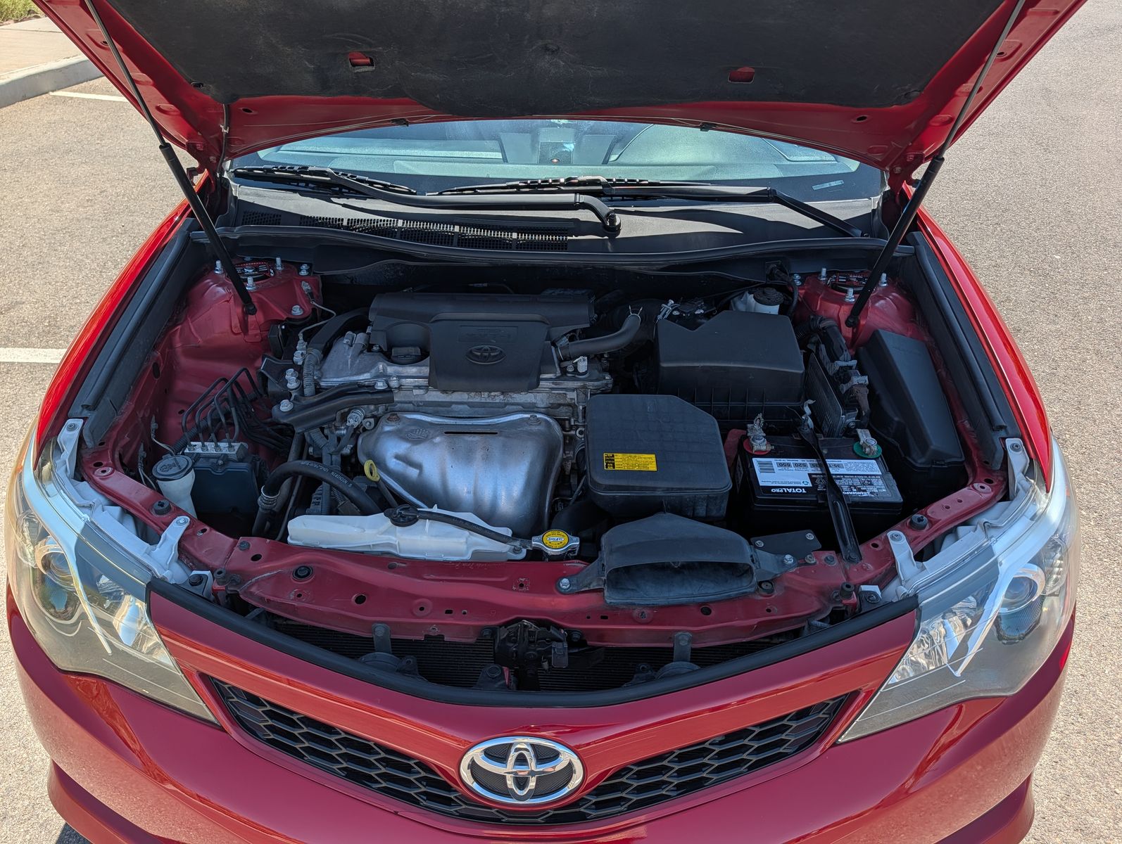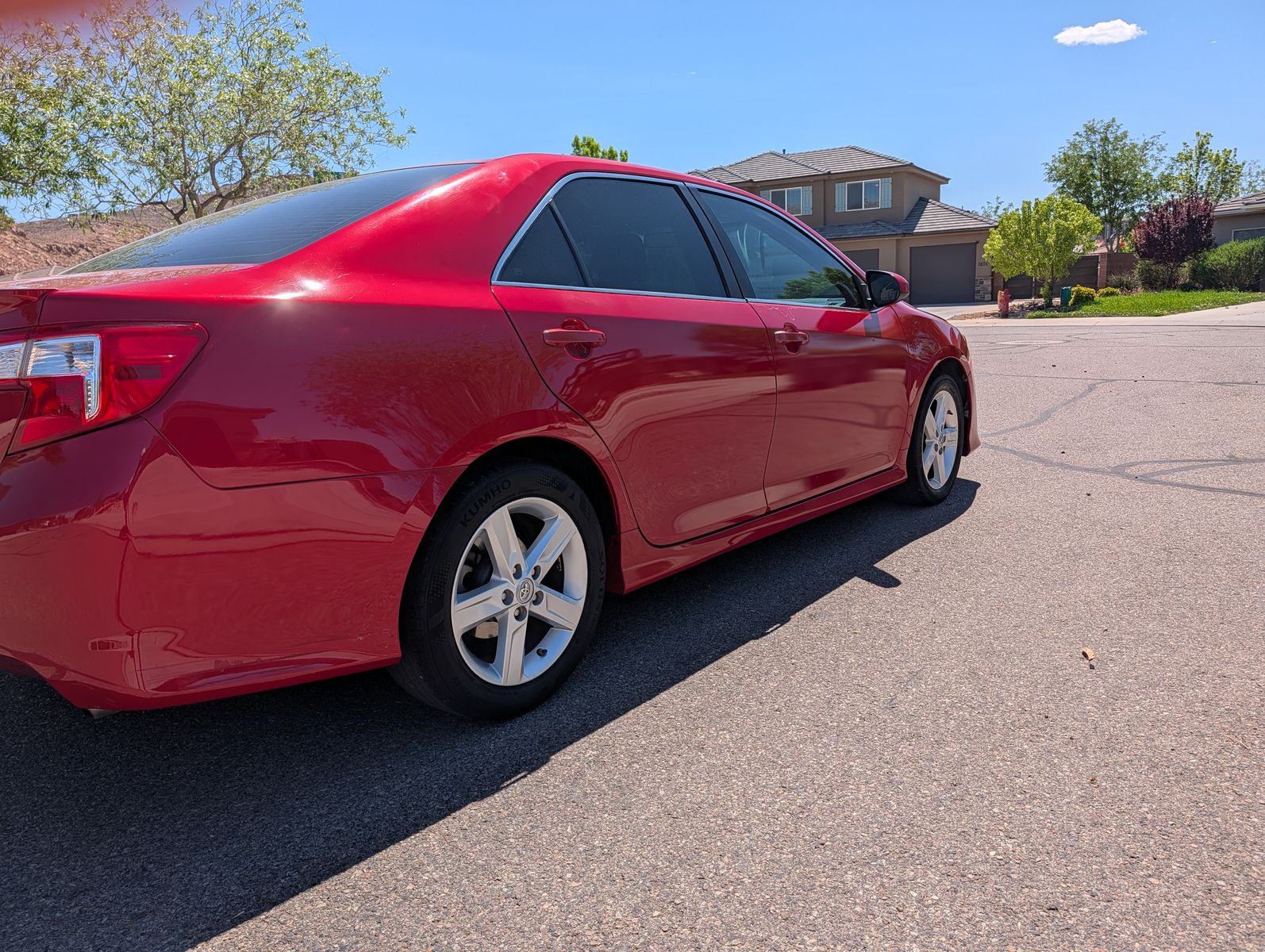 This 2014 Camry SE is known for its long-lasting performance, low maintenance costs, and excellent safety rating. Whether you need a reliable daily commuter or a comfortable family car, this Camry is a perfect choice for anyone in need of a solid daily driver. The full synthetic oil and transmission fluid was just changed, and all the maintenance is up to date including new front shocks and struts. The non-smoking interior is very clean with no stains or tears, and it has been detailed. The tires are worn with some life left, but I do have an extra set of slightly used tires I can include in the sale. It is a used car so there is scratches and dings, and the paint on the top of the car is faded hence the price is at the bottom of the private party value. It runs strong and drives smoothly with no known mechanical issues. This is a practical, low-cost car that will last for years. Clean title in hand and it is ready for its next owner. Call, text or message for more info or a test drive.