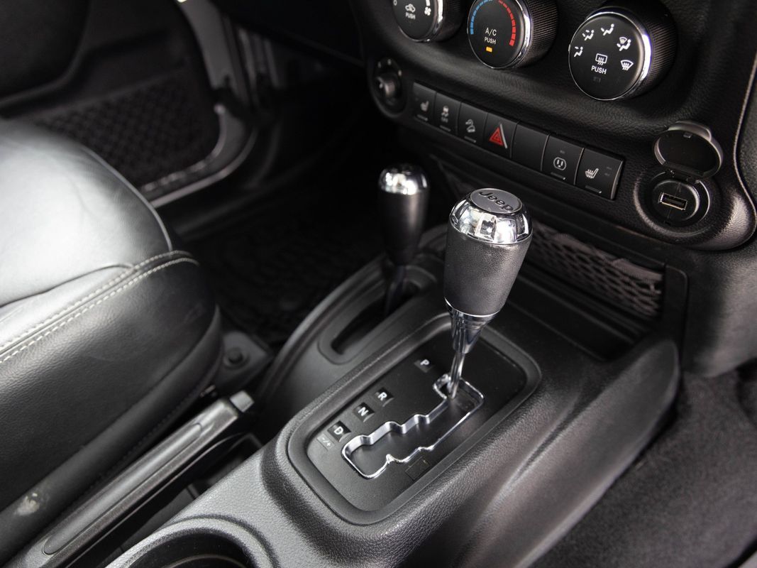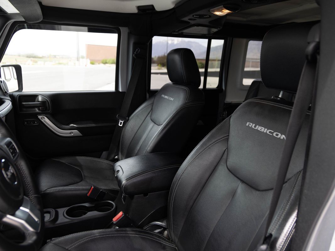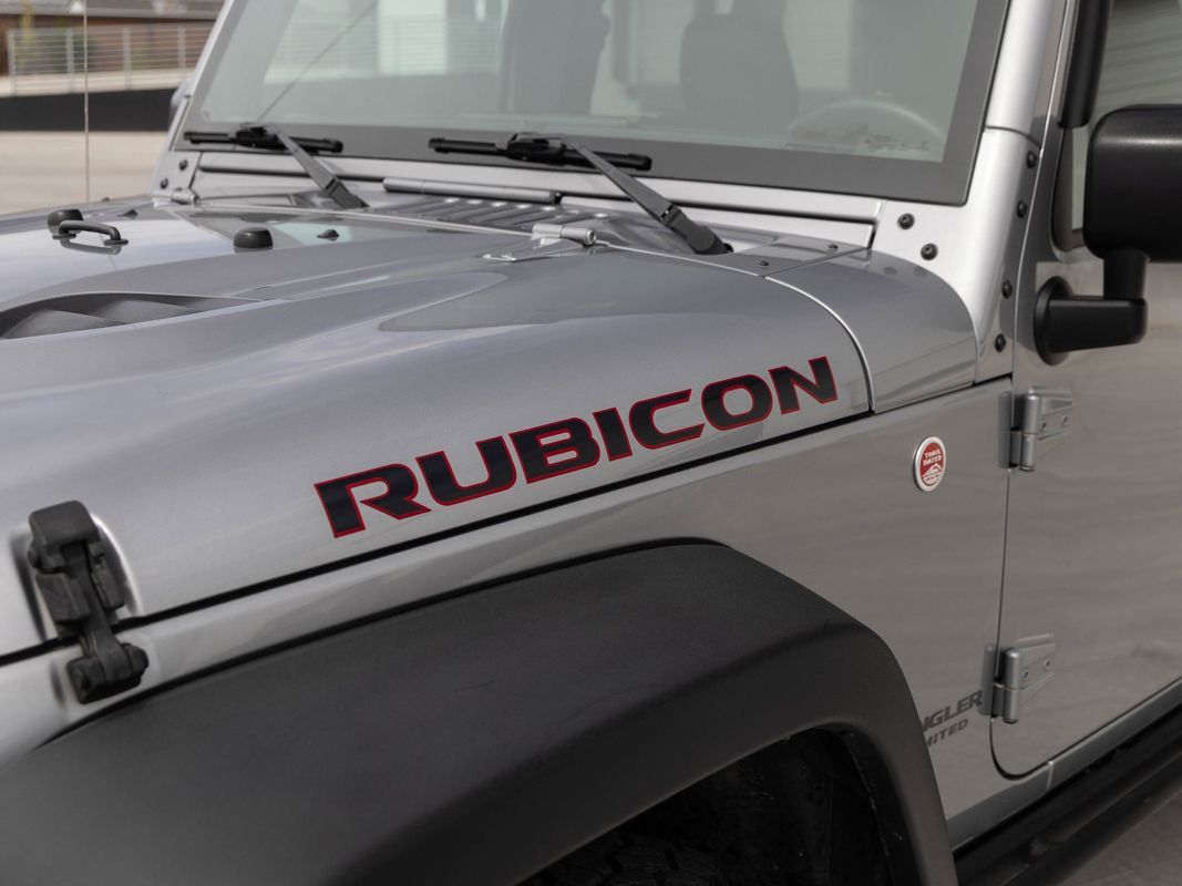2016 JEEP WRANGLER UNLIMITED RUBICON HARD ROCK 4X4 — Billet Silver on Black leather interior. The Hard Rock Edition takes the already capable Rubicon and adds a factory package that would cost thousands more to replicate aftermarket. Over a standard Rubicon, you get: black steel front and rear bumpers (winch-ready up front), extended powder-coated rock rails that actually stand on, the signature vented power dome hood for heat reduction, 4.10 axle gears, and black Hard Rock aluminum wheels — all from the factory. Inside, the Hard Rock makes premium features standard: Alpine 9-speaker audio system, heated black leather seats, and the Connectivity Group with Bluetooth and EVIC. Red tow hooks front and rear round out the Hard Rock's signature look. Under all of it, you still have everything the Rubicon is known for — Rock-Trac 4WD with 4:1 low range, front and rear Tru-Lok electronic locking differentials, disconnecting front sway bar, and Dana 44 axles both ends. Has an aftermarket touchscreen stereo with a backup camera. One of the most capable factory Wranglers ever built, with the looks and interior upgrades to match.