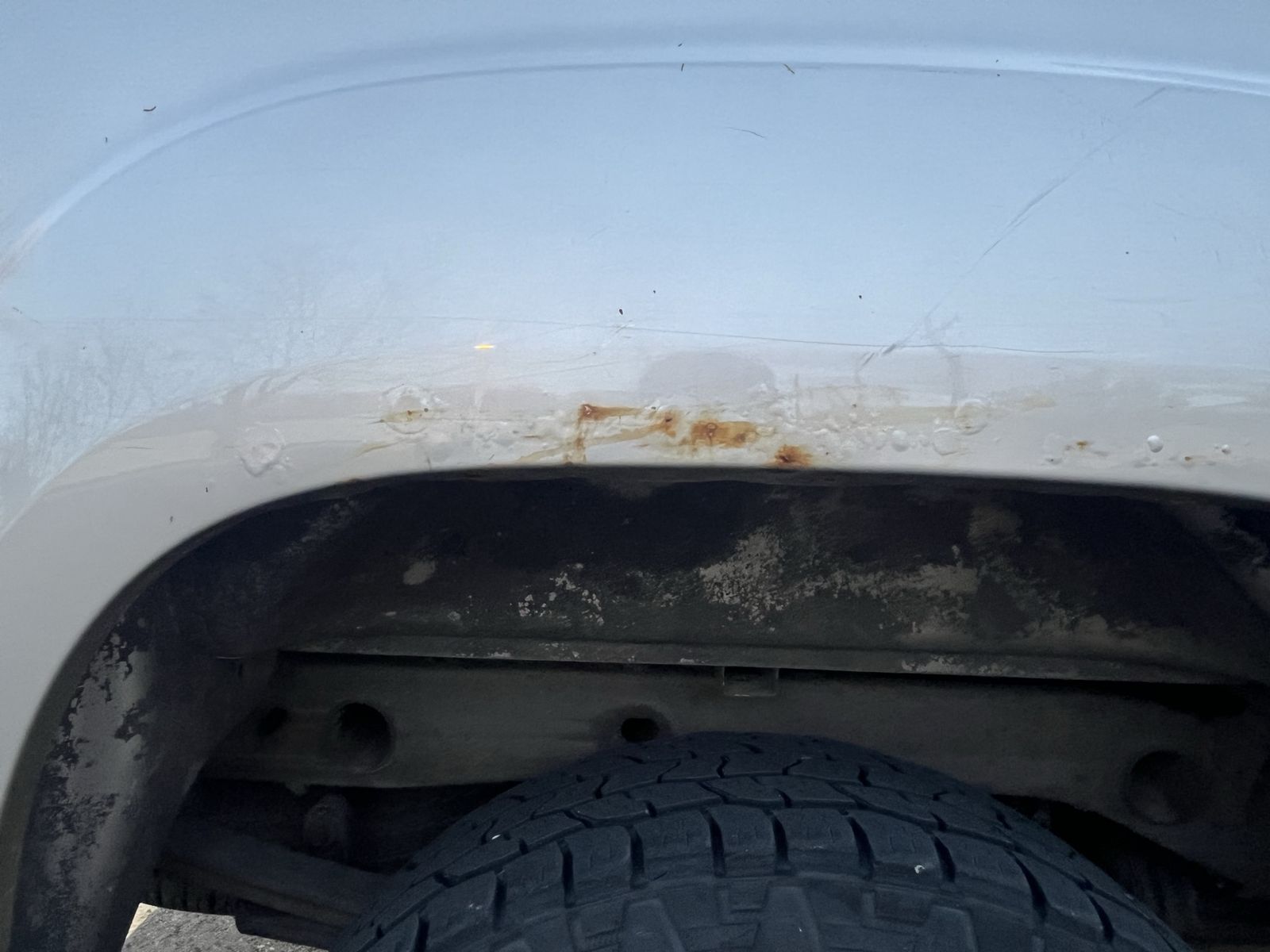 Great over all truck. Just looking for something smaller. A small rust spot on the wheel well. I have kept up on maintenance. Tires are about 2-3years old and have been rotated regularly. It has weather tech floor mats front and rear. I did the breaks at 100k miles it’s always had seat covers on the front seats and rear seats. It has a bed cover with some rust on it, but it doesn’t affect waterproofing